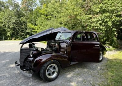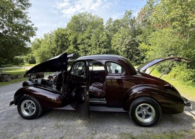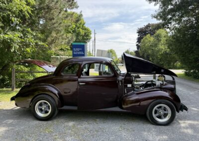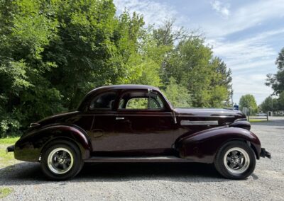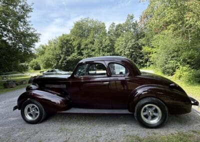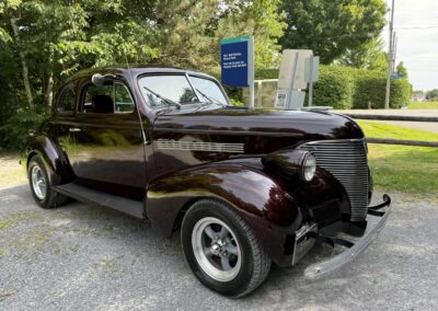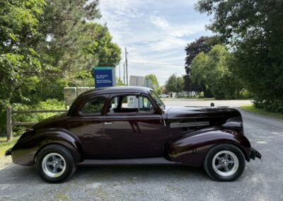 Here is a 1939 Chevrolet Master 85 Business Coupe, modified into a ‘Street Rod’ with numerous performance and aesthetic upgrades. The seller has opted for our third-party inspection service, please see the inspector’s report linked under CCC Vital Info when ready. Finished in Black Cherry, the coupe retains its classic appeal while integrating modern components for serious performance. The car is powered by a fuel injected 383-cubic-inch stroker V8 crate engine, paired with a 700R4 automatic transmission. This car shows under 15,000 miles (TMU) on the odometer, installed during a comprehensive restoration; , This restored 1939 Chevrolet Master 85 ‘Street Rod’ is offered in Ottawa, ON by the seller with one key, a 2024 appraisal report, and an Inspection report, linked here and below ‘CCC Vital Info’; we have also included it in the gallery. The owner disputes the inspector’s position about an oil leak, attributing to oil from the filter after an oil change performed immediately before the inspection. The inspector did not raise it in person and the owner has supplied photos 193 – 197 and this video to support his position that the underside of the car is dry.