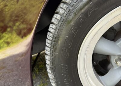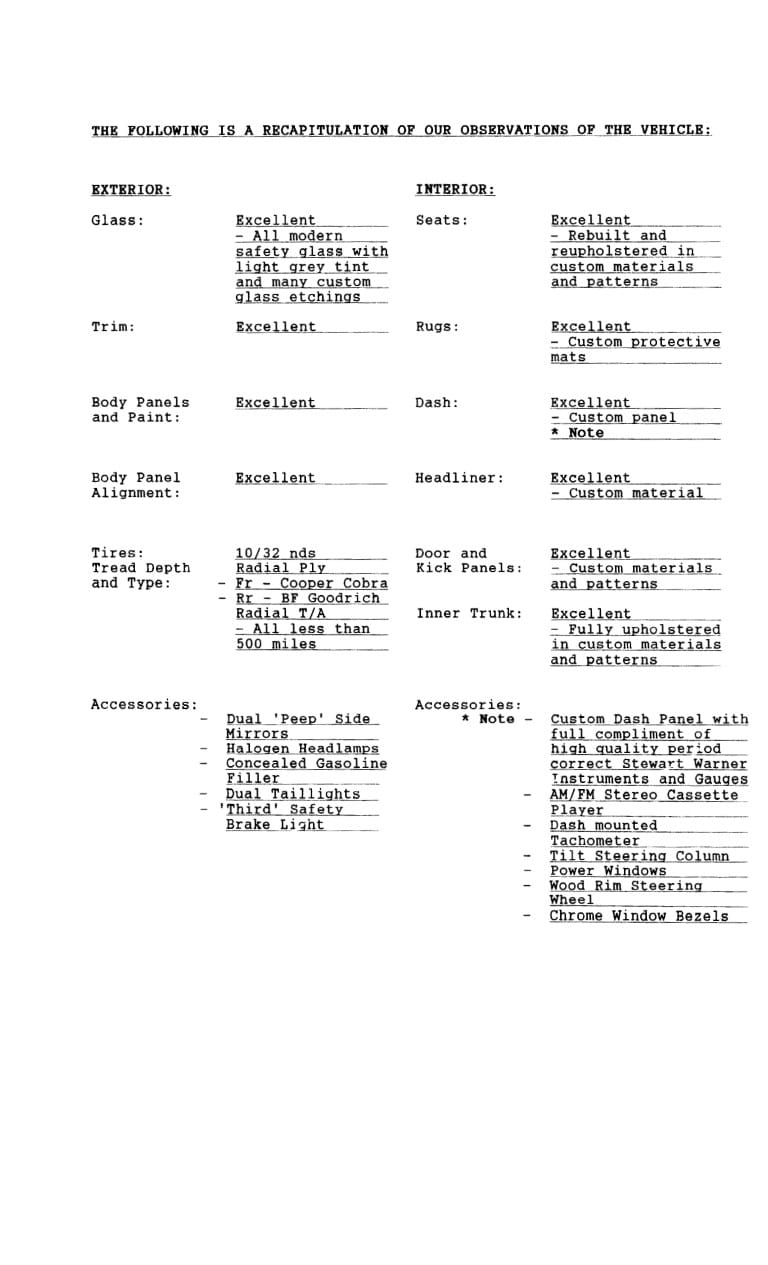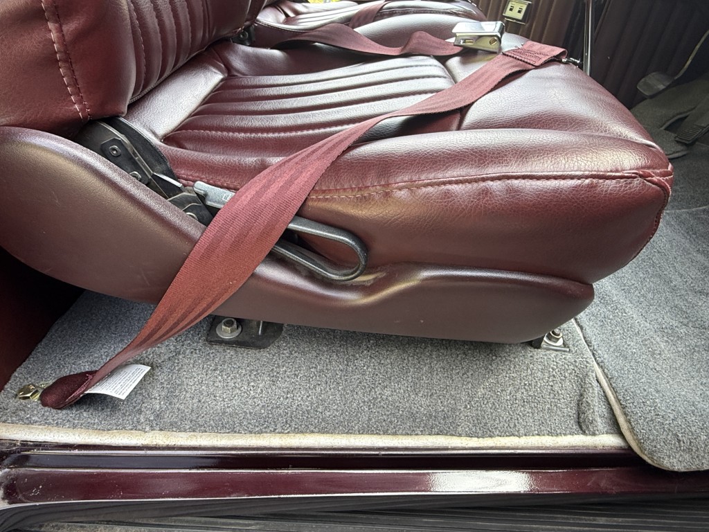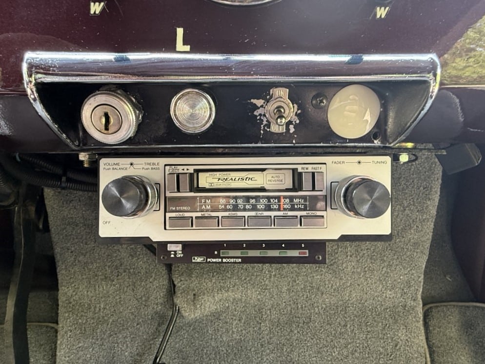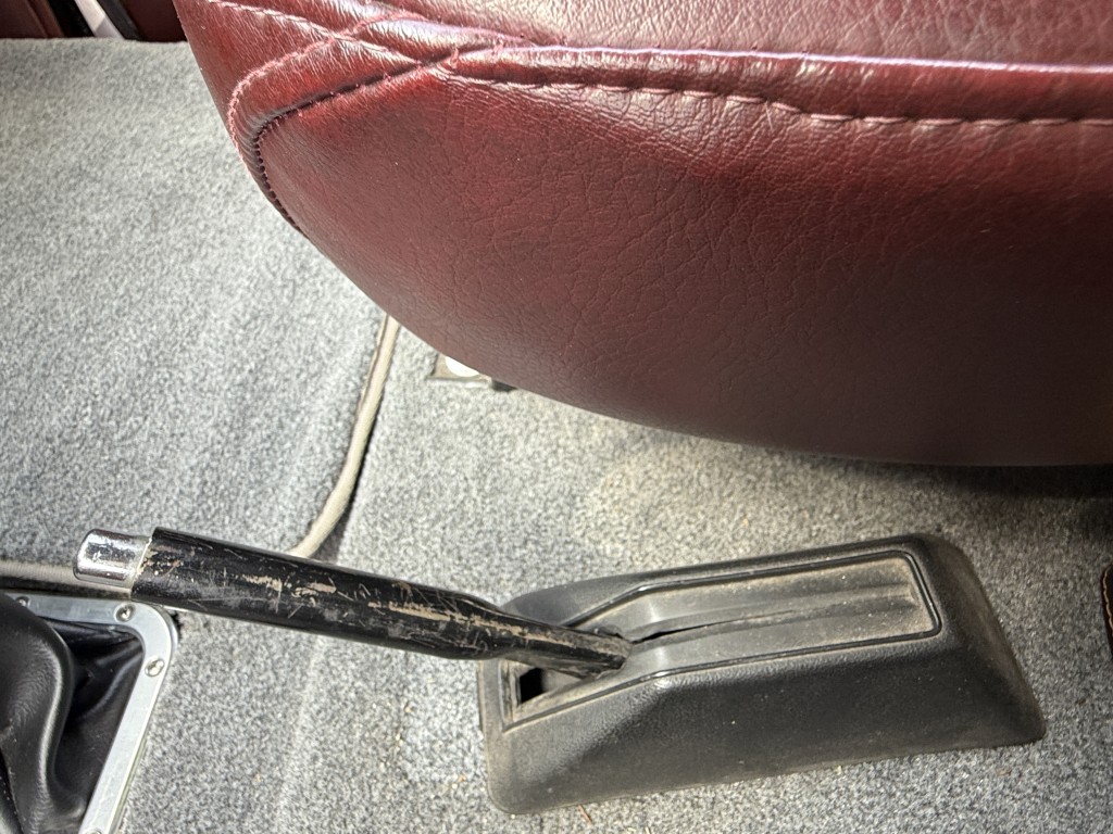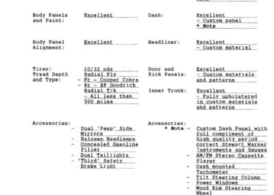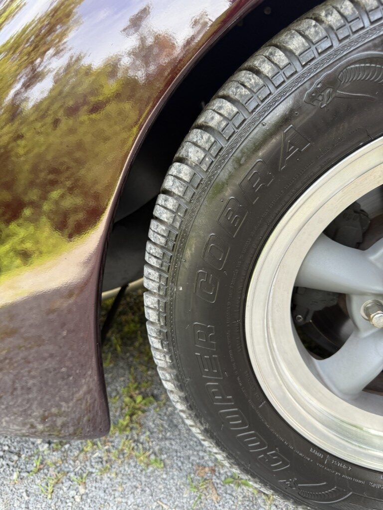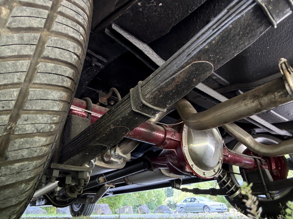 The car is fitted with a set of American Racing Torque Thrust-style forged aluminum wheels which were machined with a polished outer rim and chrome center accents. The staggered Cooper Cobra Radial GT tires feature 215/65R15’s at the front and 255/60R15’s at the rear. These tires are in near-new condition, having covered fewer than 500 miles since installation. The suspension system has been updated to include a modern front coil spring setup and a rebuilt rear suspension system with parallel leaf springs. The car is equipped with power steering, a tilt steering column and power brakes, discs up front and drums under the wider rear wheels.