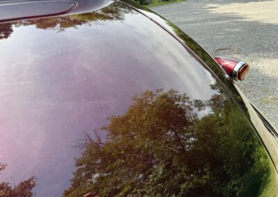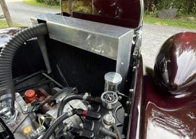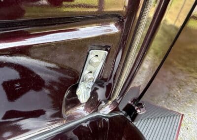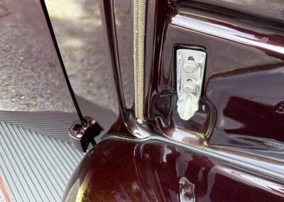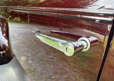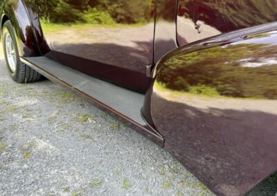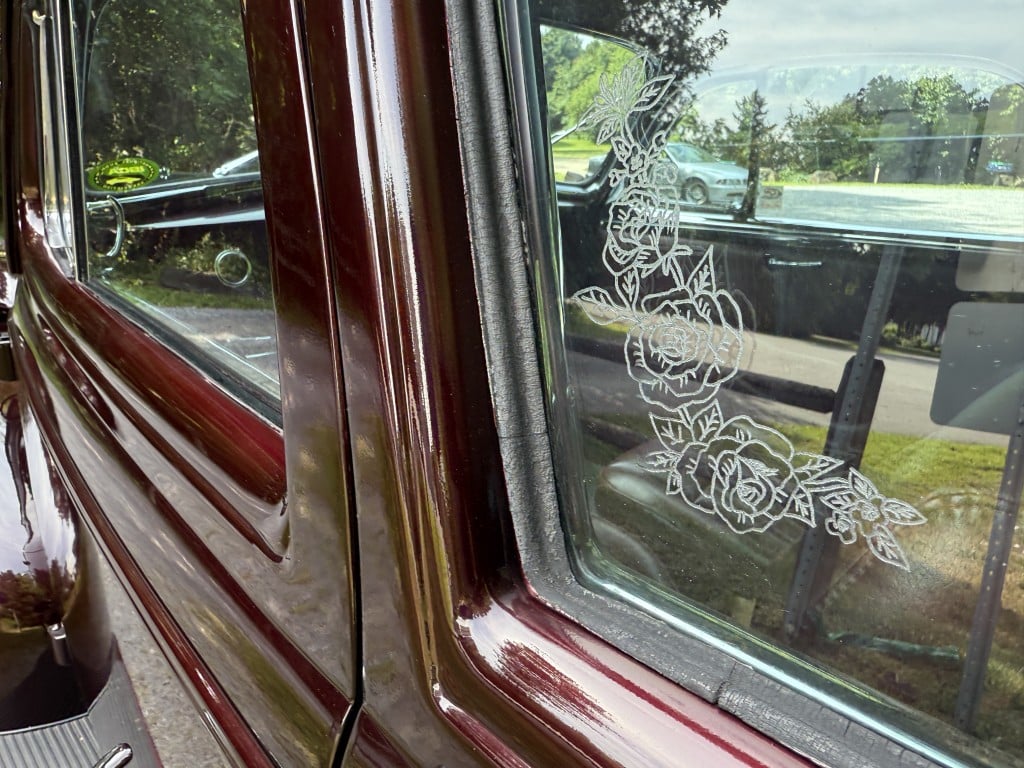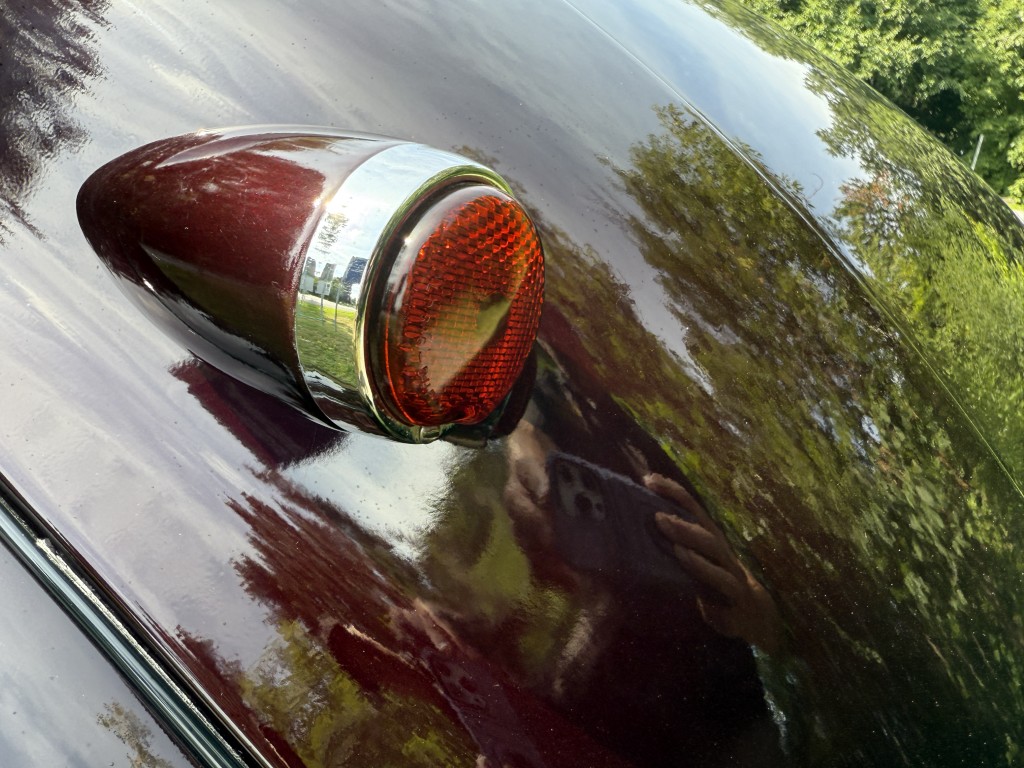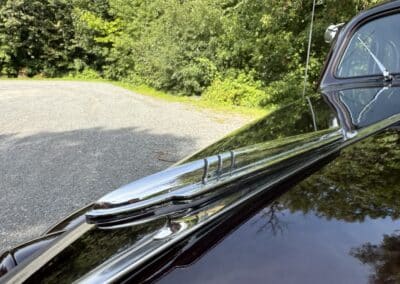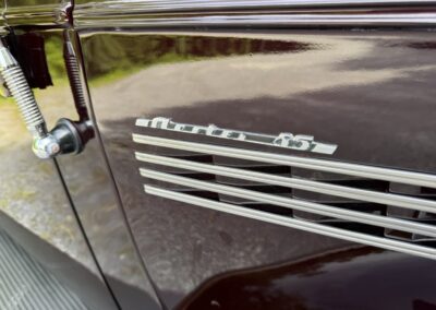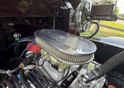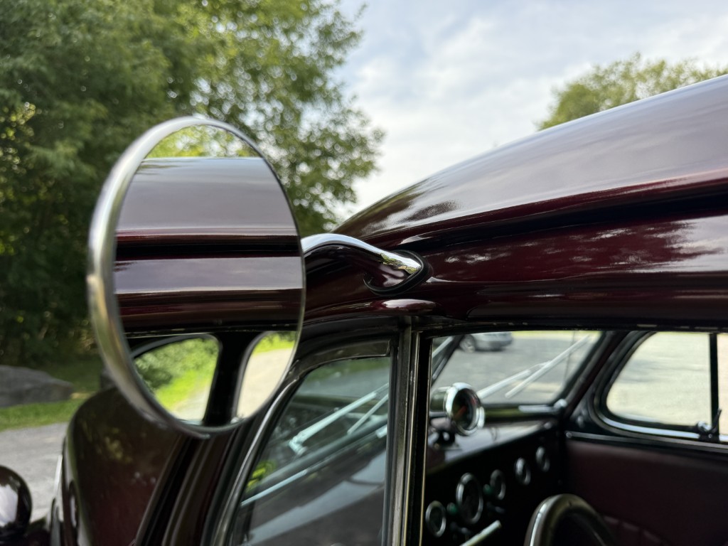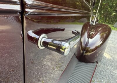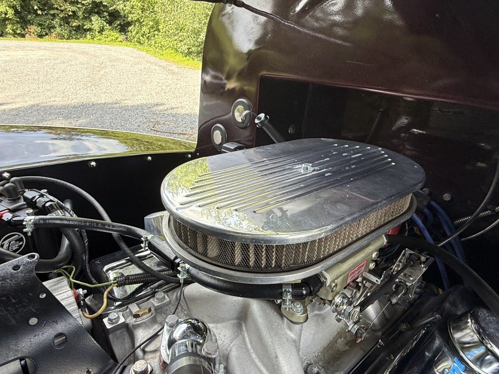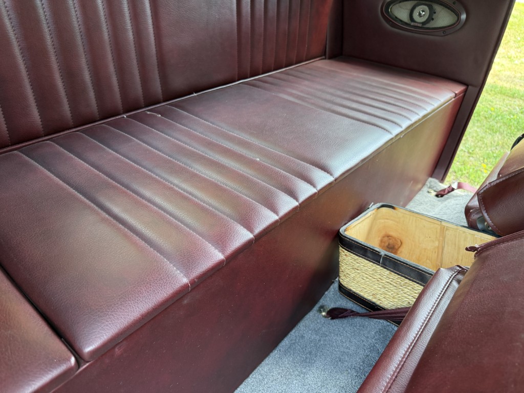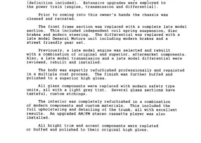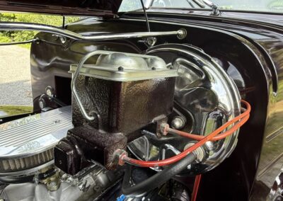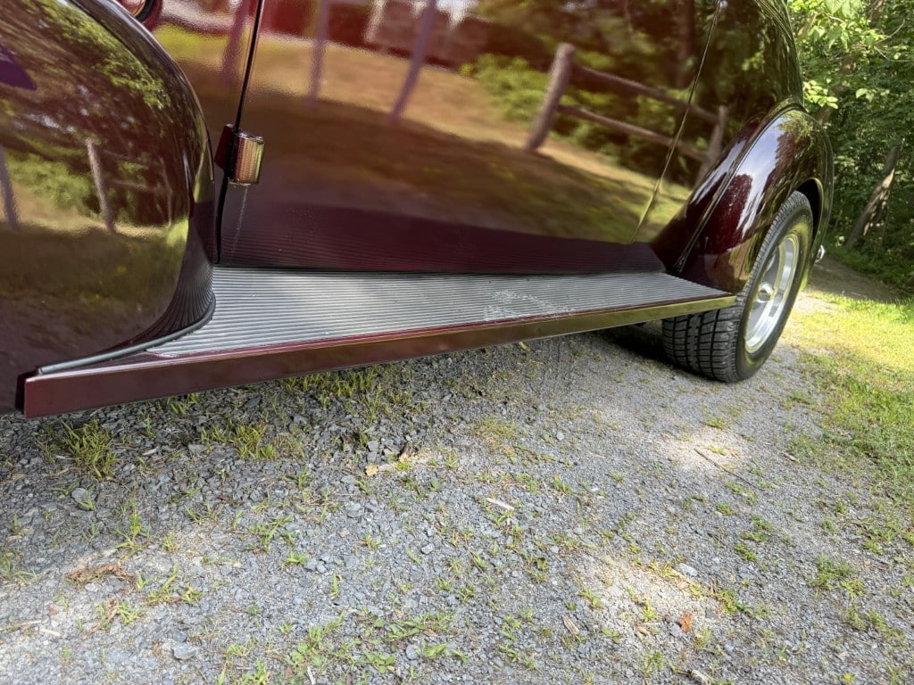 The restoration that the car received under prior ownership has been referred to as an ‘Every nut and bolt’ restoration by the appraiser, whose comprehensive report can be used as a reference, appearing in our gallery. It included an extensive dismantle of the car and rebuild from the ground up. The exterior of this street rod is finished in Black Cherry, professionally completed through a multi-coat paint process. All bright work/trim and accent components have either been replated or buffed and polished to retain the original high gloss finish. Modern safety glass has been used throughout, all with a light grey tint. Custom etchings are visible on several glass sections.