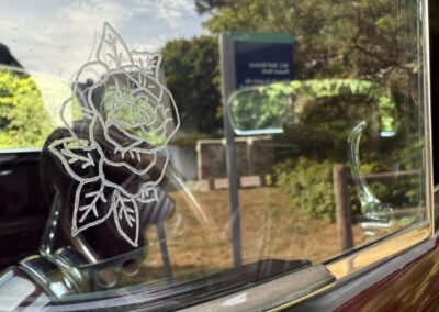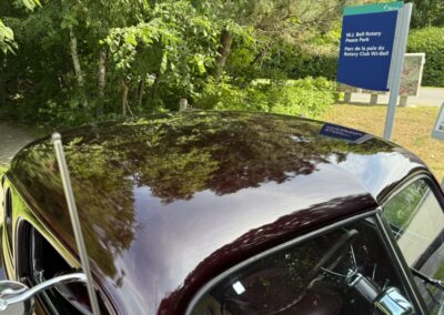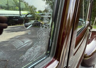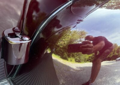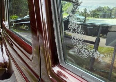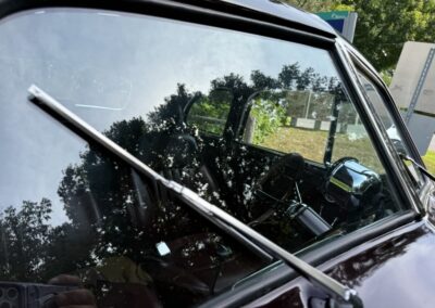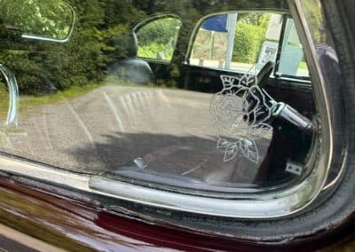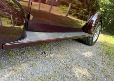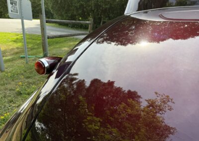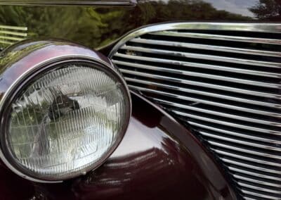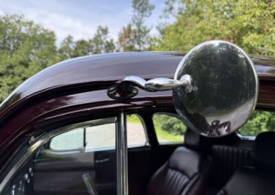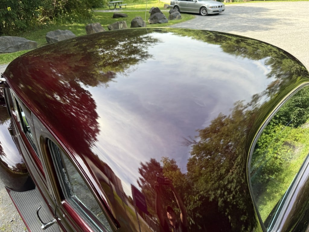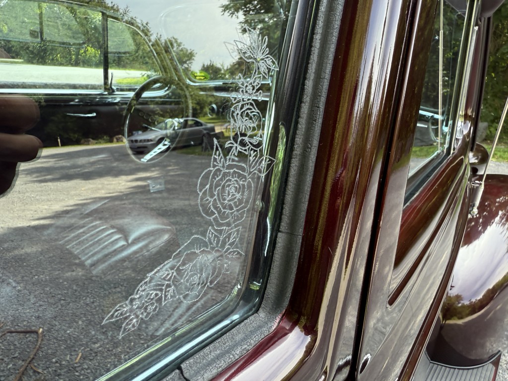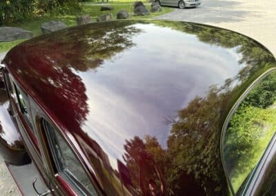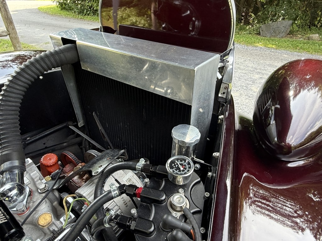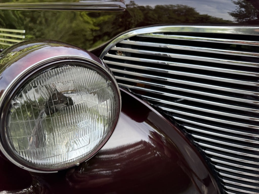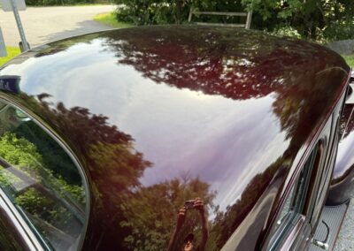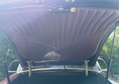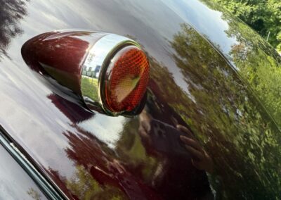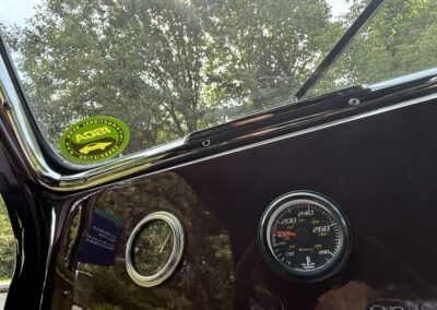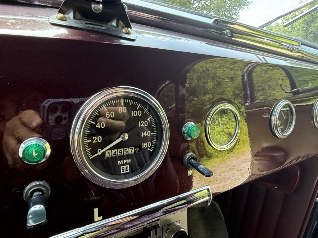 The restoration that the car received under prior ownership has been referred to as an ‘Every nut and bolt’ restoration by the appraiser, whose comprehensive report can be used as a reference, appearing in our gallery. It included an extensive dismantle of the car and rebuild from the ground up. The exterior of this street rod is finished in Black Cherry, professionally completed through a multi-coat paint process. All bright work/trim and accent components have either been replated or buffed and polished to retain the original high gloss finish. Modern safety glass has been used throughout, all with a light grey tint. Custom etchings are visible on several glass sections.