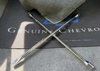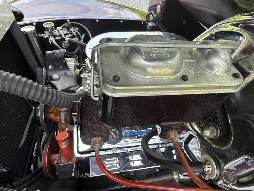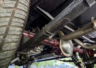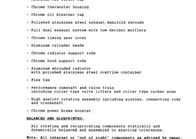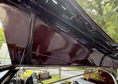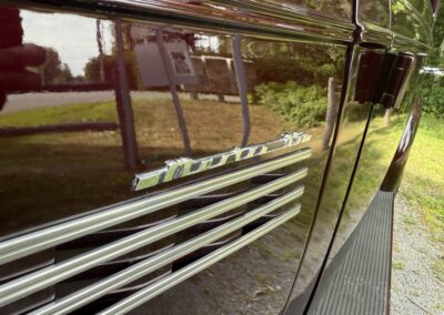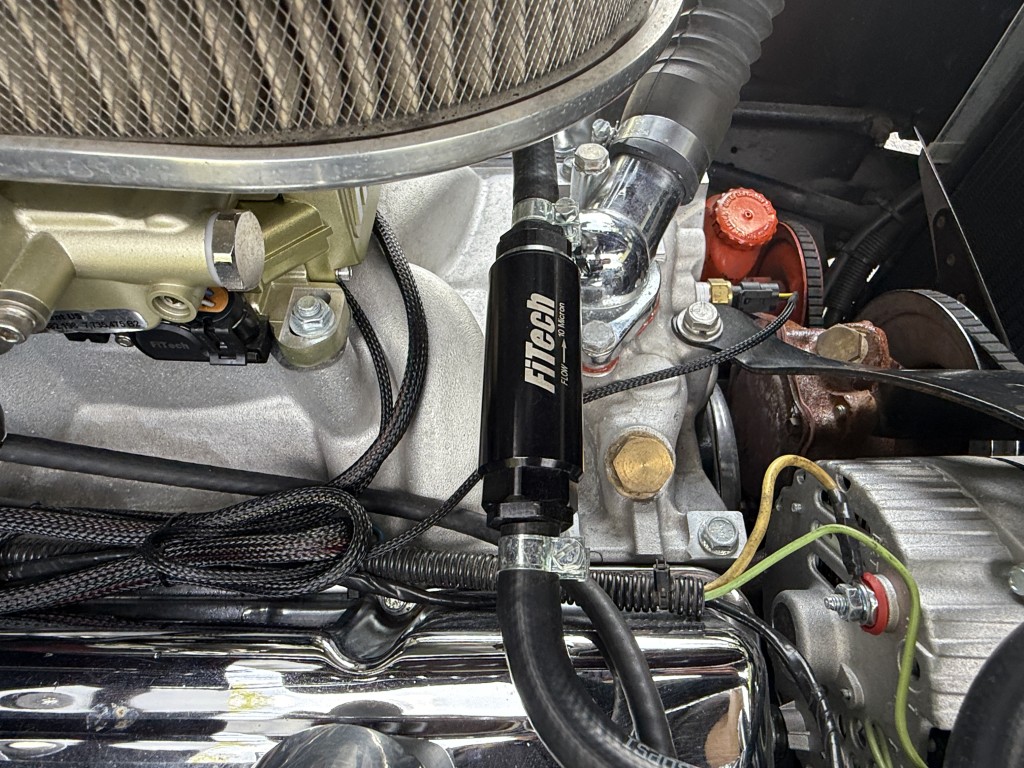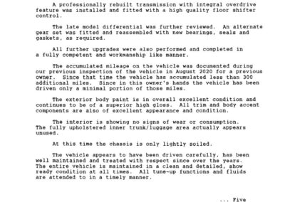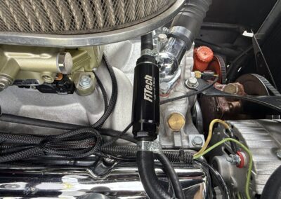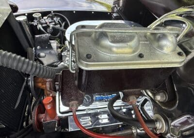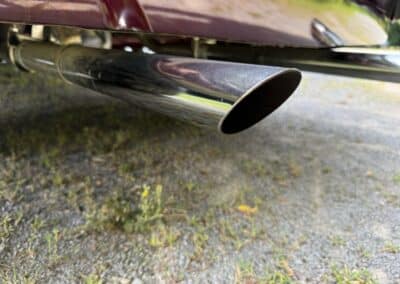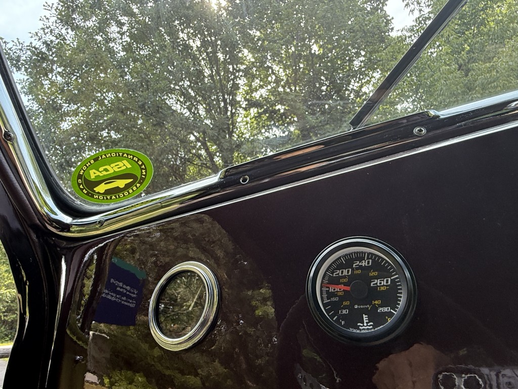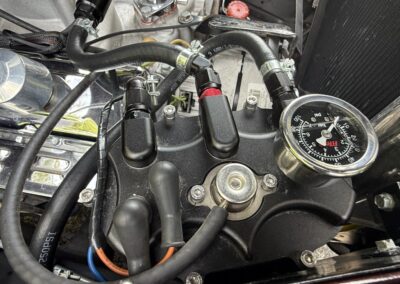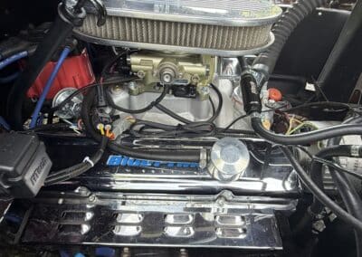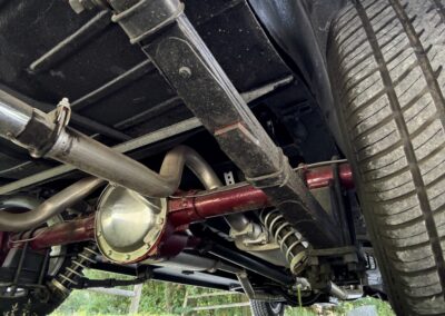 Power is sent to the rear wheels via a 700R4 automatic transmission – 3-Speed, plus an integral overdrive. The transmission was professionally rebuilt during current ownership and is paired with a high-quality floor shifter. A late-model General Motors differential has also been installed, fitted with a 4:11 gear ratio, and this has been rebuilt with new bearings, seals, and gaskets. The car is fitted with polished stainless steel exhaust manifold shrouds, and a fully polished dual exhaust system with low decibel mufflers. In preparation for the sale, oil was changed and a new battery installed the week of July 21, 2025.