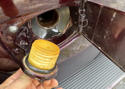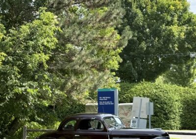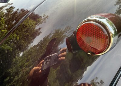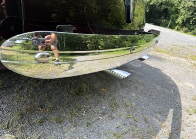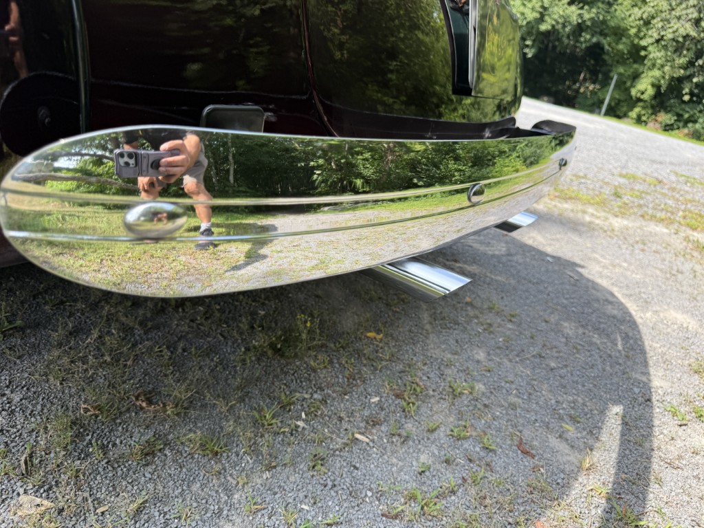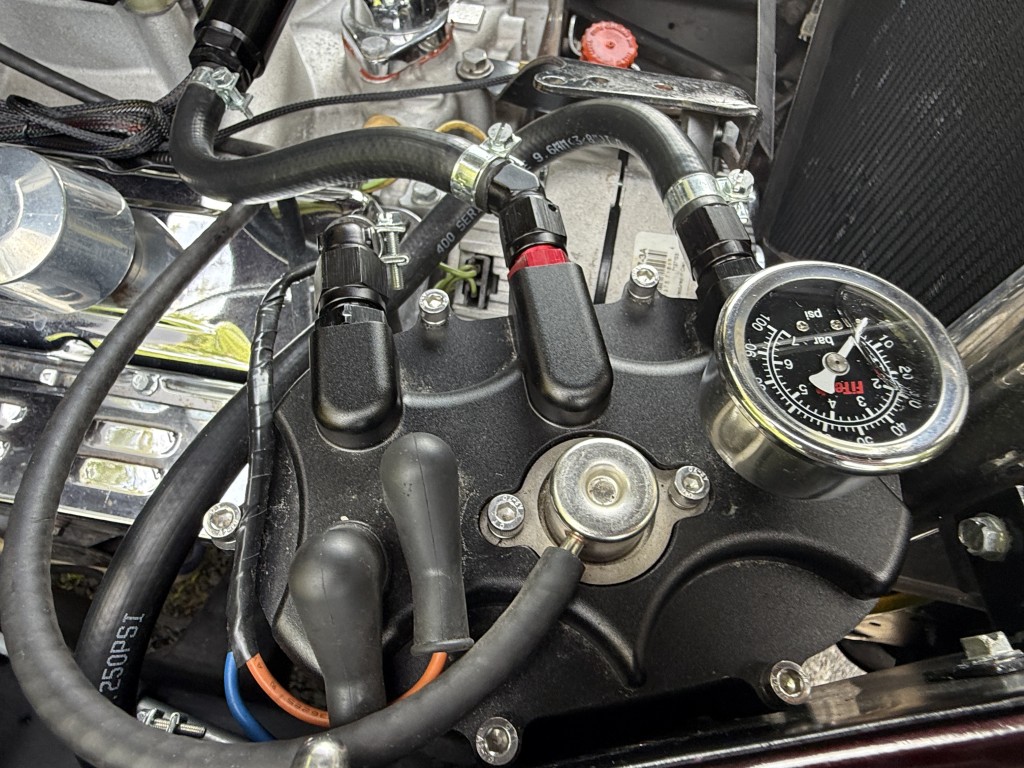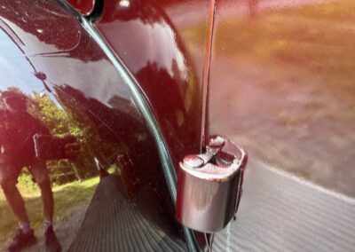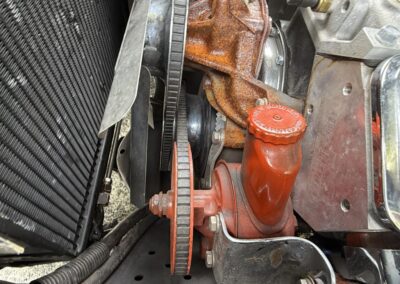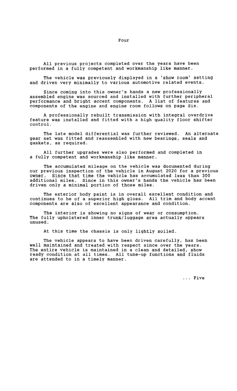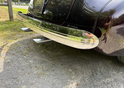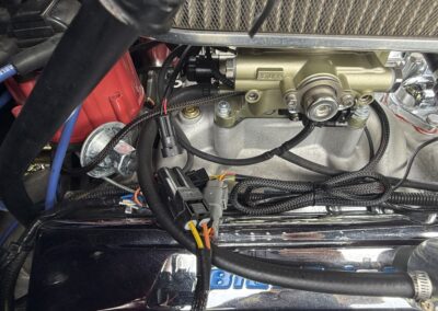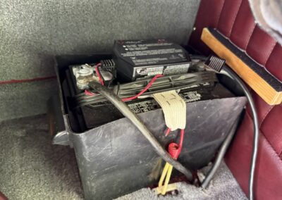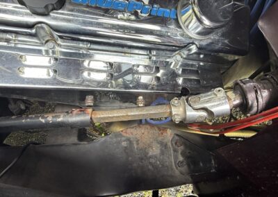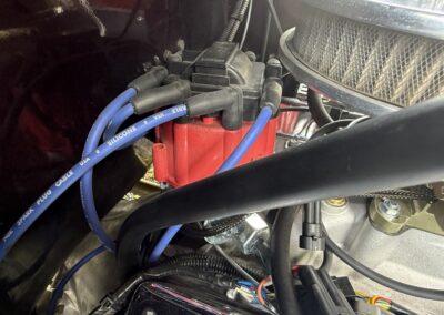 Power is sent to the rear wheels via a 700R4 automatic transmission – 3-Speed, plus an integral overdrive. The transmission was professionally rebuilt during current ownership and is paired with a high-quality floor shifter. A late-model General Motors differential has also been installed, fitted with a 4:11 gear ratio, and this has been rebuilt with new bearings, seals, and gaskets. The car is fitted with polished stainless steel exhaust manifold shrouds, and a fully polished dual exhaust system with low decibel mufflers. In preparation for the sale, oil was changed and a new battery installed the week of July 21, 2025.