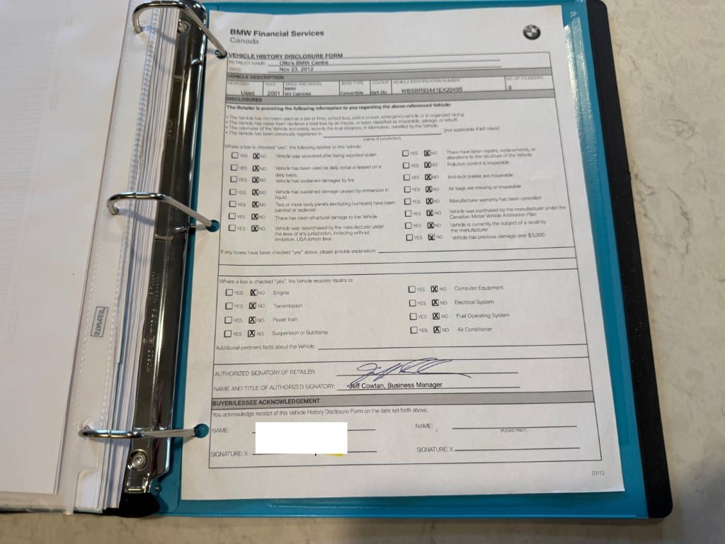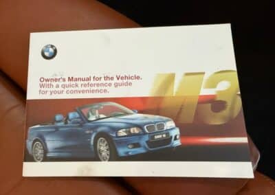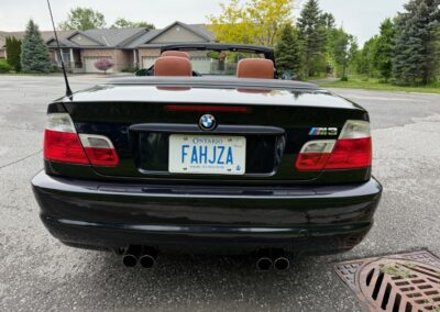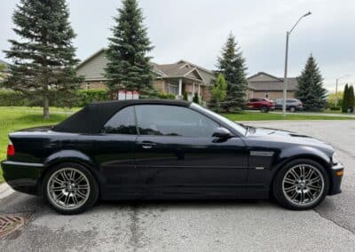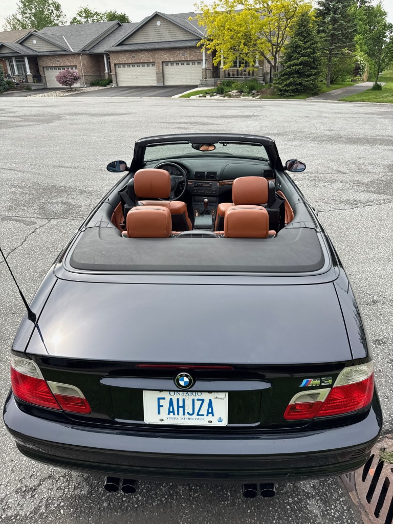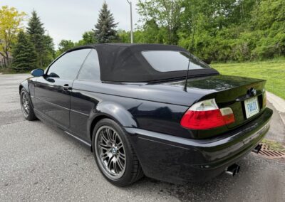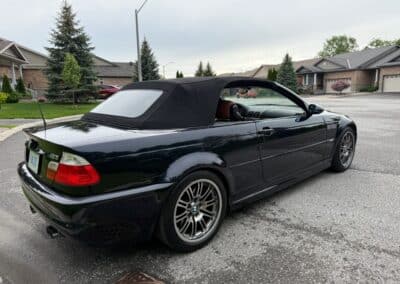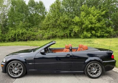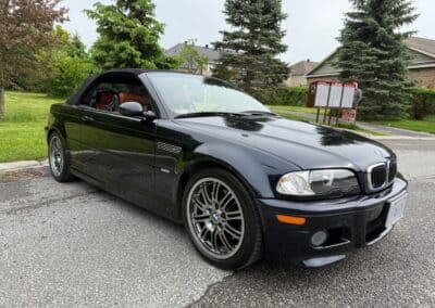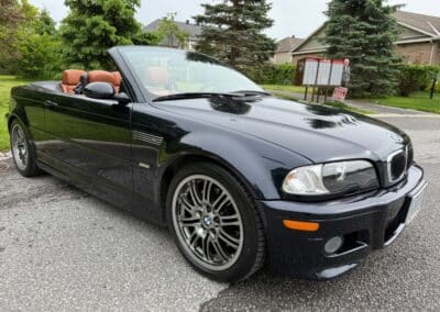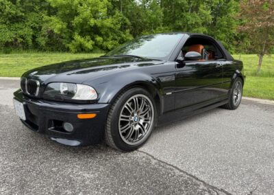 Presented here is a 2001 BMW M3 Convertible 6-Speed Manual, finished in Carbon Black Metallic over a Cinnamon leather interior. The ’01 M3 is powered by BMW’s high-revving S54 3.2-litre inline-six engine, paired with a 6-speed manual transmission and rear-wheel drive. The odometer shows under 105,000 kilometres, and the car is offered by its owner of 12 years who purchased from a franchise BMW Canada ownership some 23,000 km ago with two keys, replaced factory parts, and extensive, detailed maintenance records over the years shown in the gallery. Ontario buyers, please note: the car comes with an Ontario Safety Standards Certificate.
