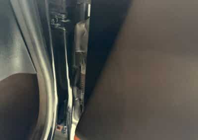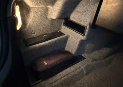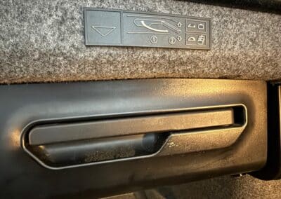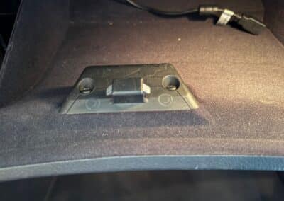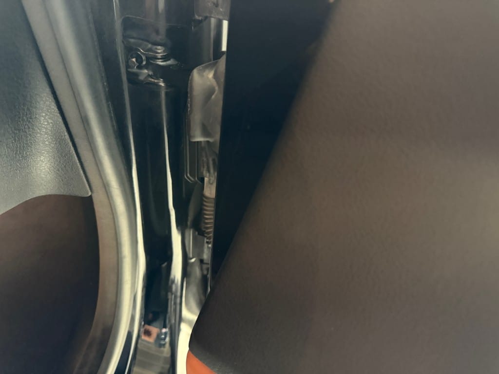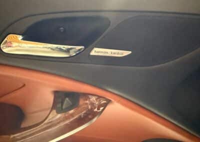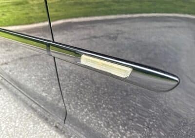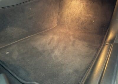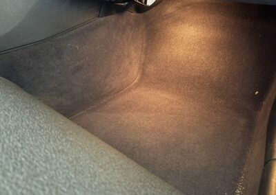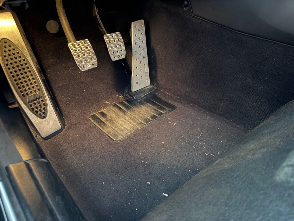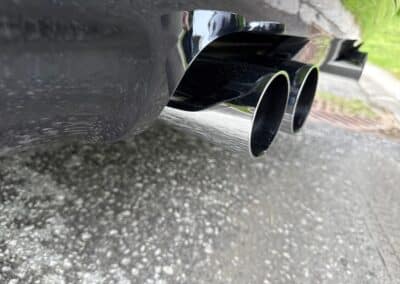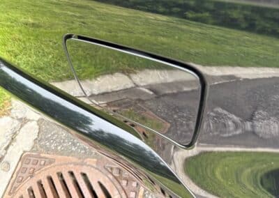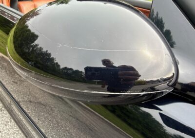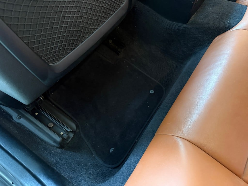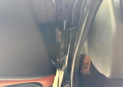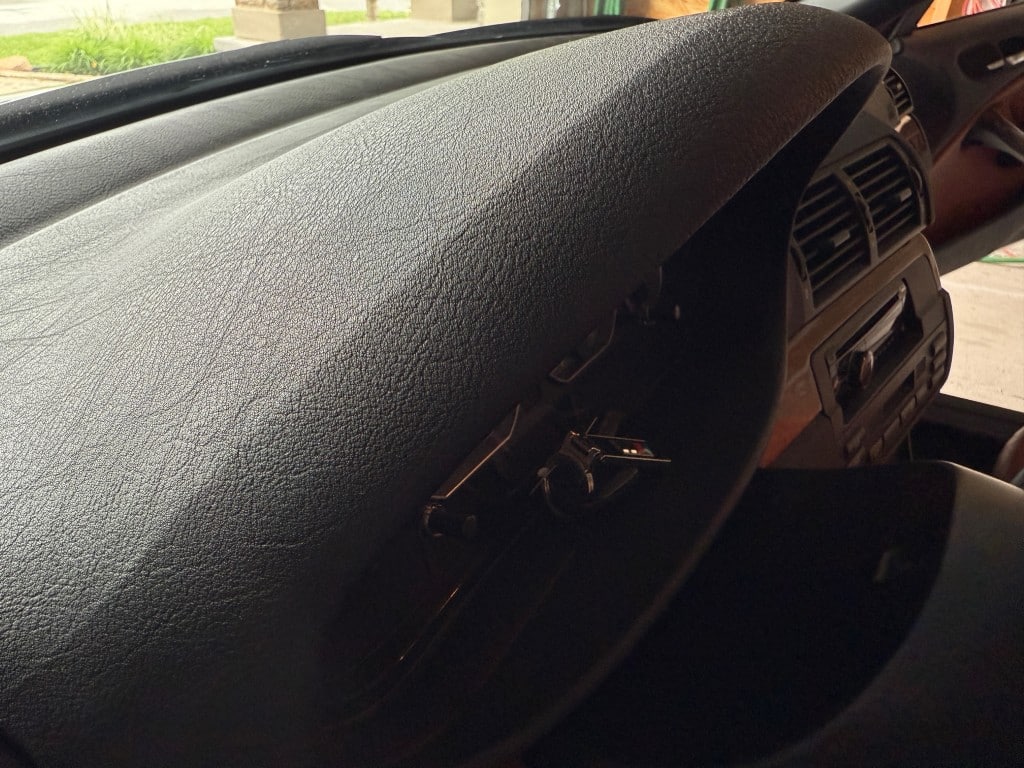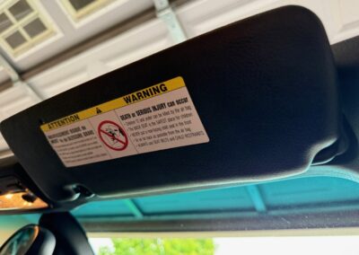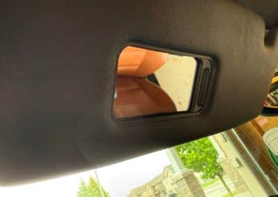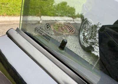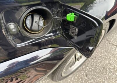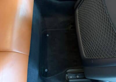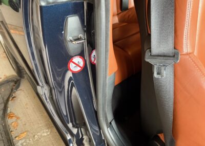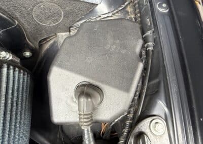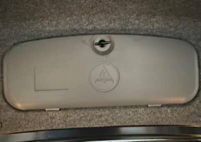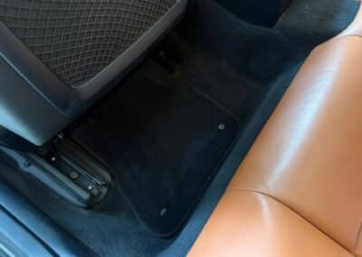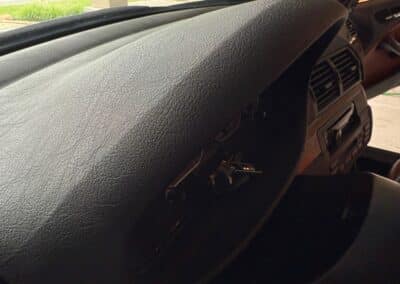 At the body shop’s recommendation, the seller opted to have the entire hood stripped and repainted, with blending carried out on the front fenders. The additional repairs were performed at the seller’s expense, as documented by invoices shown in images 263 and 264. An XPEL protective film (PPF) is installed on the front end of the car and the most forward-facing portions of the aerodynamic side mirrors. The black power-operated convertible soft top is shown operating in videos and additional photos are also available in the gallery. Other exterior features include Xenon low-beam headlights clear-lens side markers, round front fog lamps, dual exhaust outlets on each muffler for four total, and M3 badging.
