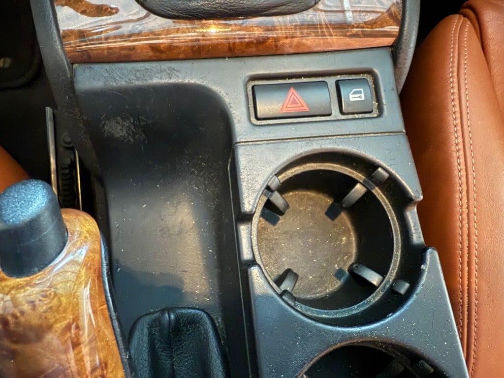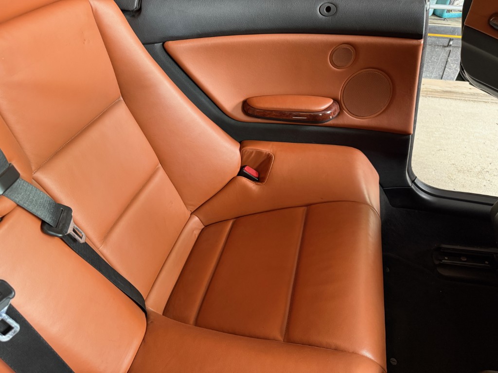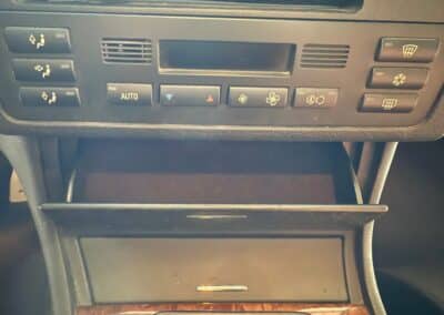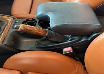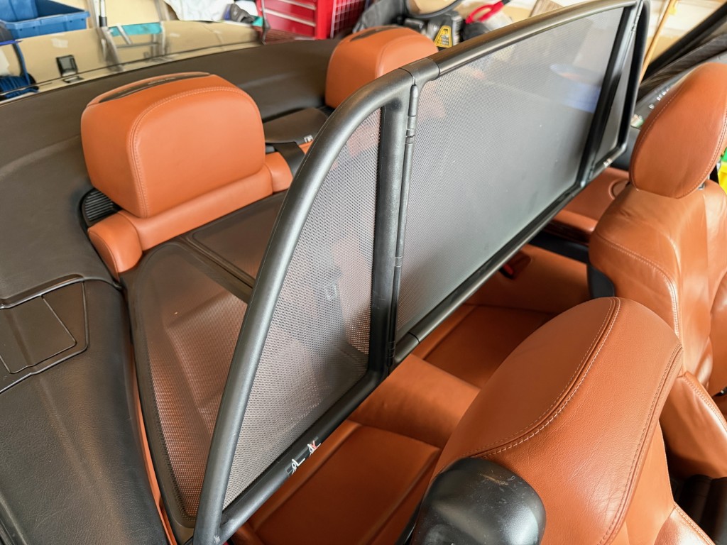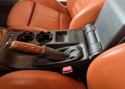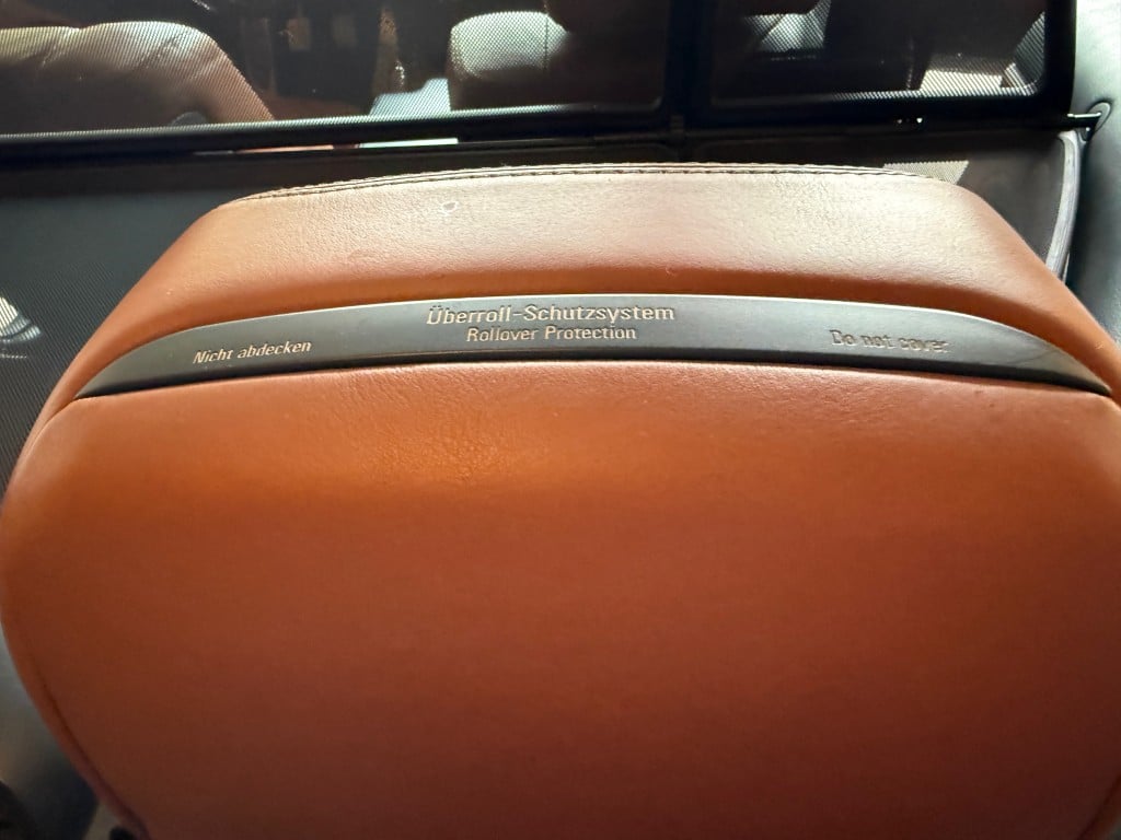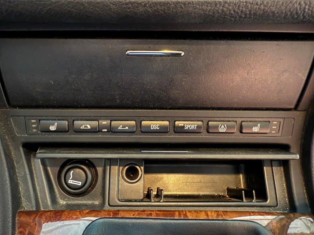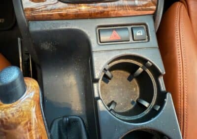 Inside, the cabin boasts Nappa leather upholstery in Cinnamon with power-adjustable heated front sport seats. The leather-wrapped M Sport steering wheel fronts an M-branded cluster. Interior equipment includes climate control with air conditioning, power windows and mirrors, cruise control, and an aftermarket stereo head unit and trunk-mounted CD changer, the latter currently inoperable without the original head unit. The original BMW BUSINESS AM/FM/cassette is included in the sale, however, as is the original air intake. Factory books include the owner’s manual and radio guide; there is also a full service manual. The convertible top lift mechanism has received service, including new hydraulic tension cylinders. See it in operation in our videos.