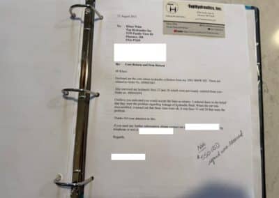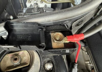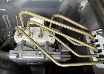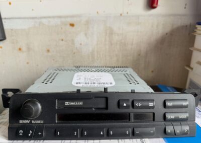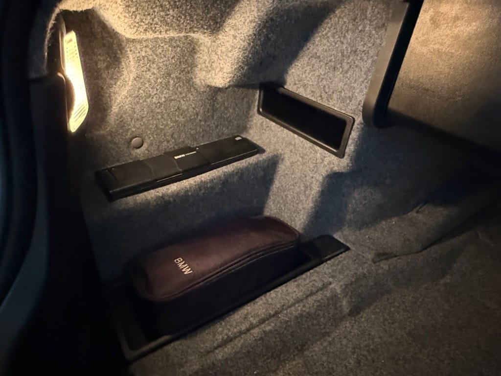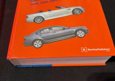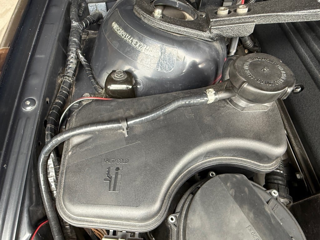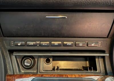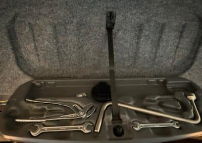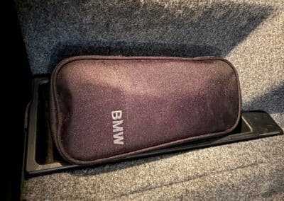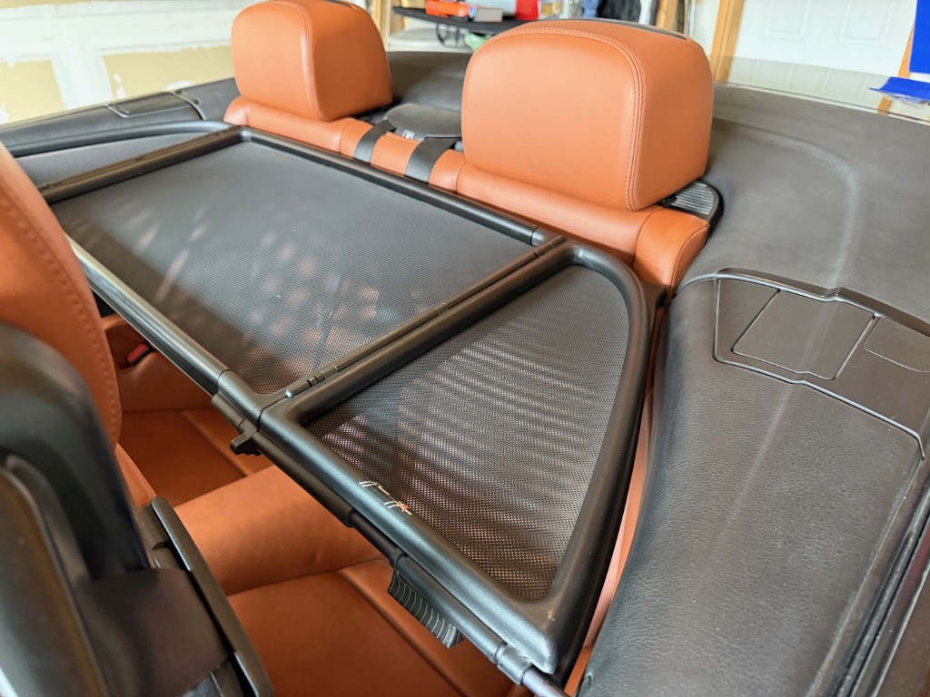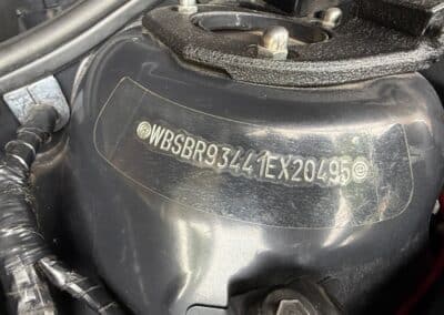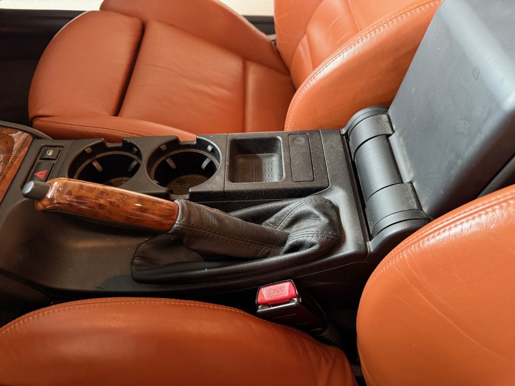 Inside, the cabin boasts Nappa leather upholstery in Cinnamon with power-adjustable heated front sport seats. The leather-wrapped M Sport steering wheel fronts an M-branded cluster. Interior equipment includes climate control with air conditioning, power windows and mirrors, cruise control, and an aftermarket stereo head unit and trunk-mounted CD changer, the latter currently inoperable without the original head unit. The original BMW BUSINESS AM/FM/cassette is included in the sale, however, as is the original air intake. Factory books include the owner’s manual and radio guide; there is also a full service manual. The convertible top lift mechanism has received service, including new hydraulic tension cylinders. See it in operation in our videos.