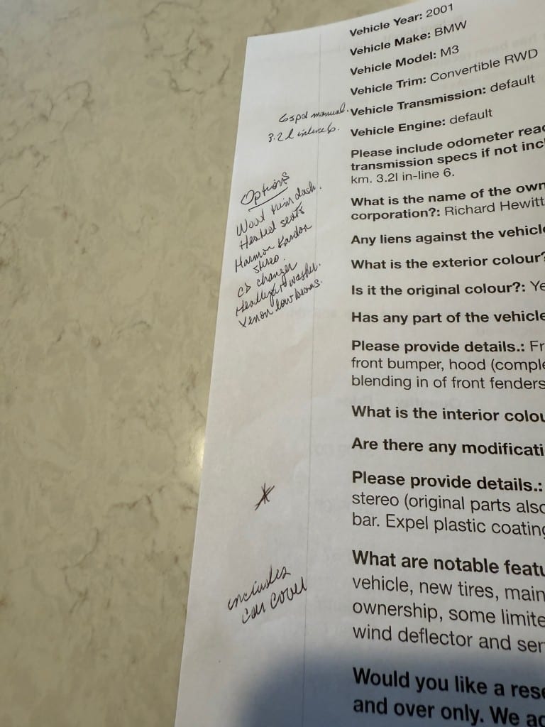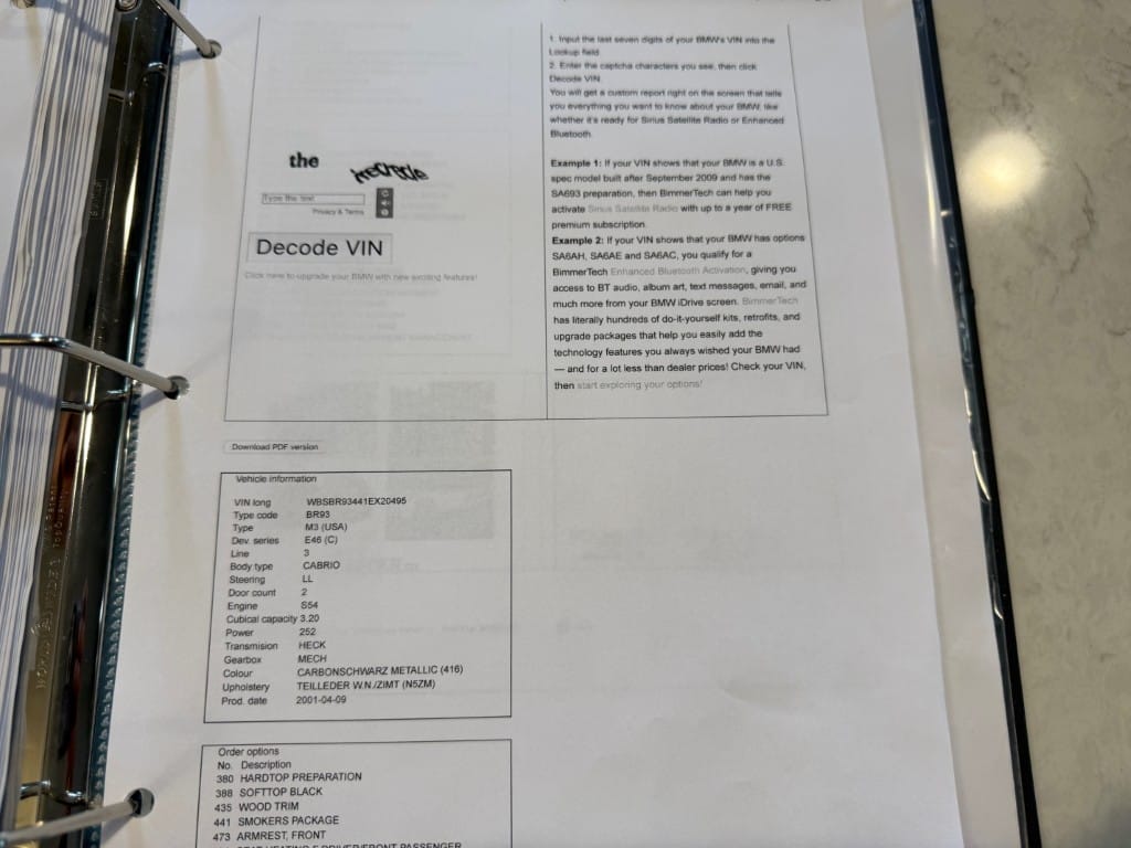 CCC Vital Info - **SOLD on the CCC Buy-It-Now Lot** 2001 BMW M3 Cabriolet 6-Speed Manual