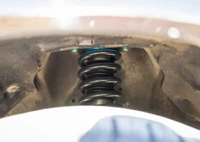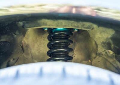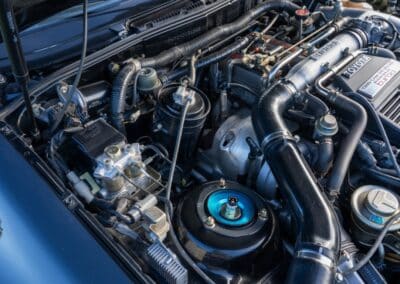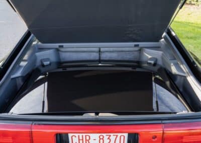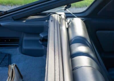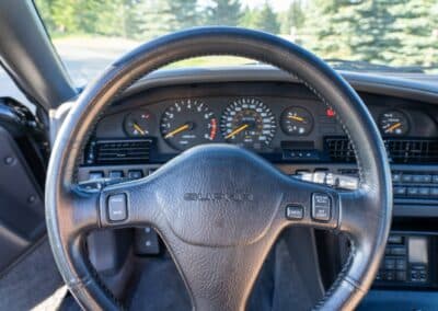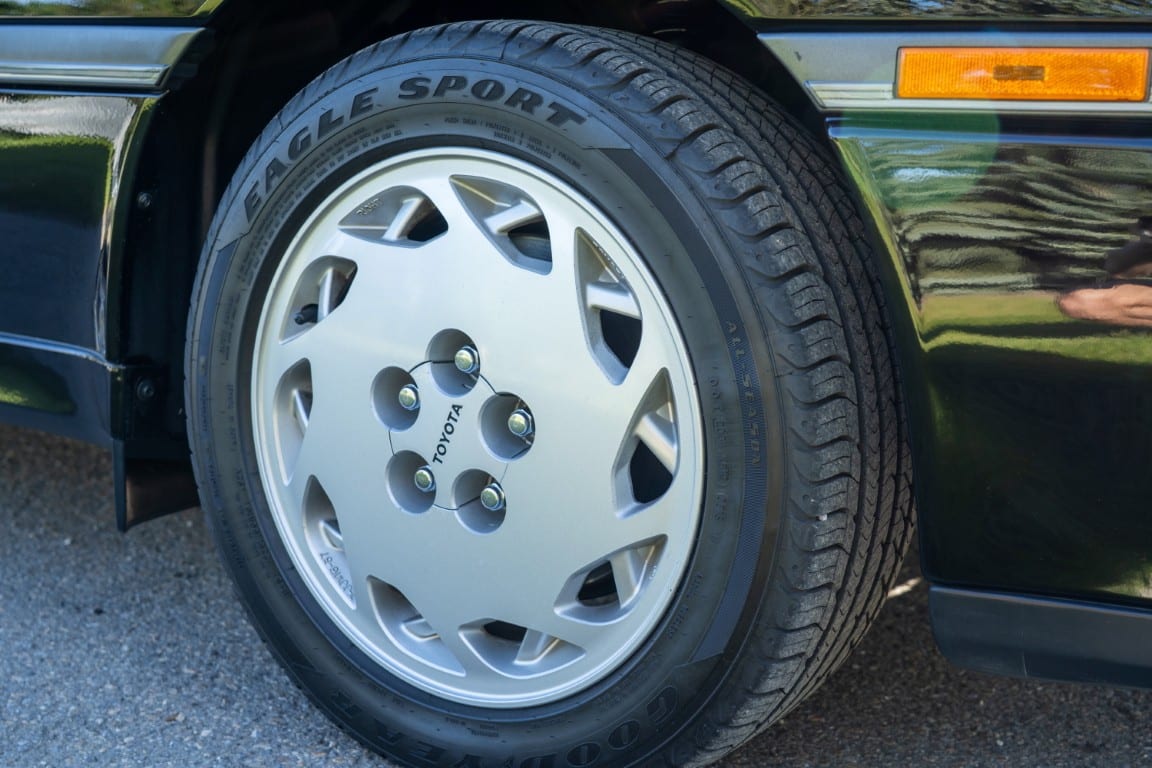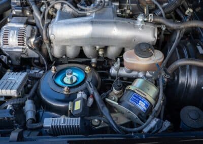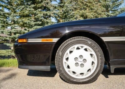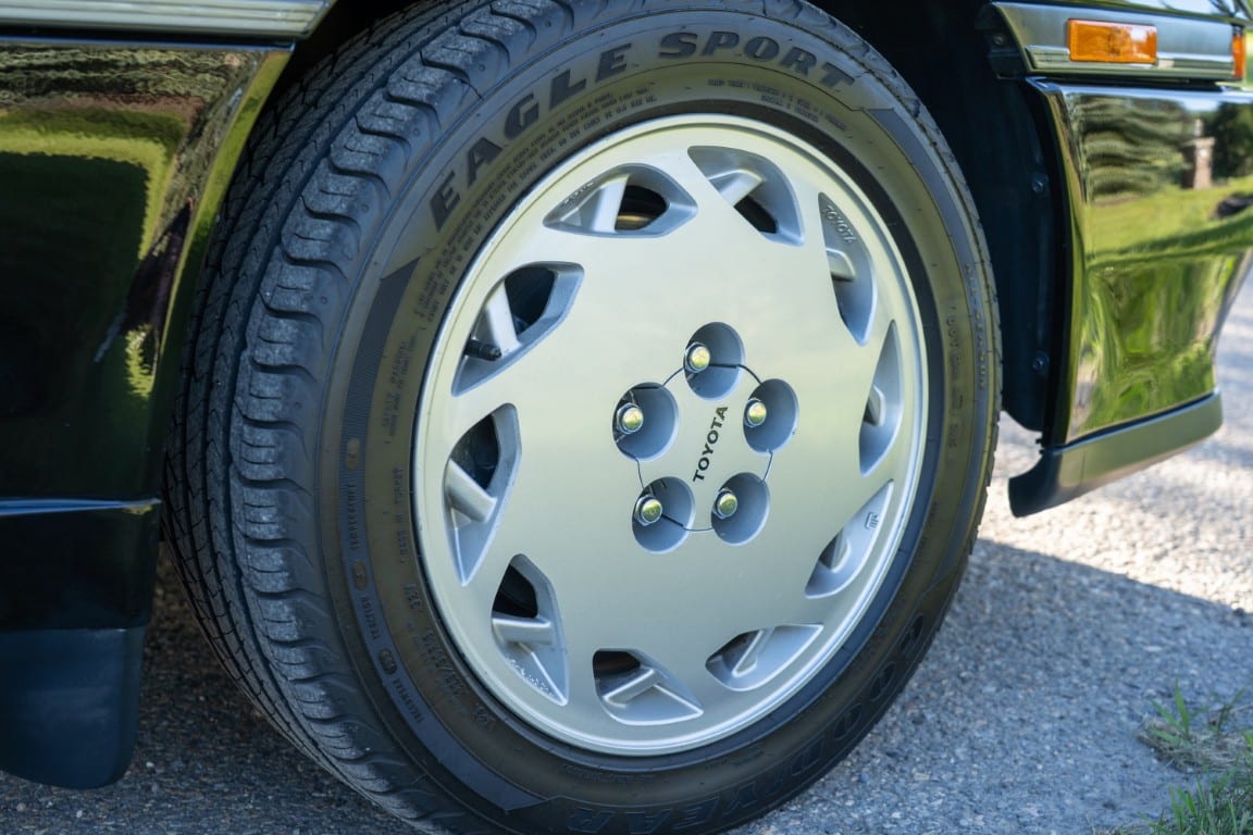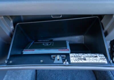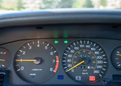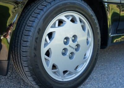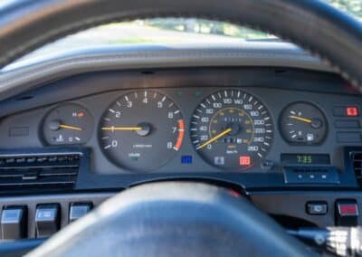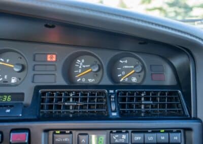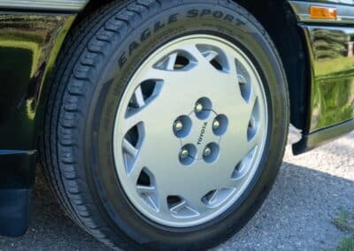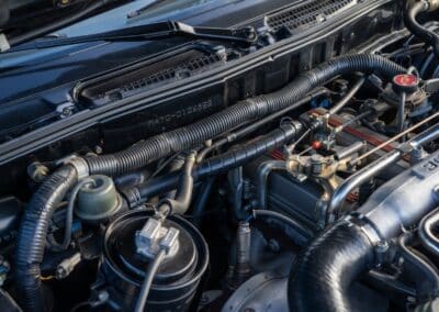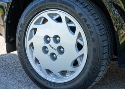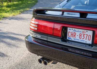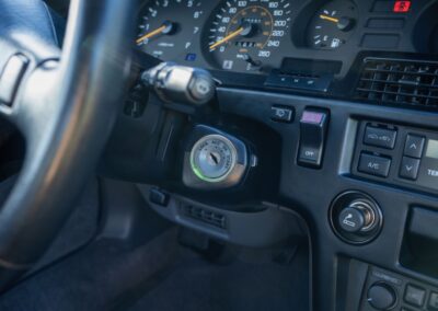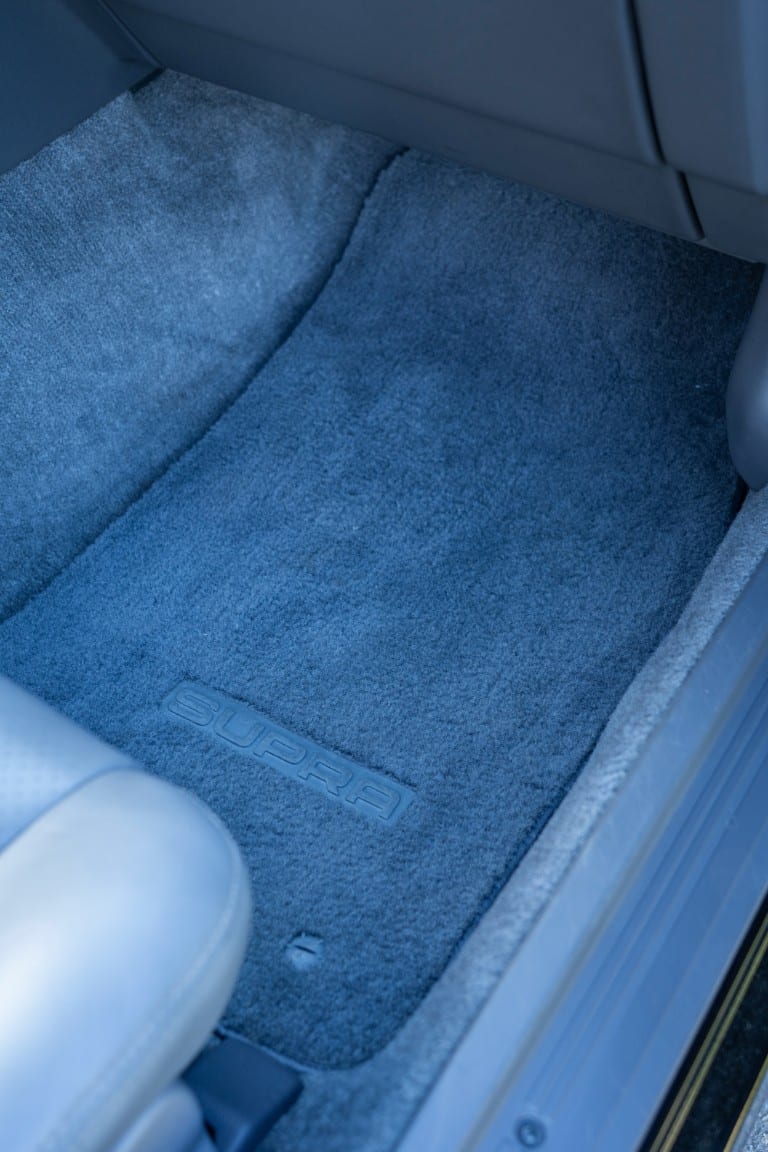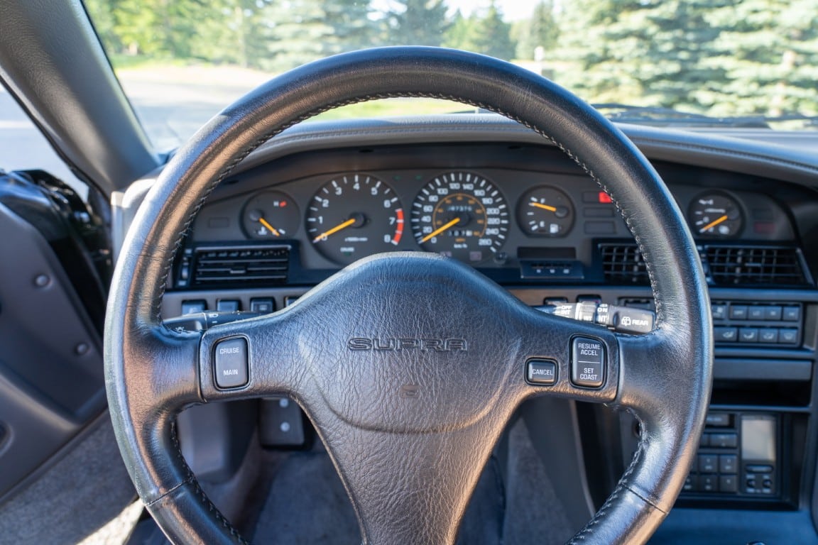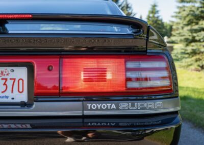 Power is sent to the rear wheels through a five-speed manual transmission and a 3.73:1 4-pinion 8.0″ 89+ Turbo Diff limited-slip differential (code G305) from the factory. A custom fabricated downpipe, along with a dual tip HKS exhaust system was installed in 2023. Note that the HKS exhaust is cosmetically designed to mimic very closely the OEM unit. Given that this Supra has been stored in a climate controlled environment since new and has never been winter driven, it shows no signs of rust and undercarriage photos can be viewed in our gallery.