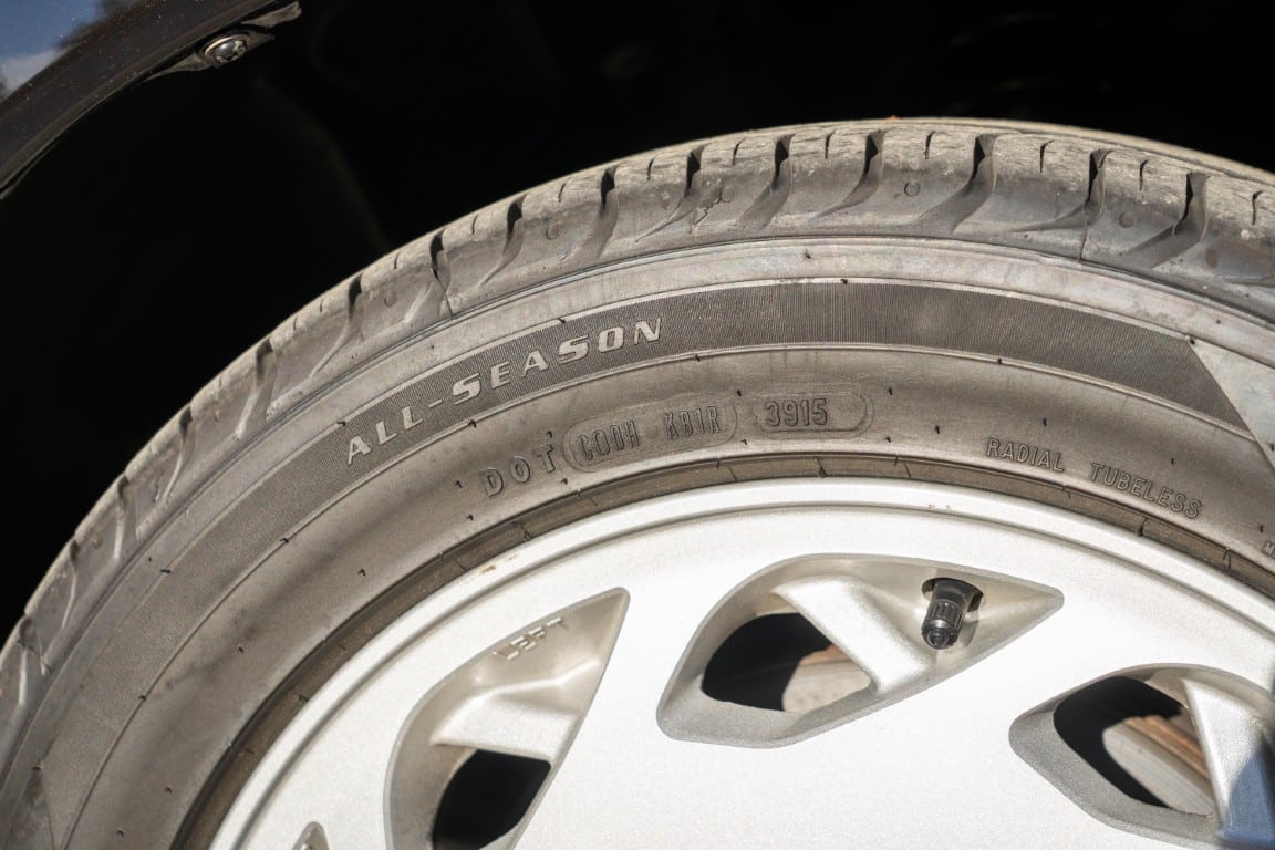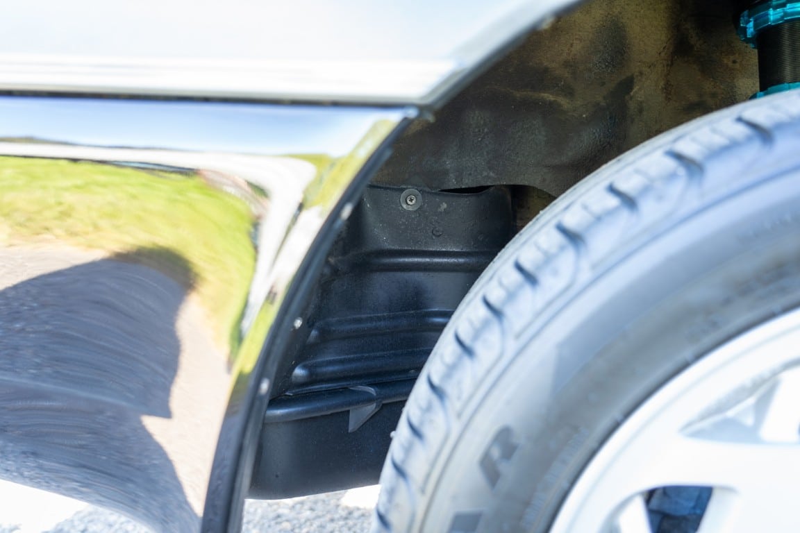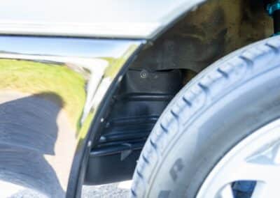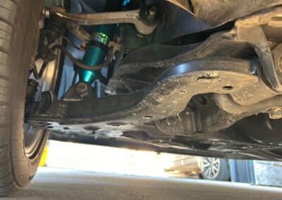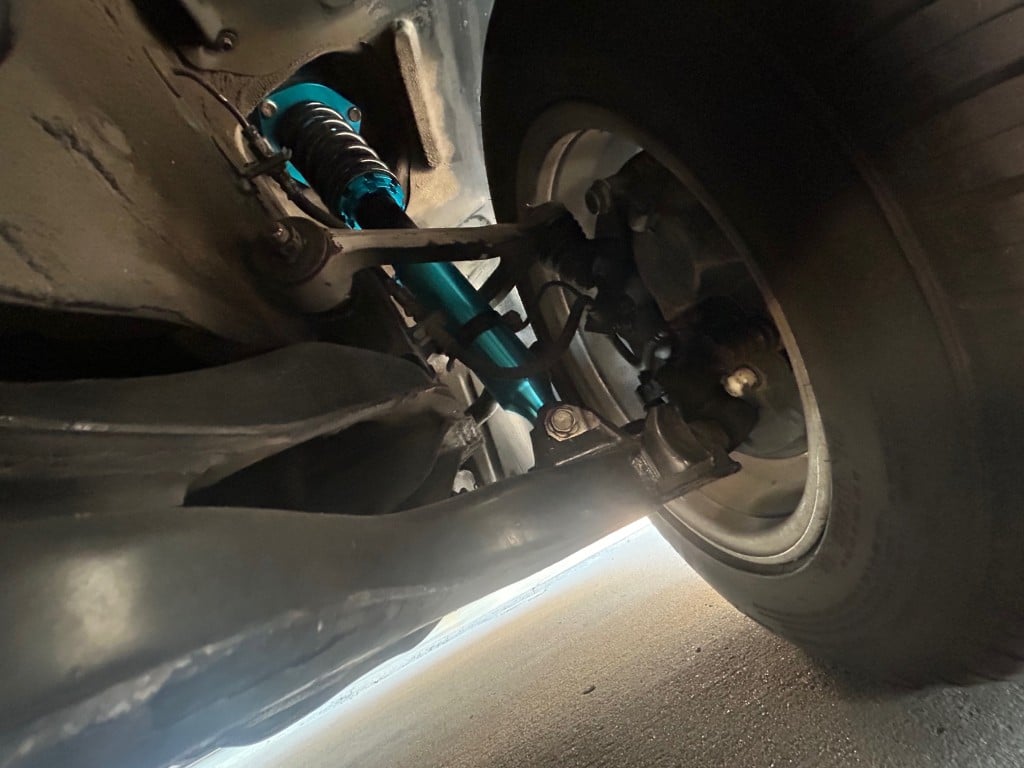 The car retains its factory silver-finished 16″ alloy wheels, mounted on 225/50R16 Goodyear Eagle Sport tires, V-rated with 2015 date codes. Owner notes that the tires have rolled fewer than 12,000 km. Megan Racing coilovers have been installed, replacing OEM components while retaining the factory ride height. Braking is by four-wheel disc brakes.