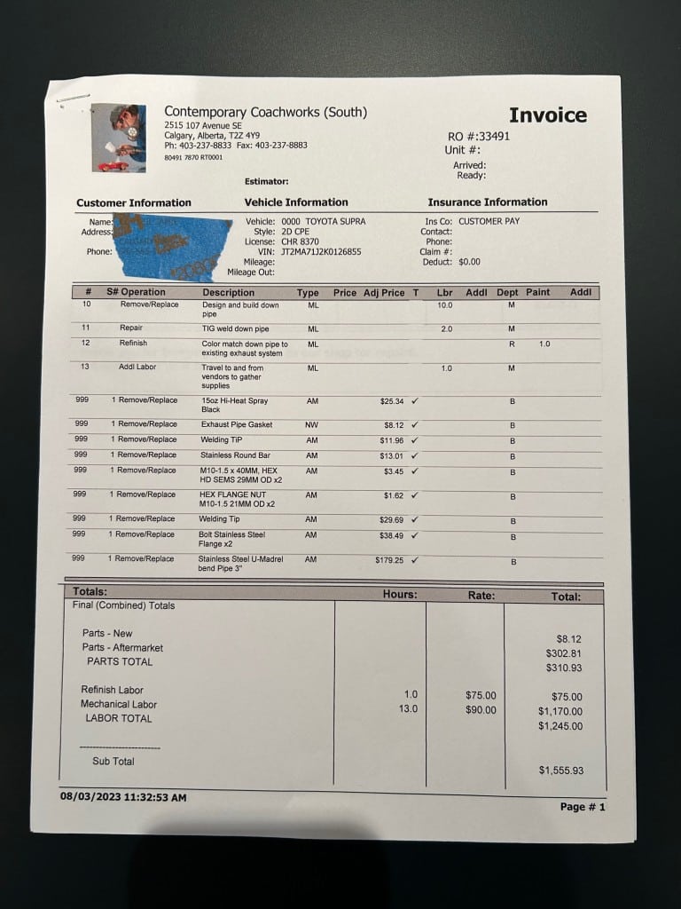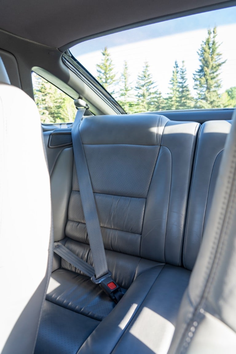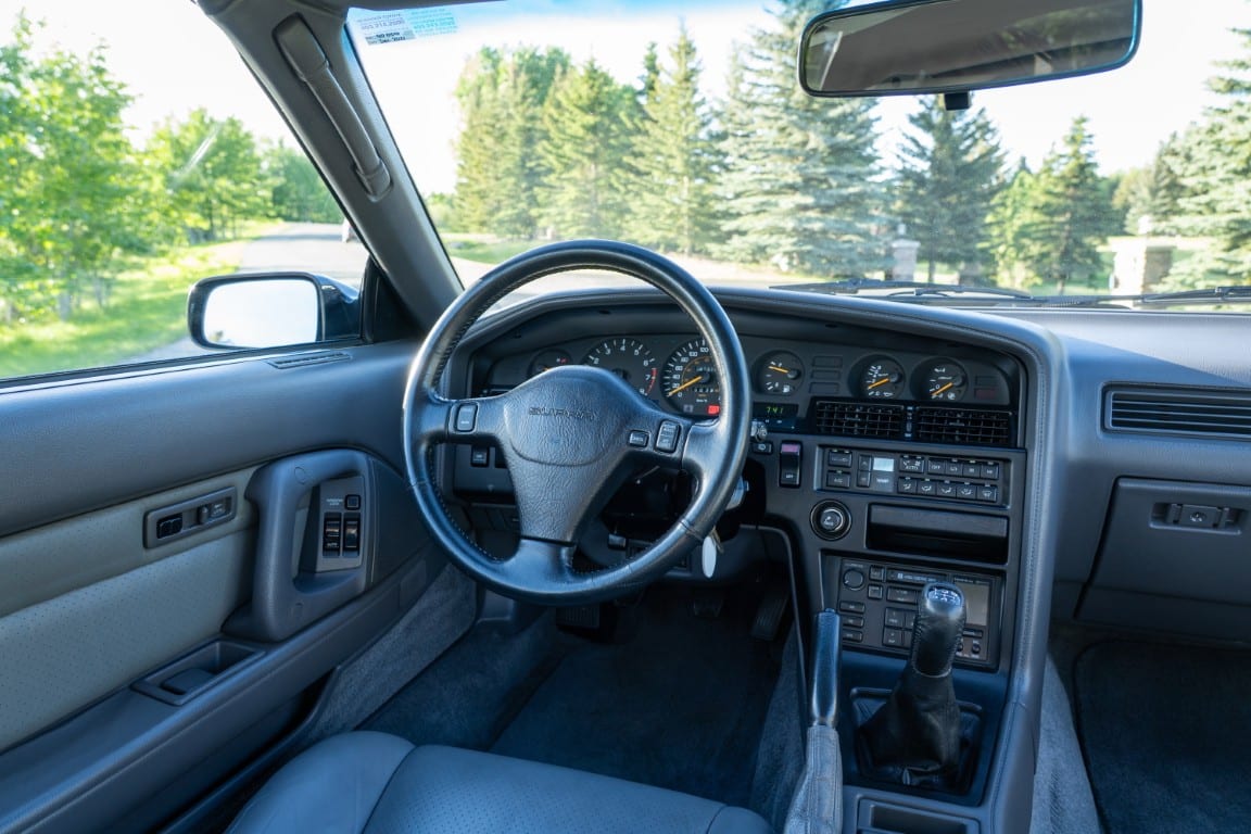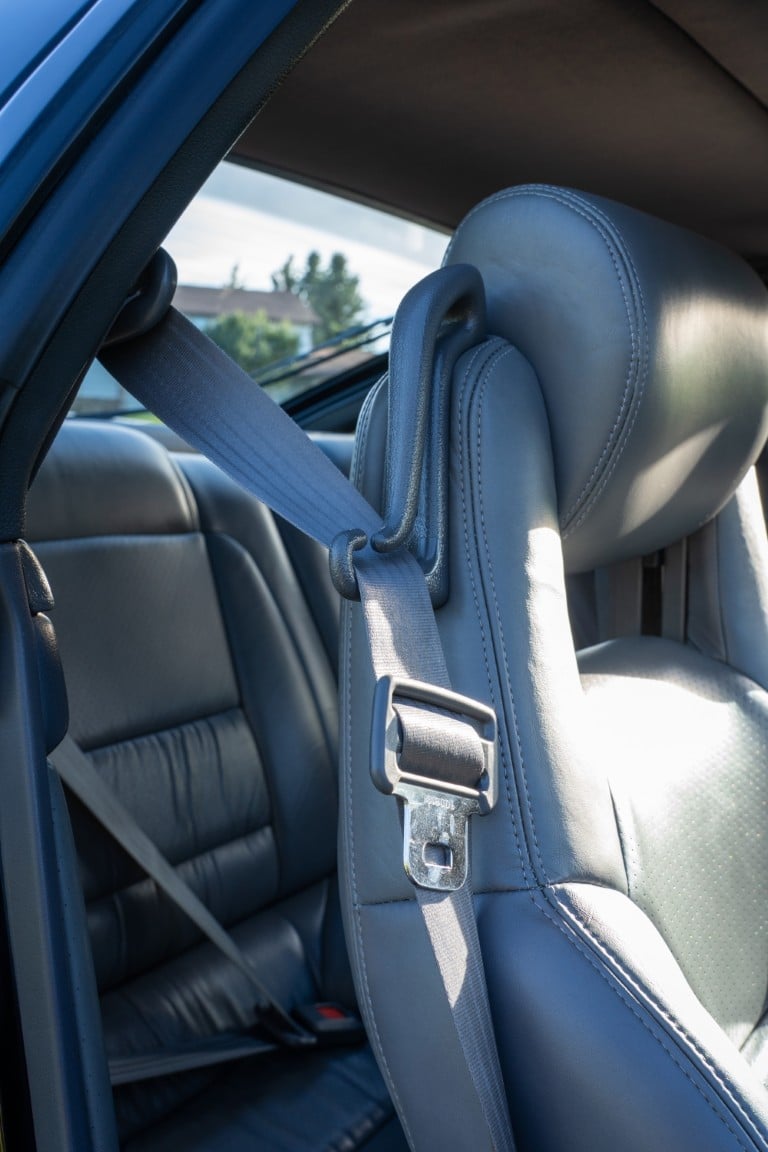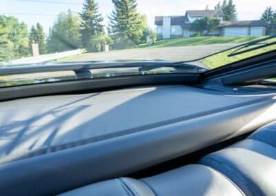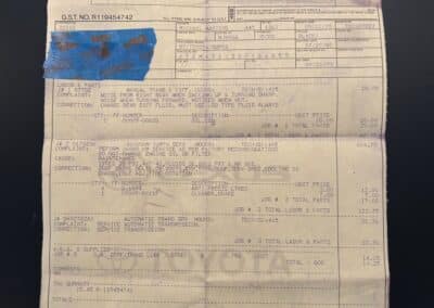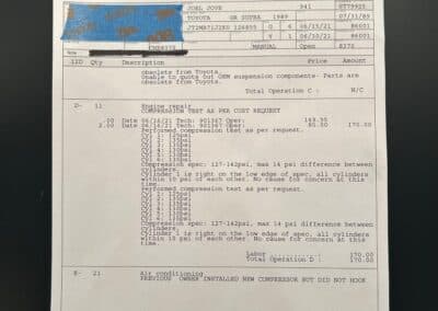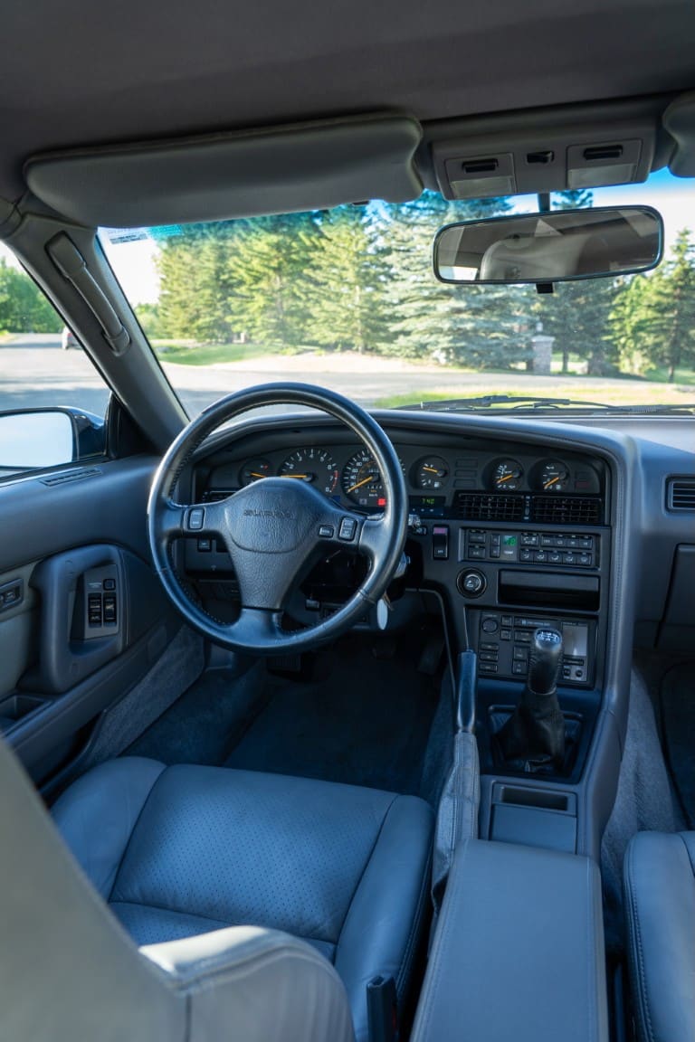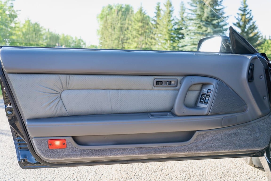 This Supra’s powerplant is a turbocharged 3.0-litre 24-valve inline six-cylinder engine, designated 7M-GTE by Toyota, producing a factory-rated 232 horsepower and 254 lb-ft of torque. It features electronic fuel injection and an air-to-air intercooler. Additional work performed approximately 17,000 kilometers ago under previous ownership includes a timing belt and head gasket replacement, along with an ARP head stud upgrade; confirmed replacement by Heninger Toyota in a 2021 vehicle service. Fluids changed at the time included power steering, transmission, differential and brake. A new A/C compressor installation and a conversion to R134A refrigerant was completed approximately 1500 kilometers ago under current ownership, along with the replacement of the valve cover gaskets and a compression test which are shown in the photo gallery.