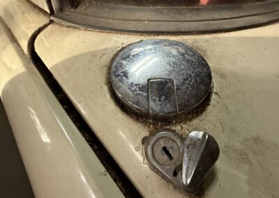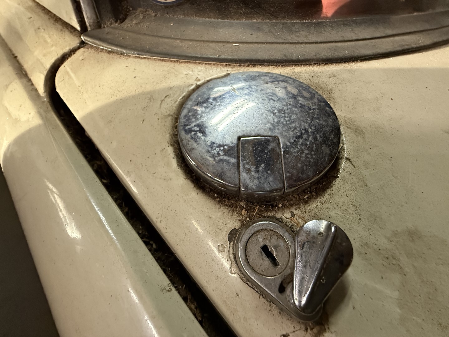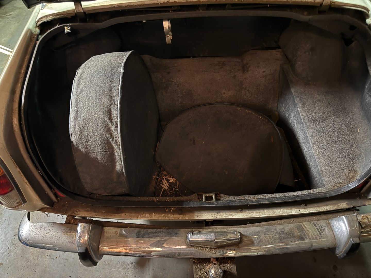 This 1968 Rover 2000 TC is a saloon finished in an off-white exterior and offered at NO RESERVE. Factory brightwork includes chrome bumpers, stainless window surrounds, and the original “ROVER” block lettering across the rear deck. TC badging is in place on the front of the hood, and characteristic P6-series cues such as quad headlamps, vertical tail lamps, front turn indicators, bright drip rails, and a side-hinged trunk lid complete the look. Paint loss is visible on the roof, as are blemishes on other panels. All glass as well as exterior lighting assemblies are intact. The original-spec 14-inch steel wheels are fitted with untested tires and a full-size spare tire is included with the sale, housed in the trunk with a fitted cover.