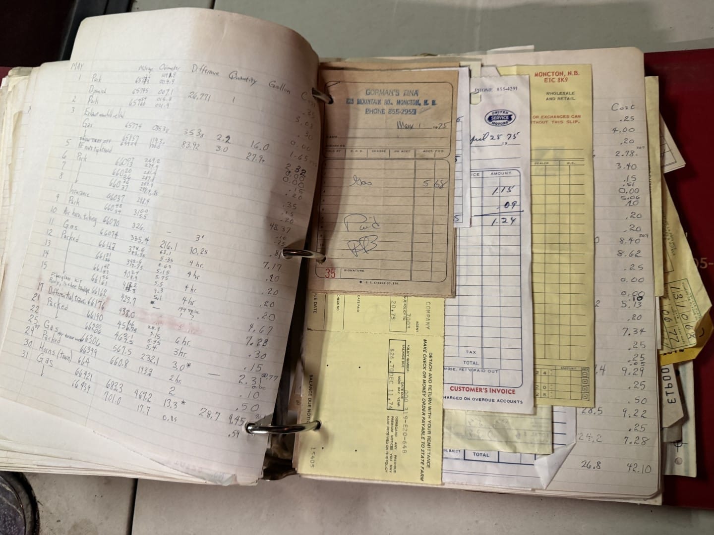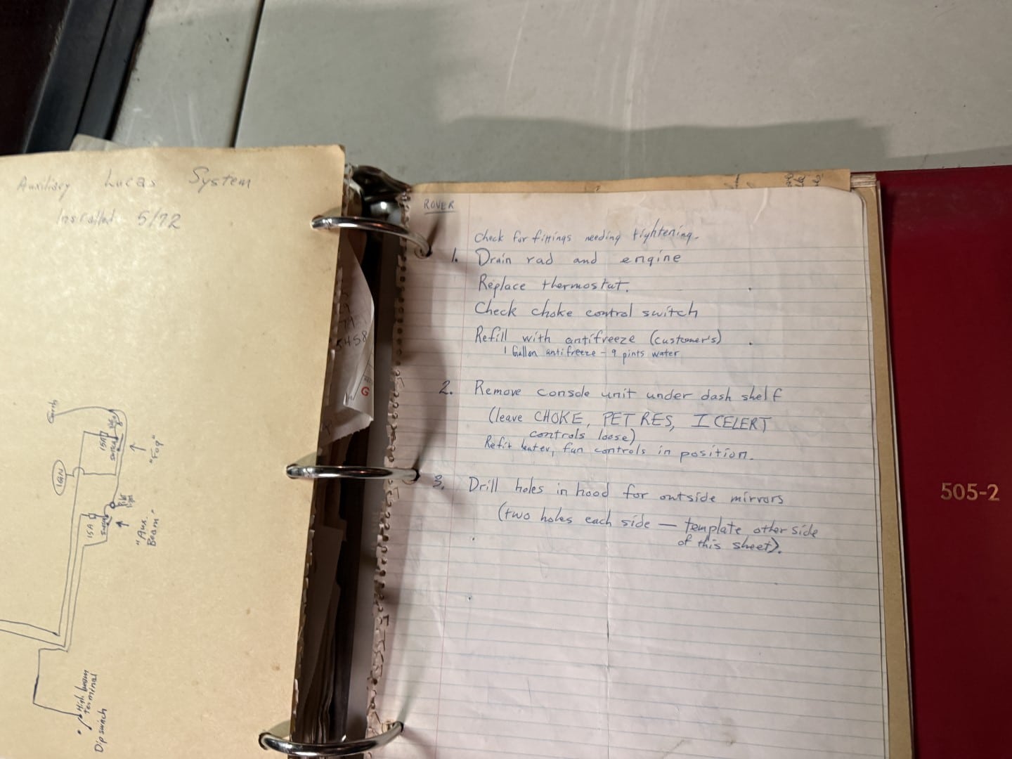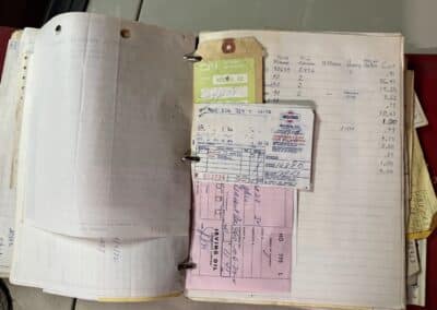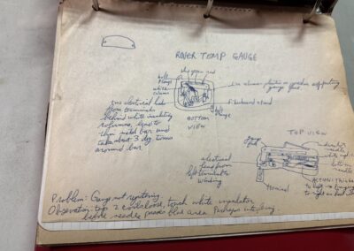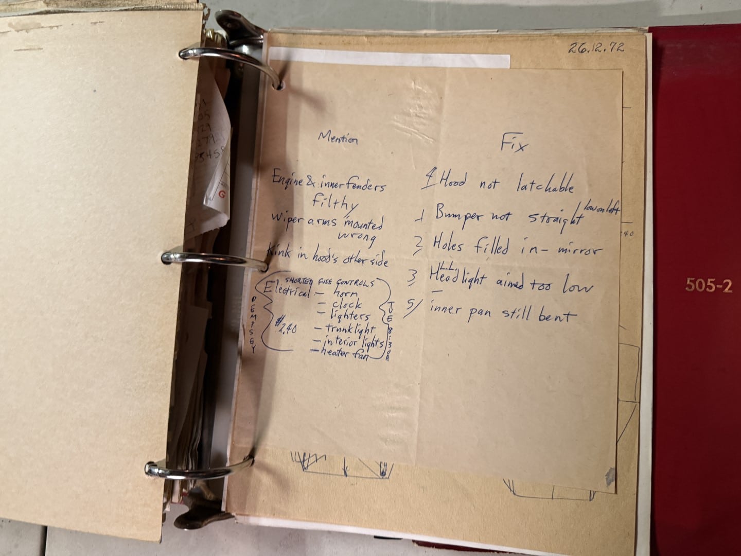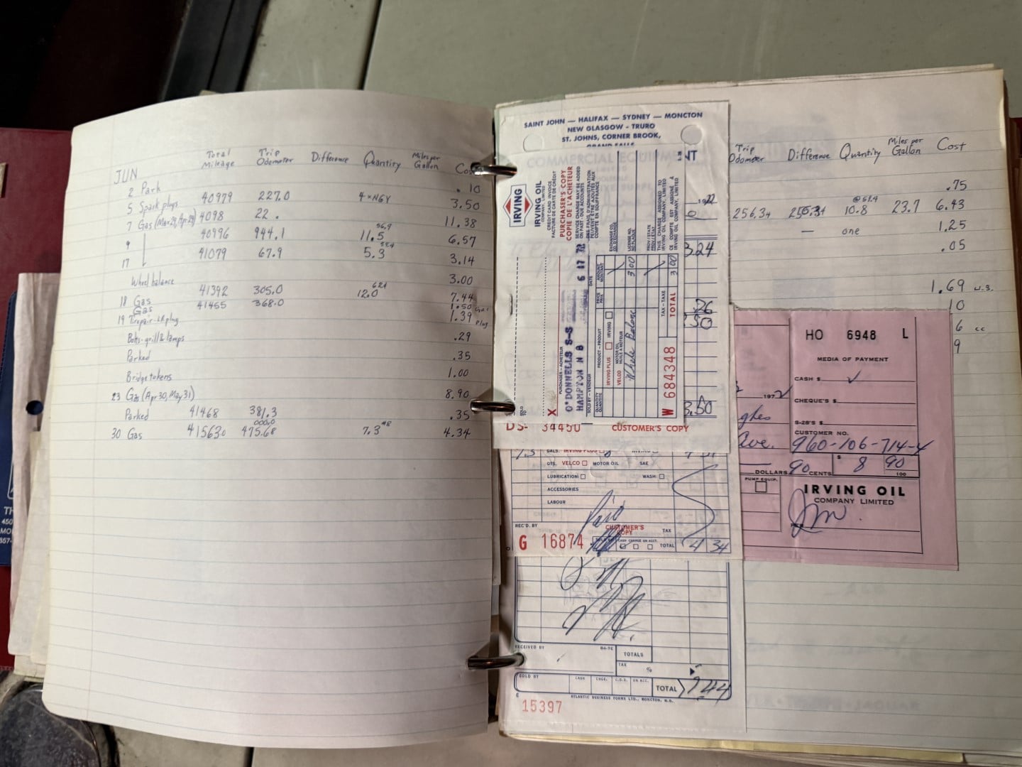 Power comes from a 2-litre single overhead cam inline-four equipped with twin SU carburetors and factory-rated at 124 HP at 5,500 RPM and 127 lb-ft of torque at 3,500 RPM. A four-speed manual gearbox with full synchromesh is complemented by rear wheel drive and a 3.54:1 final-drive ratio. The chassis employs De Dion rear suspension and was among the first production sedans to feature hydraulic servo-assisted disc brakes at all four corners. The five-digit odometer shows under 13,000 miles, though the total milage is unknown (TMU). The sale includes a binder of photographs and handwritten service records documenting decades of ownership by the seller. Additional notes cover routine servicing, fuel consumption, and seasonal driving, illustrating a long history of careful stewardship.