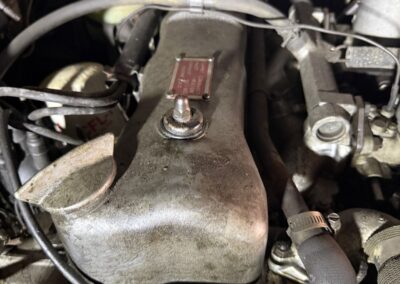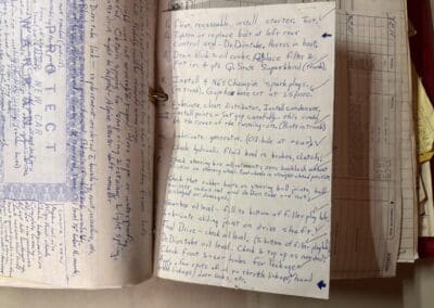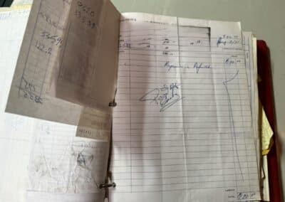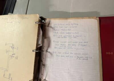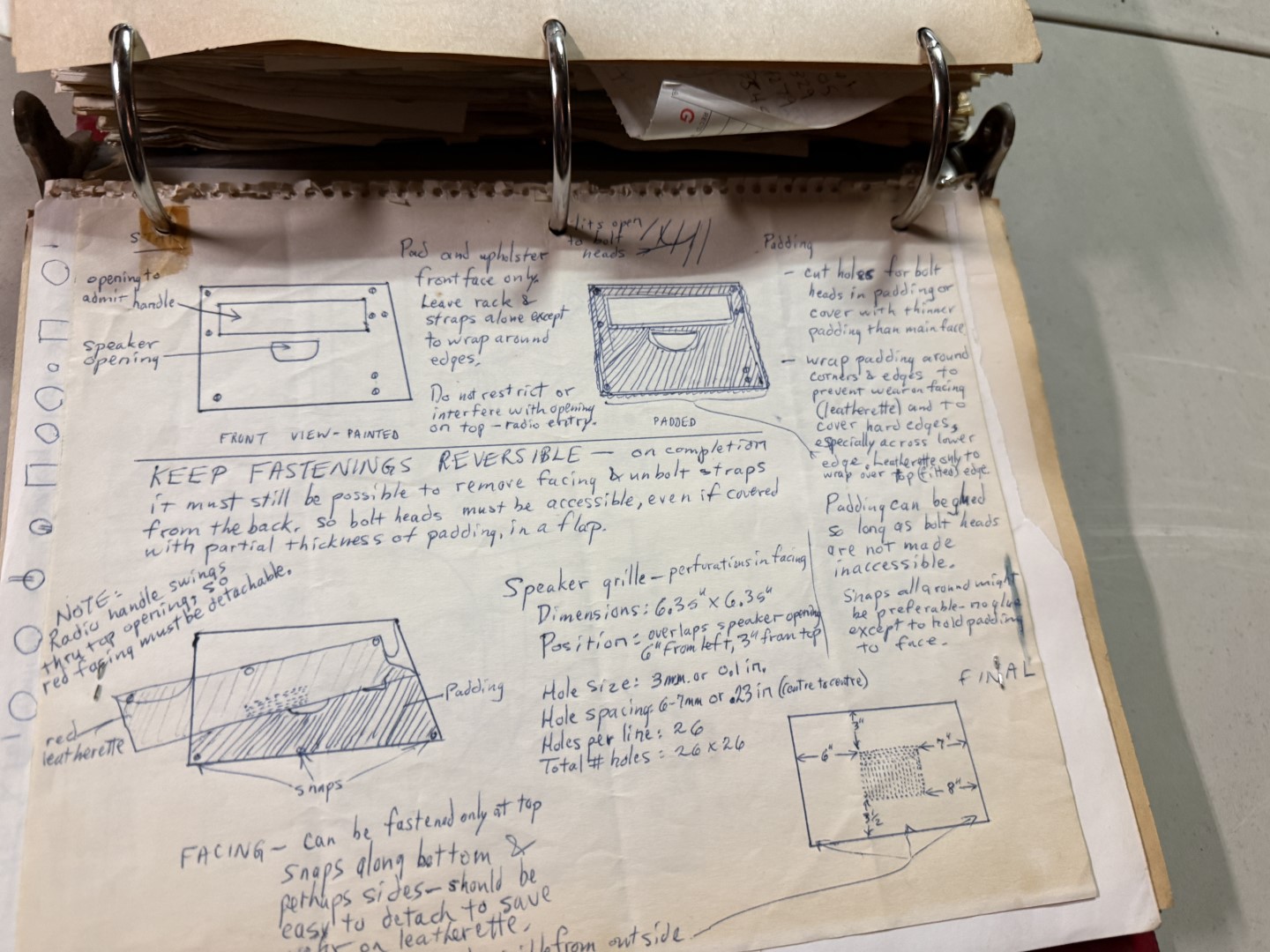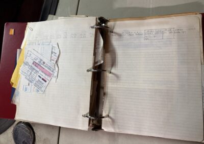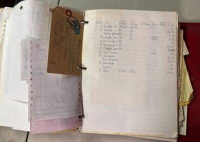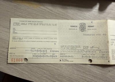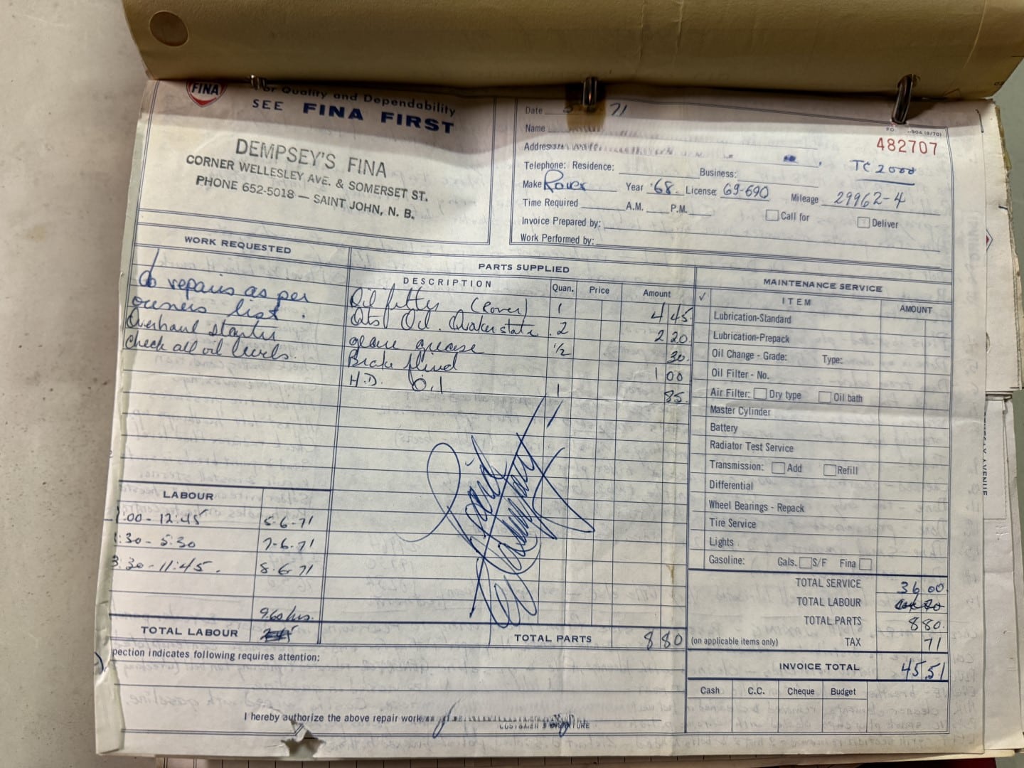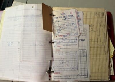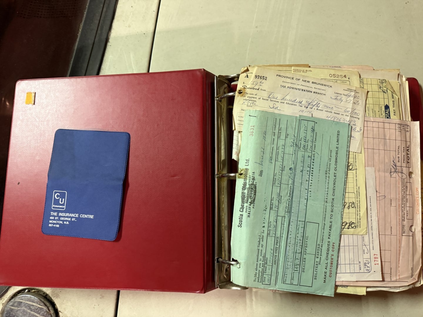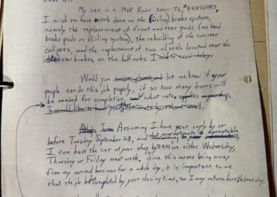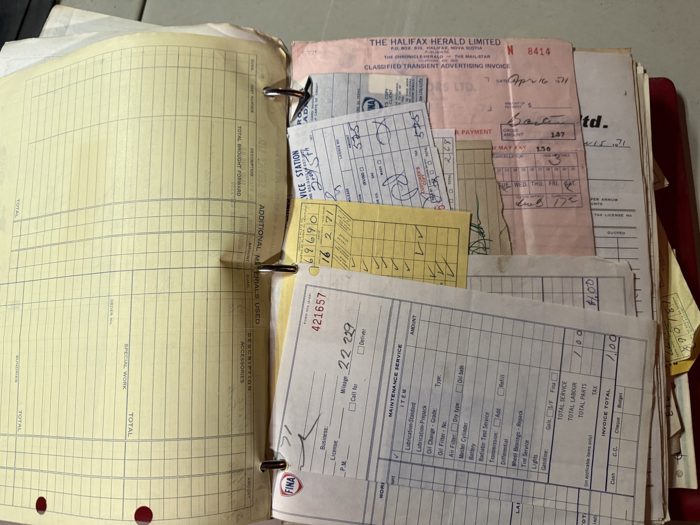 Power comes from a 2-litre single overhead cam inline-four equipped with twin SU carburetors and factory-rated at 124 HP at 5,500 RPM and 127 lb-ft of torque at 3,500 RPM. A four-speed manual gearbox with full synchromesh is complemented by rear wheel drive and a 3.54:1 final-drive ratio. The chassis employs De Dion rear suspension and was among the first production sedans to feature hydraulic servo-assisted disc brakes at all four corners. The five-digit odometer shows under 13,000 miles, though the total milage is unknown (TMU). The sale includes a binder of photographs and handwritten service records documenting decades of ownership by the seller. Additional notes cover routine servicing, fuel consumption, and seasonal driving, illustrating a long history of careful stewardship.