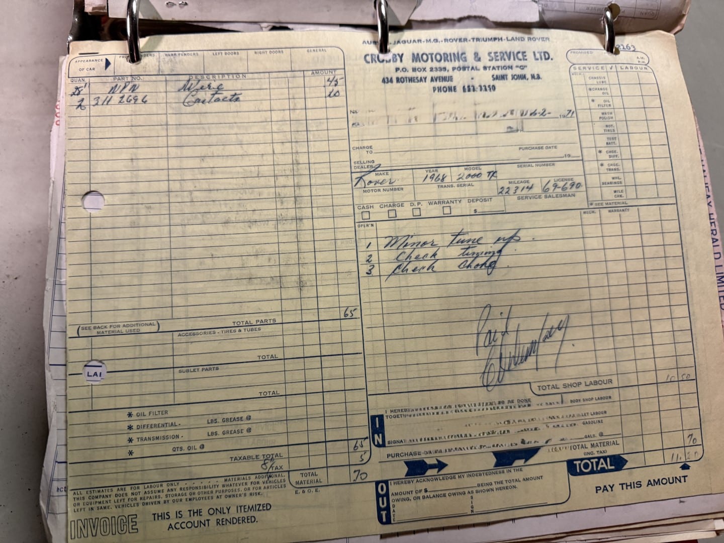 This 1968 Rover 2000 TC is offered with its matching spare, extensive documentation, and original drivetrain by the owner in Moncton, New Brunswick.