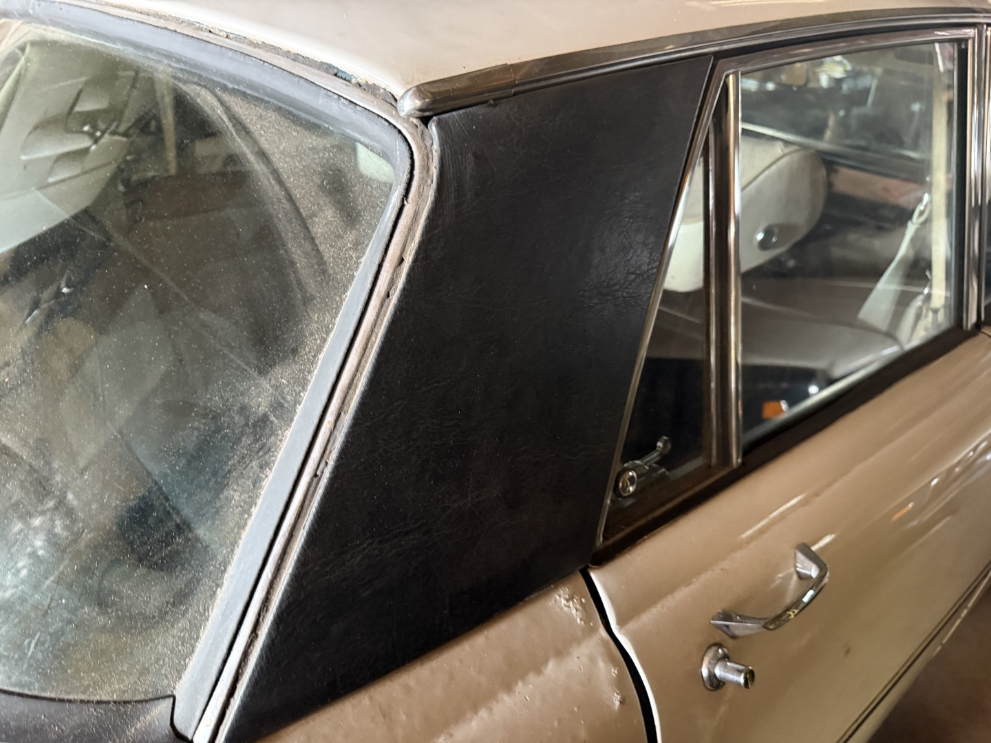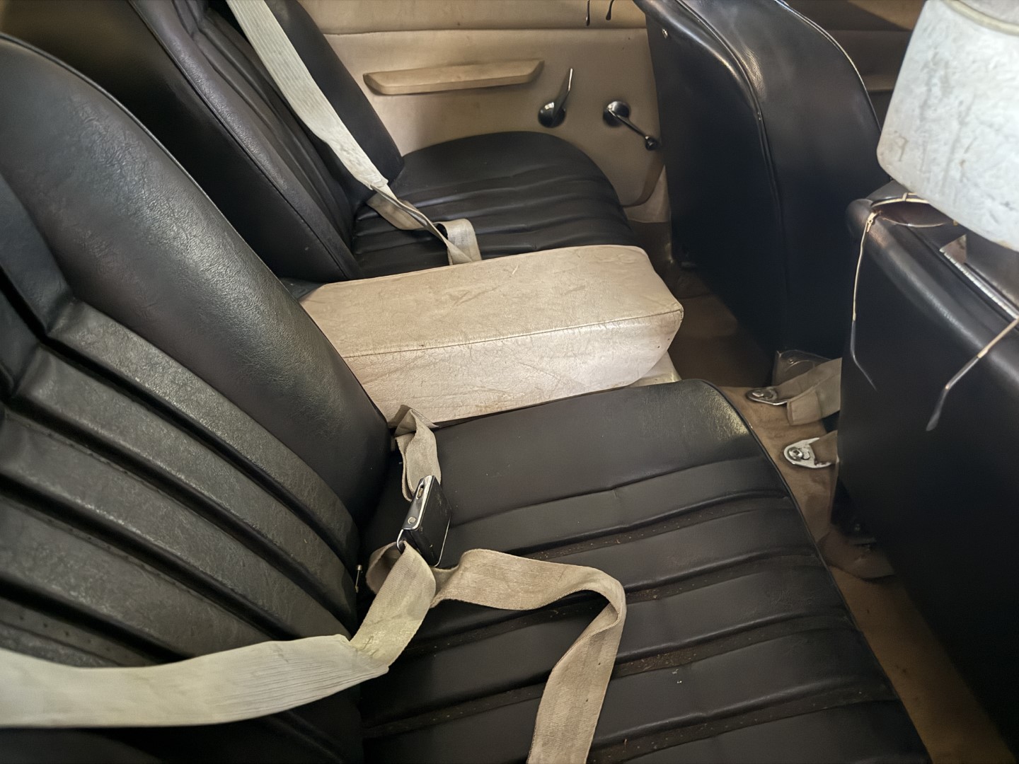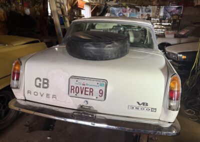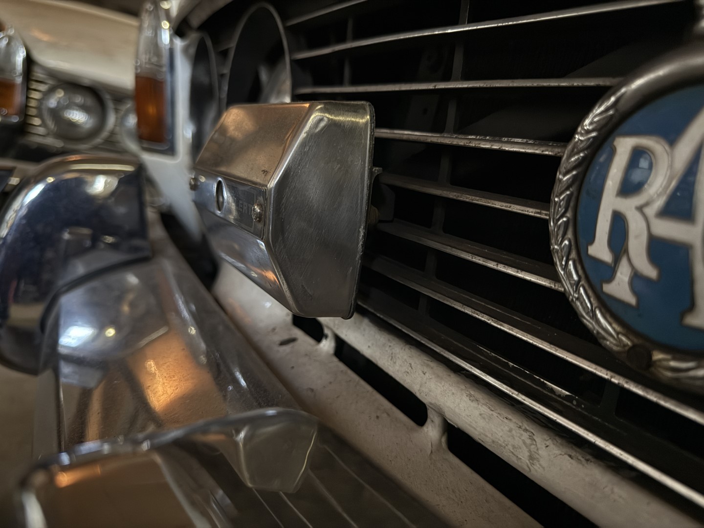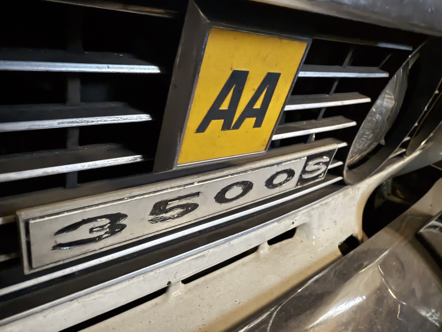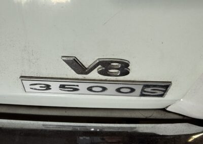 This 1970 Rover P6 3500S 4D is finished in White over a White with Black interior being offered at NO RESERVE. This four-door saloon is accented in chrome bumpers, bright window surrounds, and a chrome strip with a thin pinstripe running the length of the body. Its front fascia features an expanded grille with a “3500 S” badge and a “V8” emblem uniquely perched on the hood, while three functional hood scoops are a tell of air openings on the hood. The outer pair is in place to ventilate the engine compartment and the centre duct feeds outside air through the air cleaner to the twin SU carburetors. Fourteen-inch wheels are fitted with experienced 185/75 R14 Radial XH whitewall tires, and braking is handled by power-assisted discs at all four corners. There is noticeable evidence of body- and paintwork on the trunk lid near the GB emblem, carried out by the owner some decades ago. Two aftermarket touches are the familiar-in-Britain emblems for Automobile Association and Royal Automobile Club on the grille. Two aftermarket touches are the familiar-in-Britain emblems for Automobile Association and Royal Automobile Club on the grille, which complement the trunk lid-mounted spare, covered in a dedicated vinyl slip.