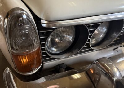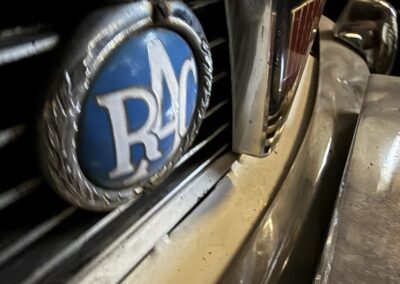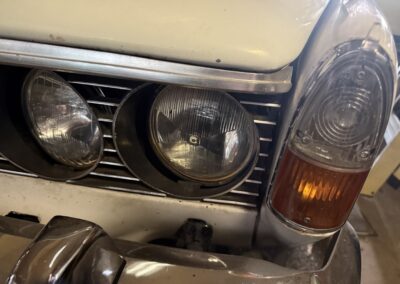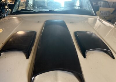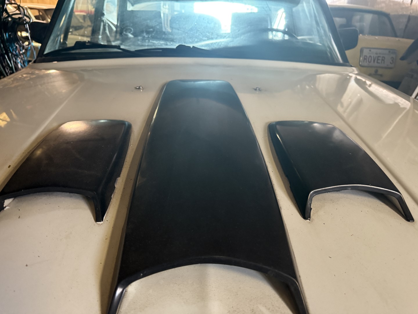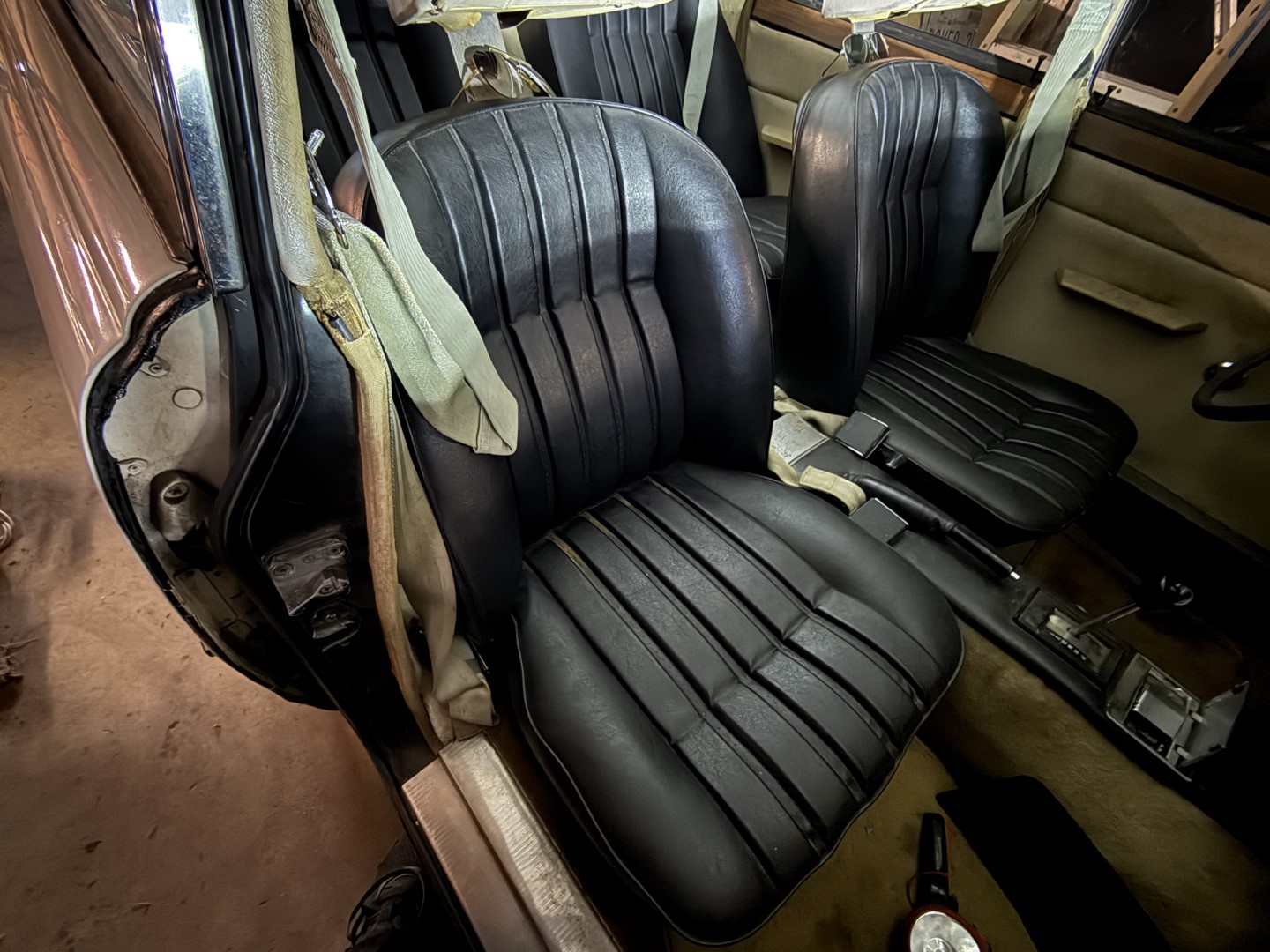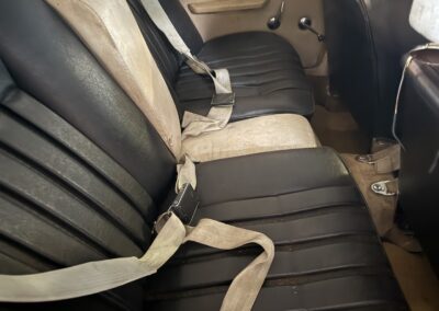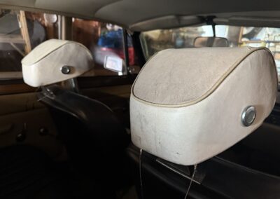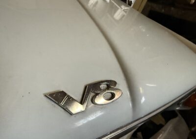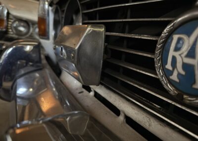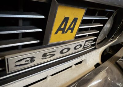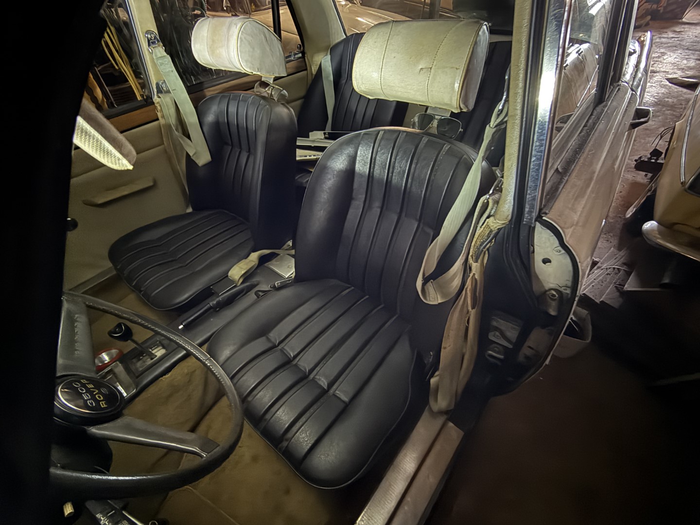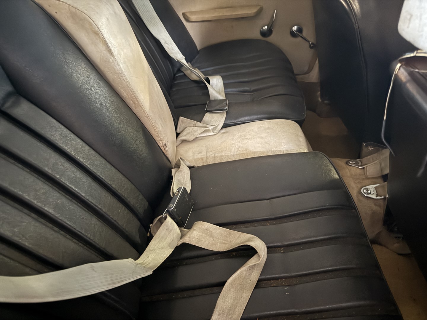 This 1970 Rover P6 3500S 4D is finished in White over a White with Black interior being offered at NO RESERVE. This four-door saloon is accented in chrome bumpers, bright window surrounds, and a chrome strip with a thin pinstripe running the length of the body. Its front fascia features an expanded grille with a “3500 S” badge and a “V8” emblem uniquely perched on the hood, while three functional hood scoops are a tell of air openings on the hood. The outer pair is in place to ventilate the engine compartment and the centre duct feeds outside air through the air cleaner to the twin SU carburetors. Fourteen-inch wheels are fitted with experienced 185/75 R14 Radial XH whitewall tires, and braking is handled by power-assisted discs at all four corners. There is noticeable evidence of body- and paintwork on the trunk lid near the GB emblem, carried out by the owner some decades ago. Two aftermarket touches are the familiar-in-Britain emblems for Automobile Association and Royal Automobile Club on the grille. Two aftermarket touches are the familiar-in-Britain emblems for Automobile Association and Royal Automobile Club on the grille, which complement the trunk lid-mounted spare, covered in a dedicated vinyl slip.