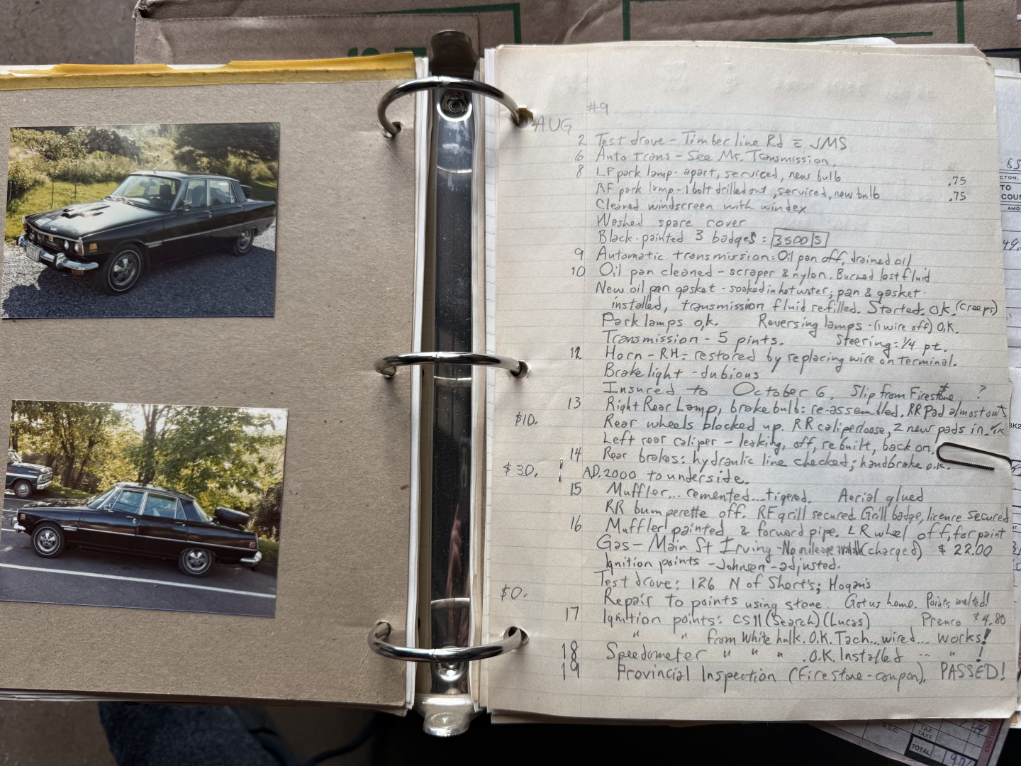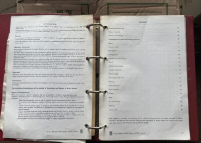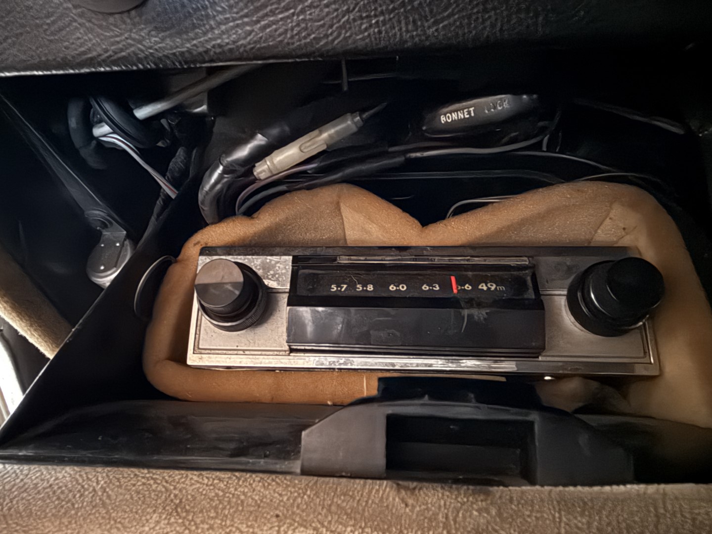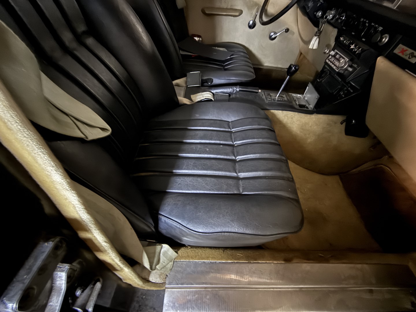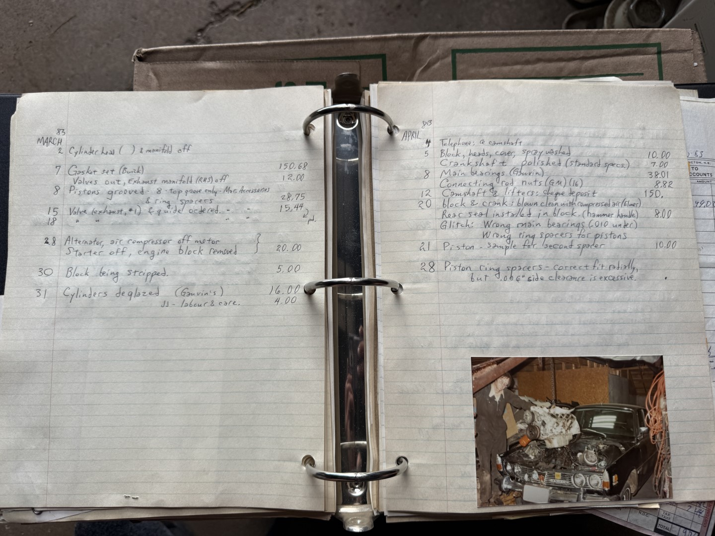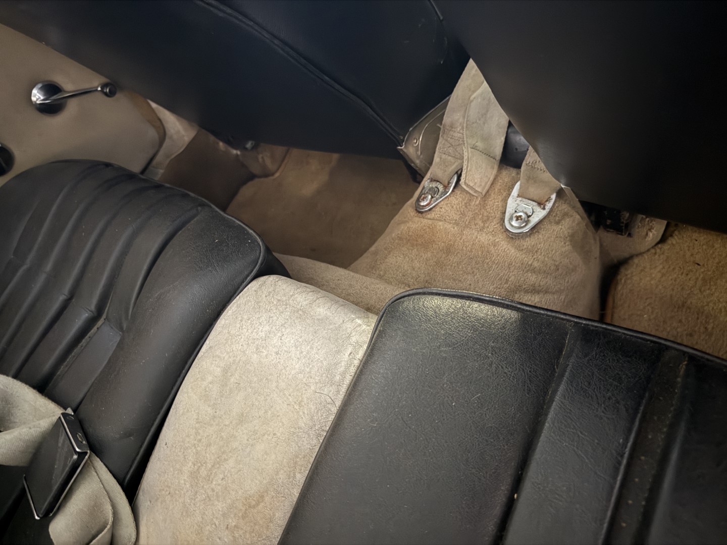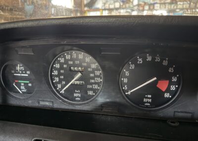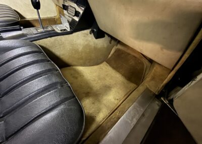 The original aluminum 3.5-litre overhead-valve V8 is in place, having produced 210 lb-ft of torque at 3,000 RPM out of the factory. Induction is via twin SU carburetors, and power is sento the rear wheels via a 3.08:1 limited-slip differential. The V8 sits cleanly in the engine bay with space for maintenance access. Accompanying the sale is a binder with ownership records dating back to the ‘70s. It highlights a complete engine rebuild in 1983, documented with detailed handwritten notes, receipts and period photographs.