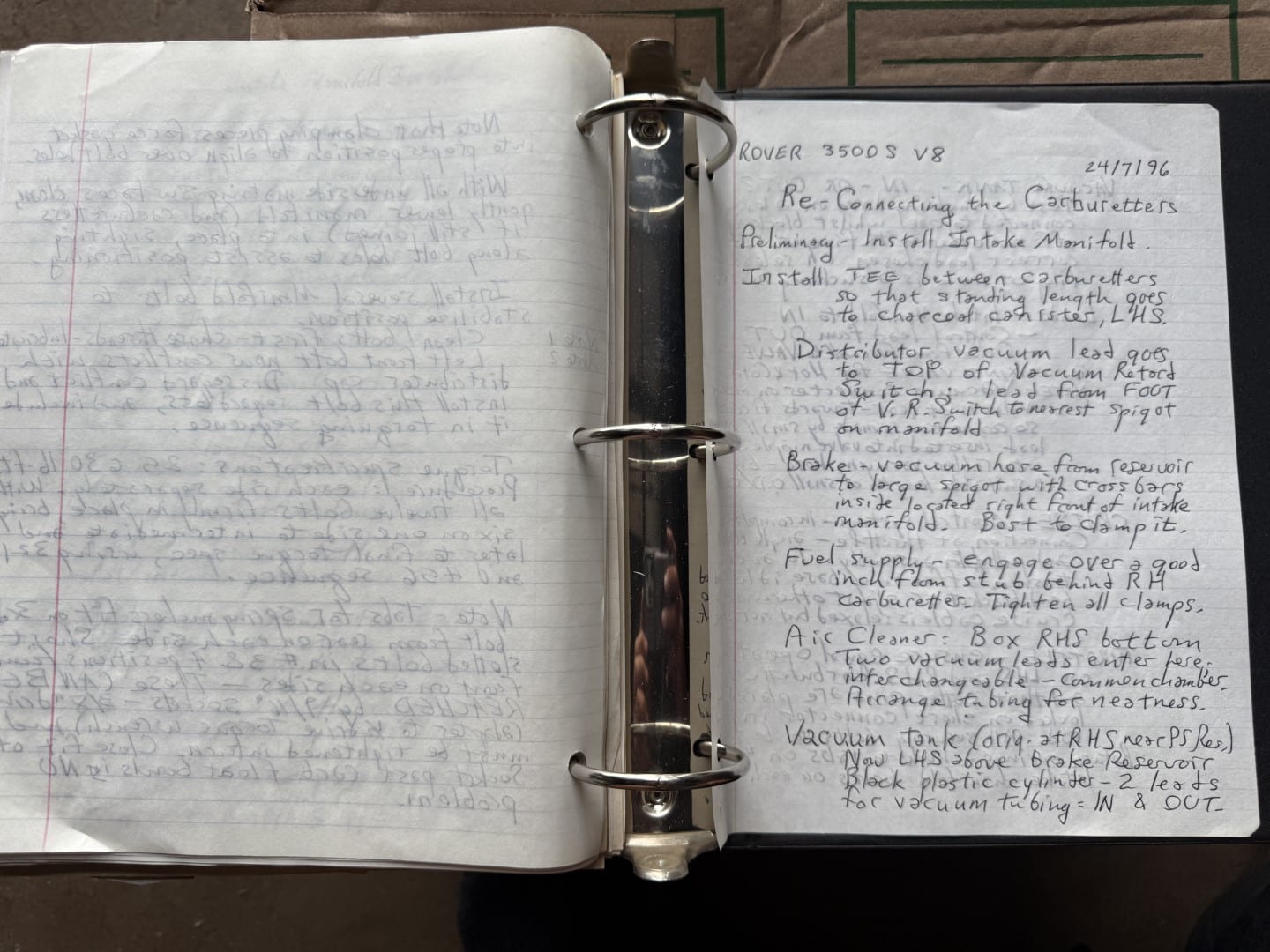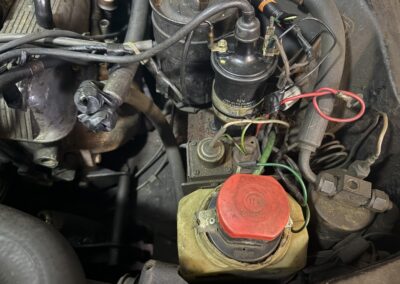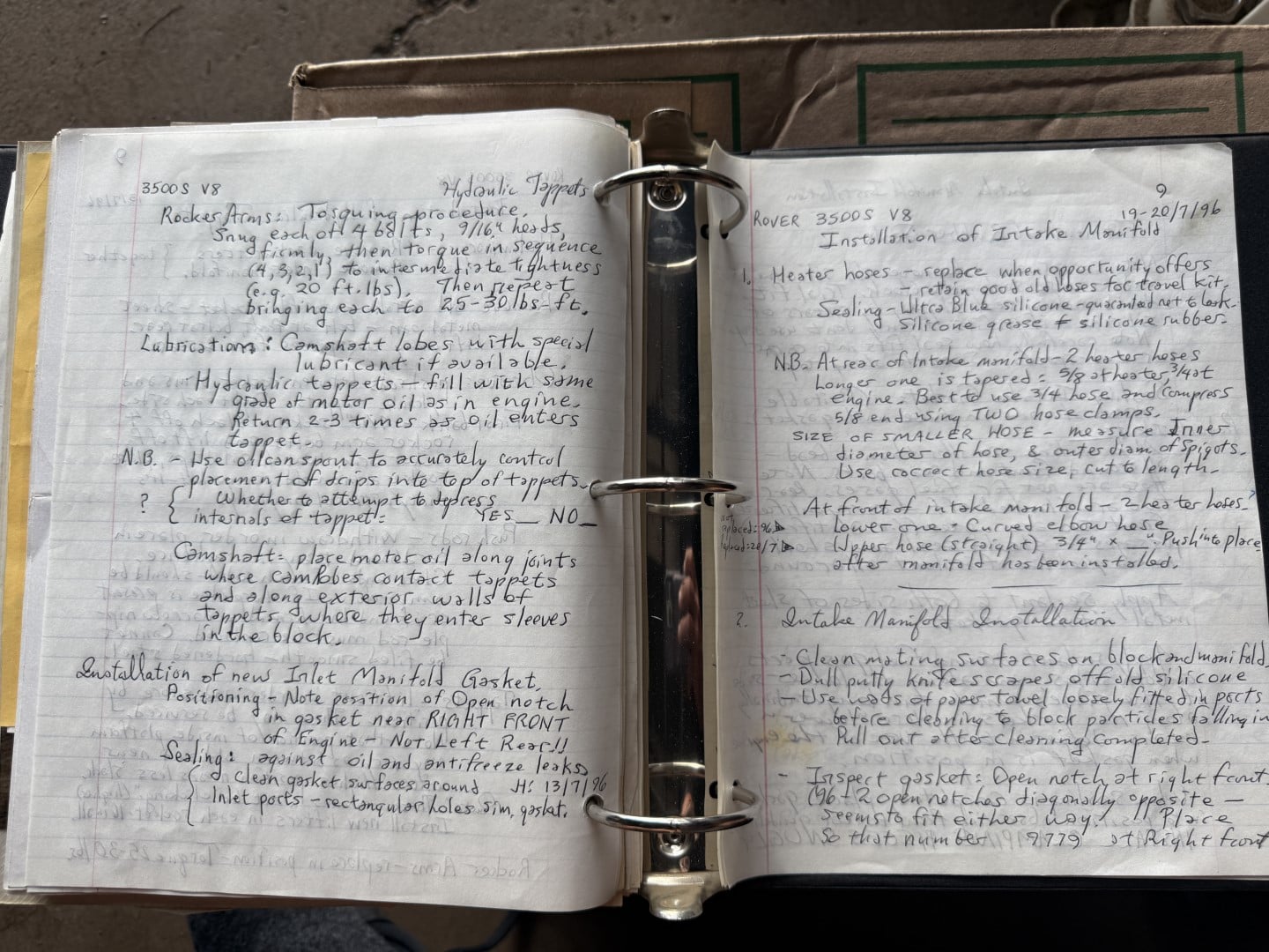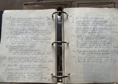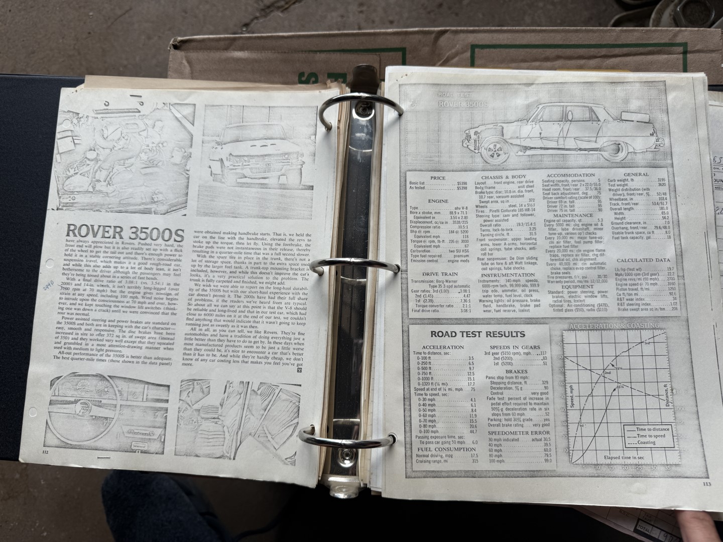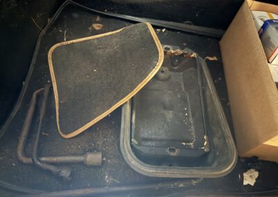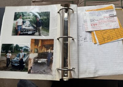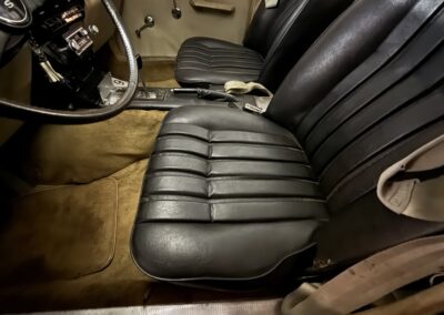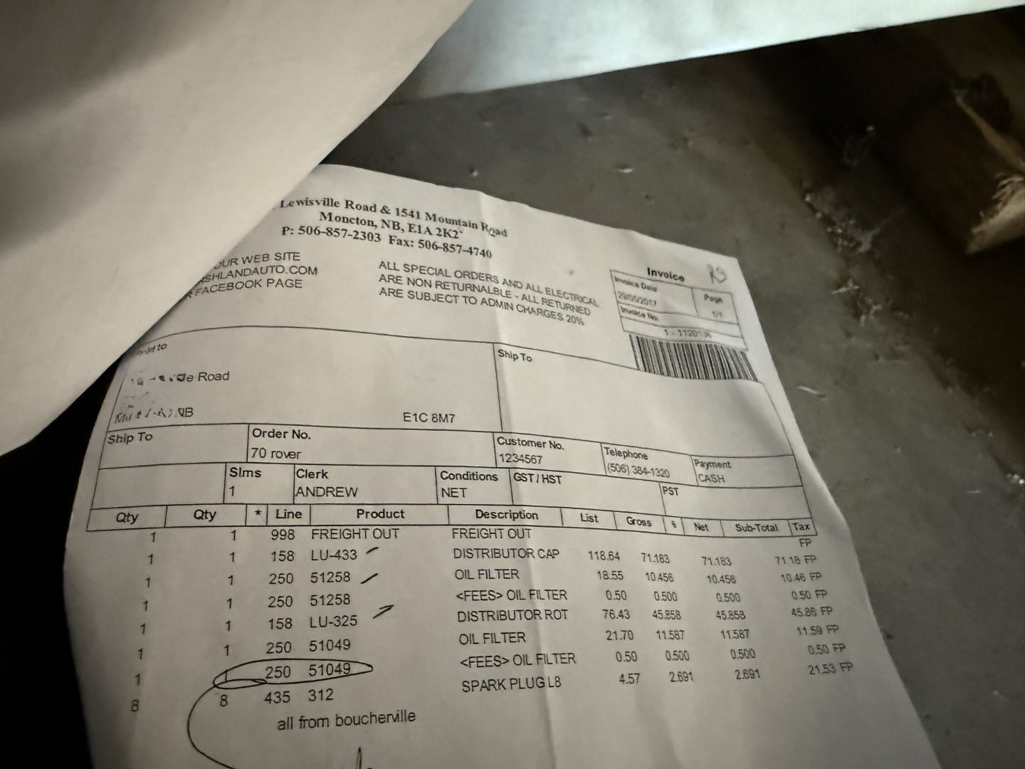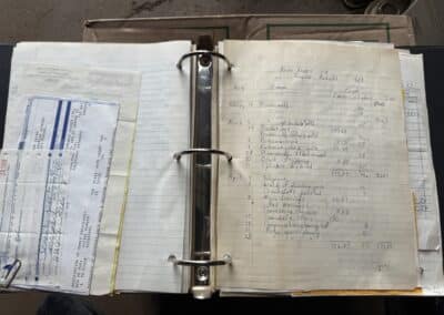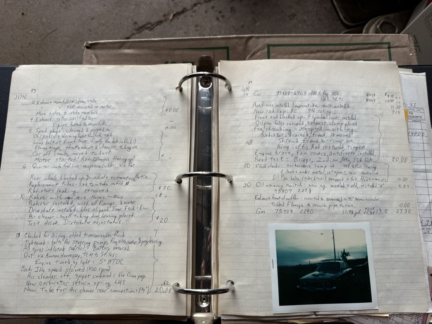 The original aluminum 3.5-litre overhead-valve V8 is in place, having produced 210 lb-ft of torque at 3,000 RPM out of the factory. Induction is via twin SU carburetors, and power is sento the rear wheels via a 3.08:1 limited-slip differential. The V8 sits cleanly in the engine bay with space for maintenance access. Accompanying the sale is a binder with ownership records dating back to the ‘70s. It highlights a complete engine rebuild in 1983, documented with detailed handwritten notes, receipts and period photographs.