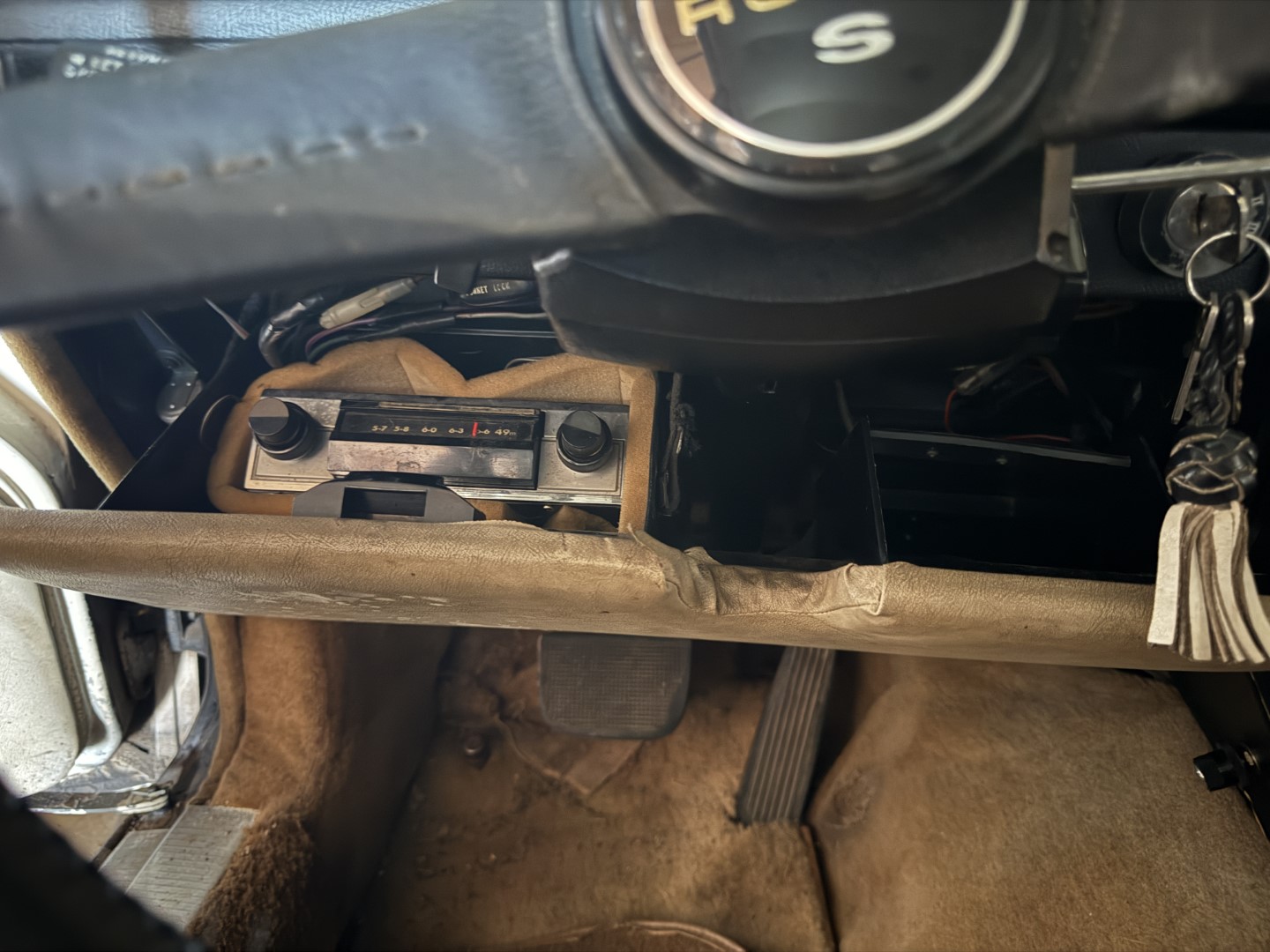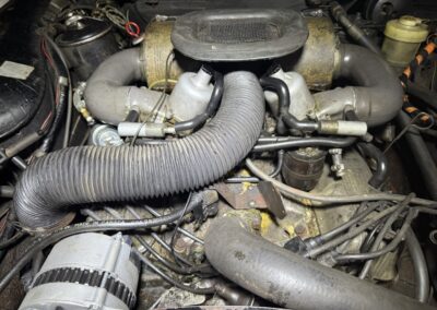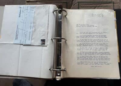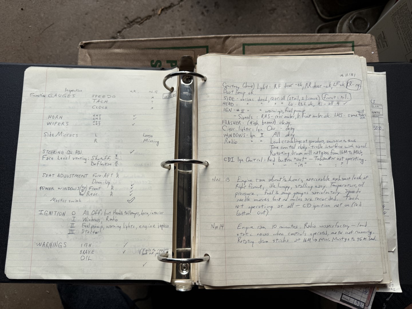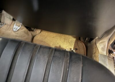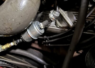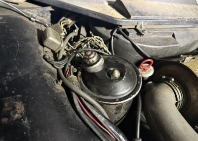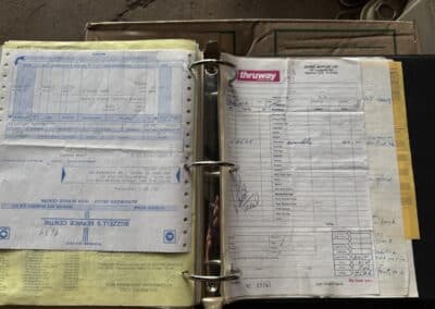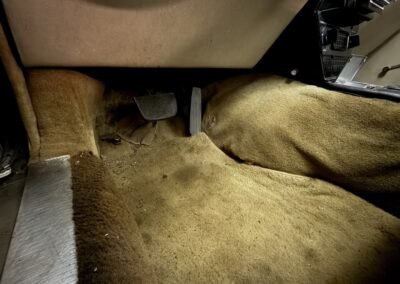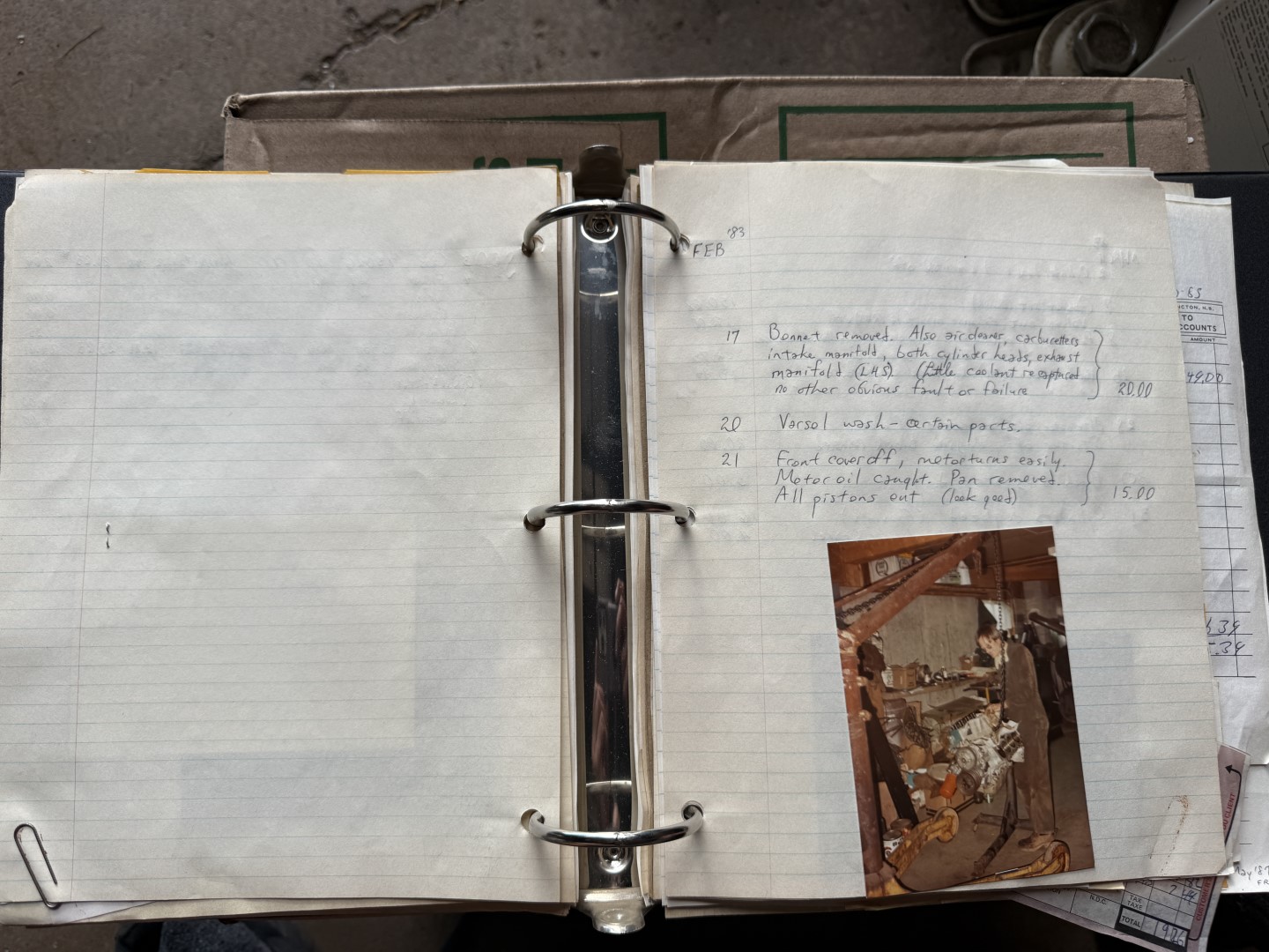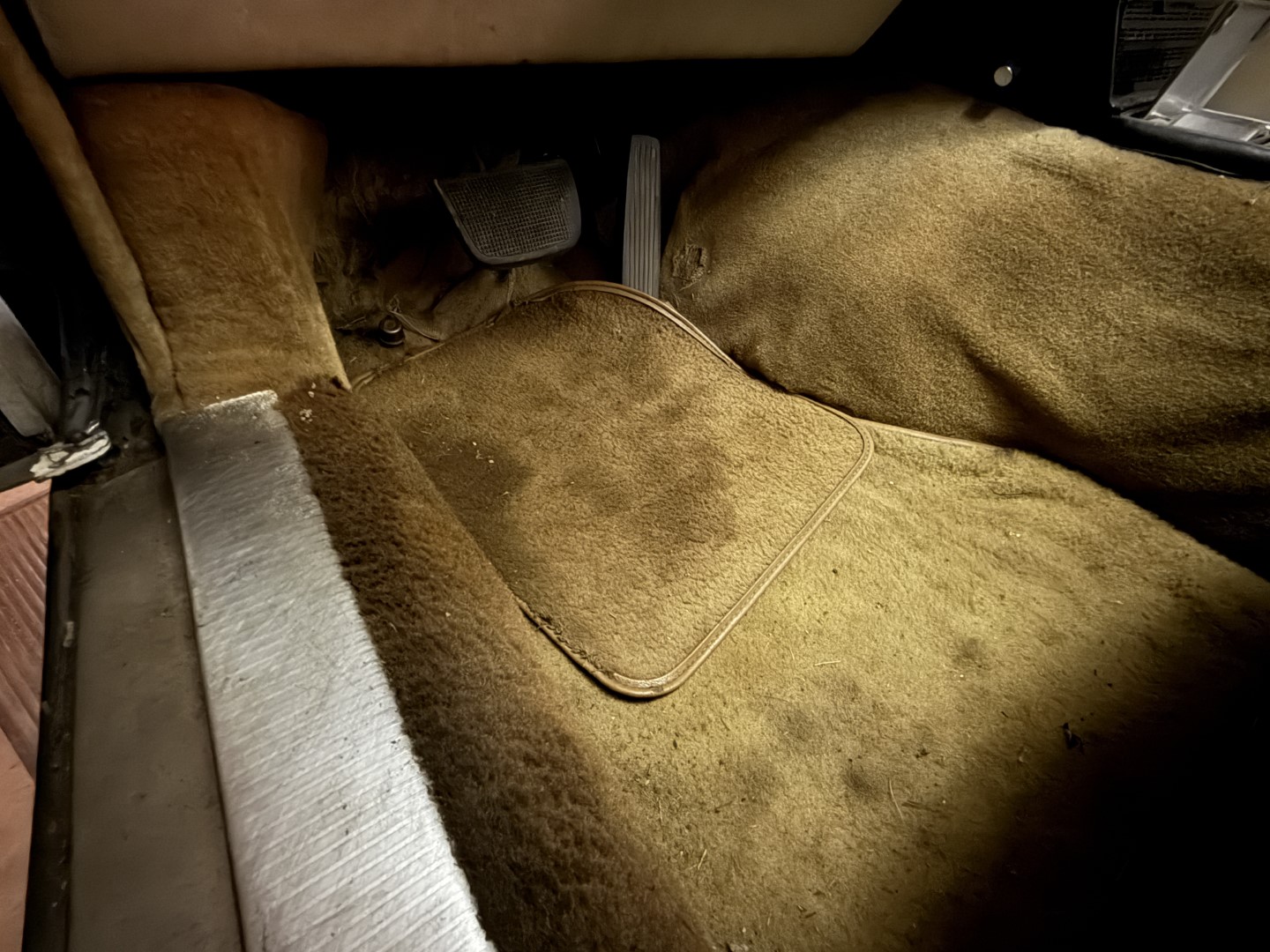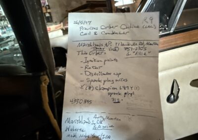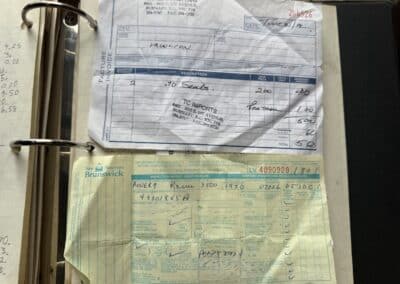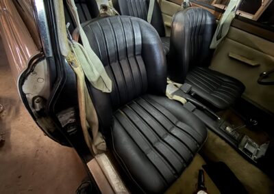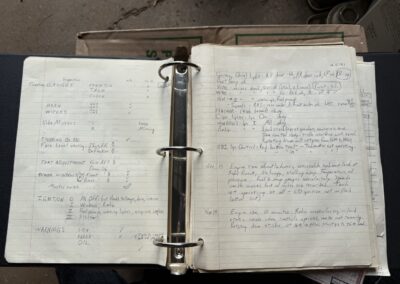 The original aluminum 3.5-litre overhead-valve V8 is in place, having produced 210 lb-ft of torque at 3,000 RPM out of the factory. Induction is via twin SU carburetors, and power is sento the rear wheels via a 3.08:1 limited-slip differential. The V8 sits cleanly in the engine bay with space for maintenance access. Accompanying the sale is a binder with ownership records dating back to the ‘70s. It highlights a complete engine rebuild in 1983, documented with detailed handwritten notes, receipts and period photographs.
