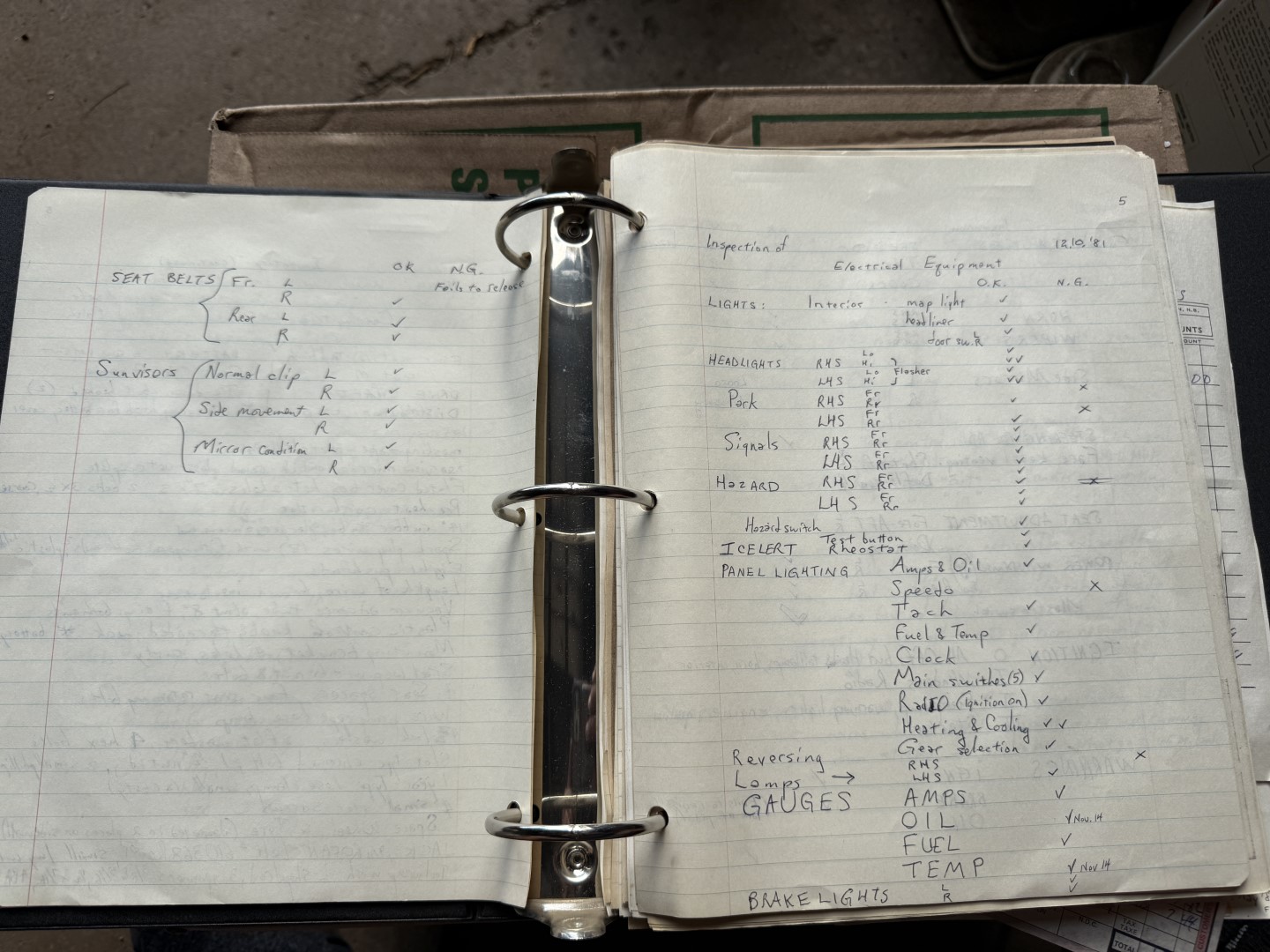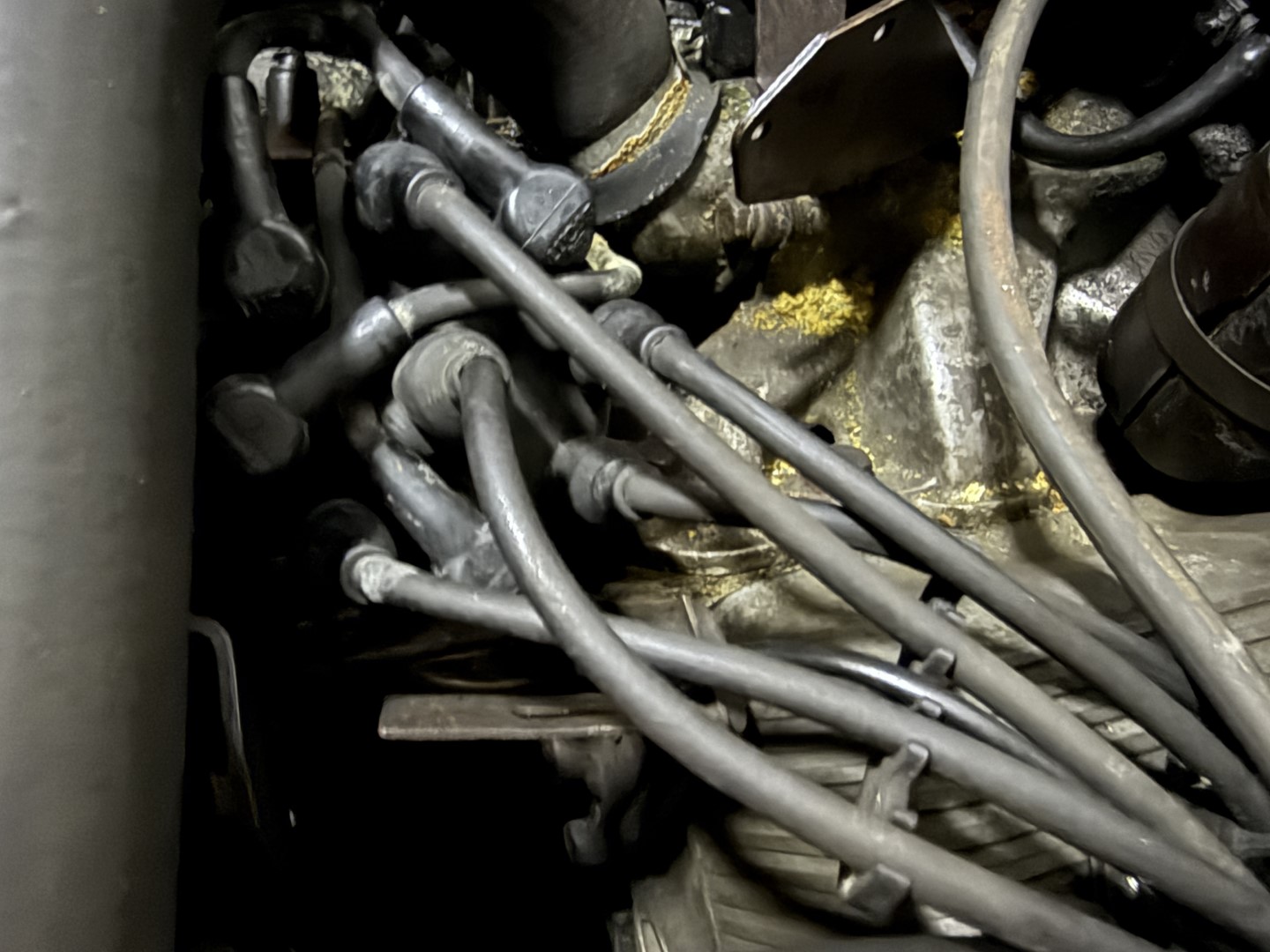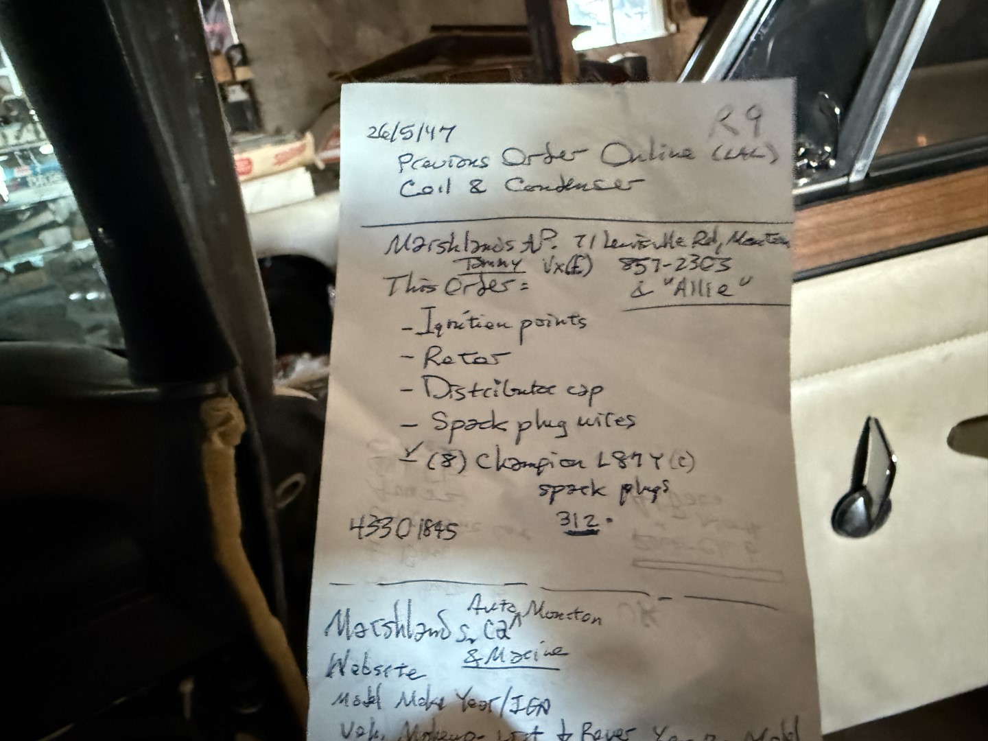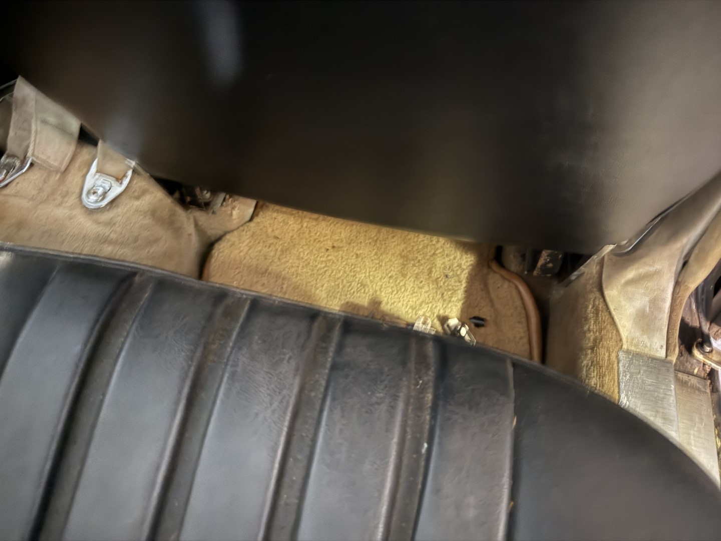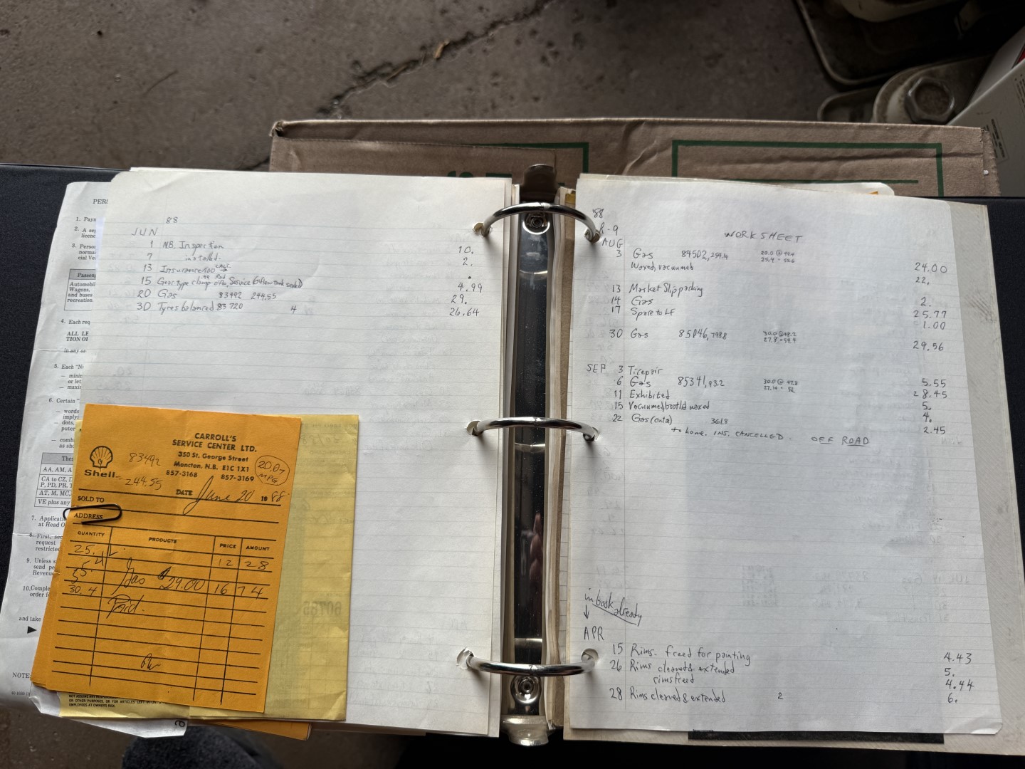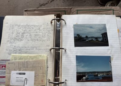 The original aluminum 3.5-litre overhead-valve V8 is in place, having produced 210 lb-ft of torque at 3,000 RPM out of the factory. Induction is via twin SU carburetors, and power is sento the rear wheels via a 3.08:1 limited-slip differential. The V8 sits cleanly in the engine bay with space for maintenance access. Accompanying the sale is a binder with ownership records dating back to the ‘70s. It highlights a complete engine rebuild in 1983, documented with detailed handwritten notes, receipts and period photographs.