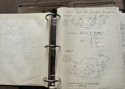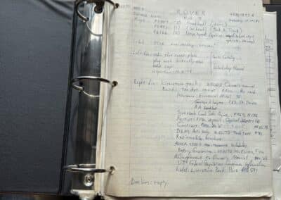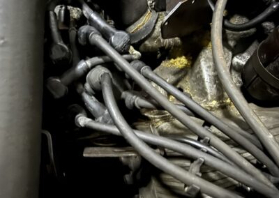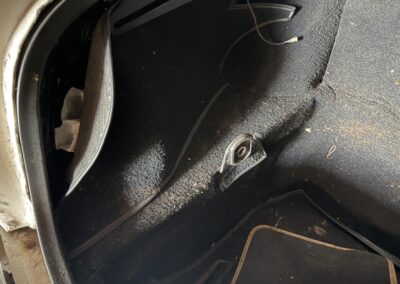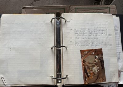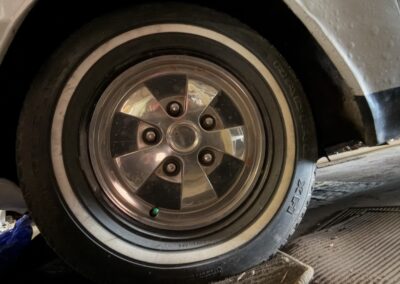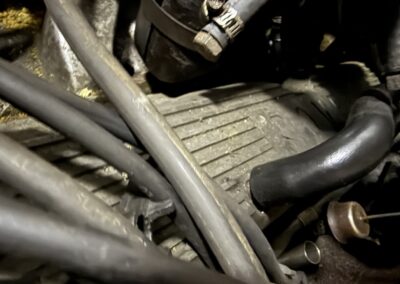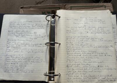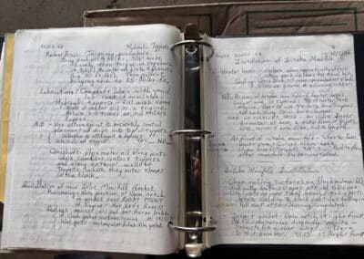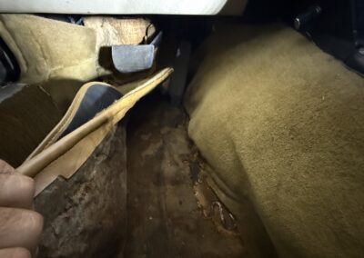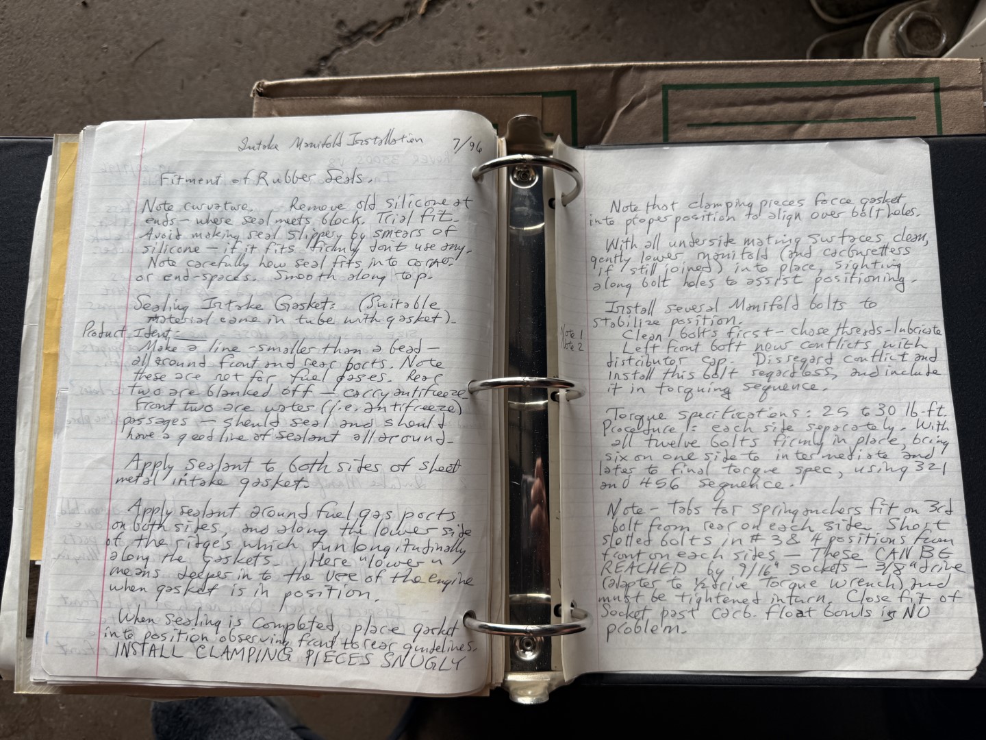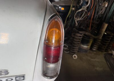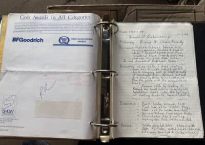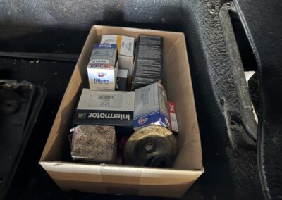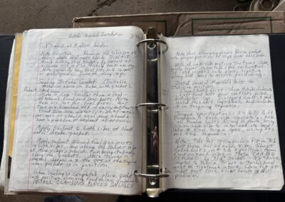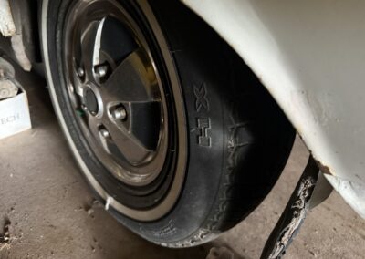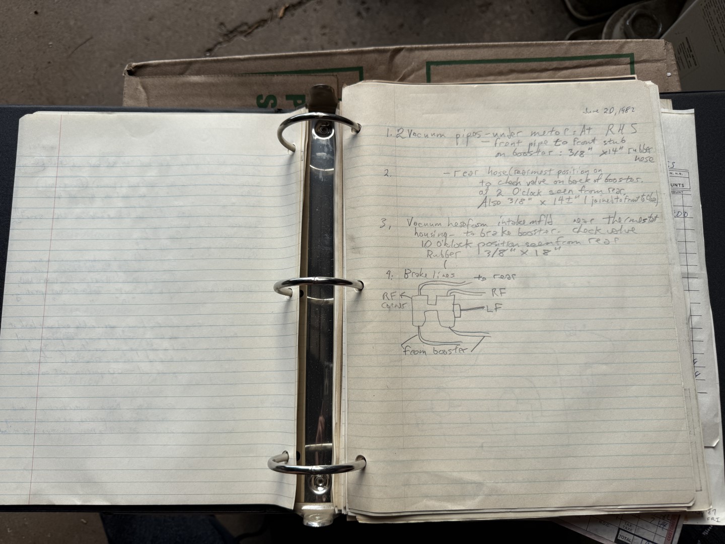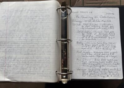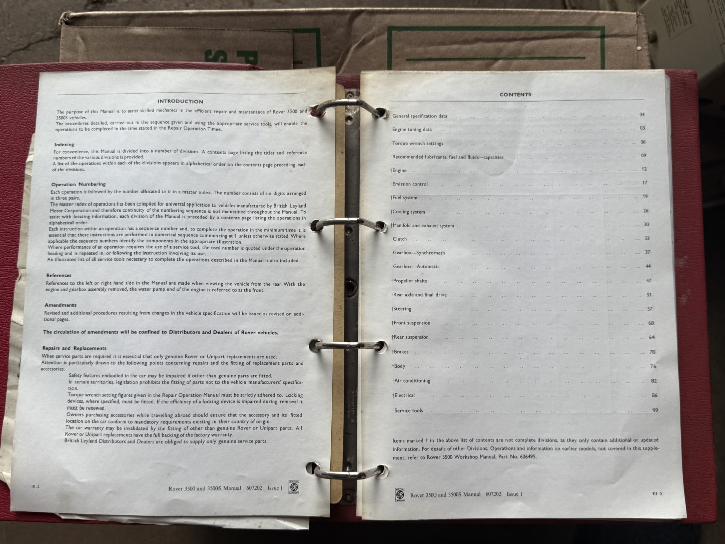 The original aluminum 3.5-litre overhead-valve V8 is in place, having produced 210 lb-ft of torque at 3,000 RPM out of the factory. Induction is via twin SU carburetors, and power is sento the rear wheels via a 3.08:1 limited-slip differential. The V8 sits cleanly in the engine bay with space for maintenance access. Accompanying the sale is a binder with ownership records dating back to the ‘70s. It highlights a complete engine rebuild in 1983, documented with detailed handwritten notes, receipts and period photographs.