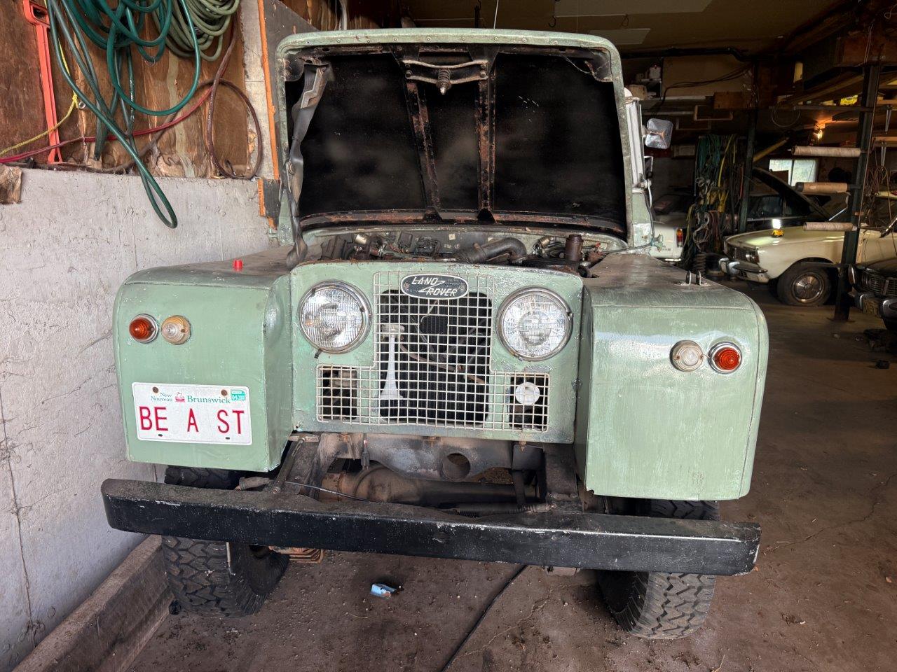 This 1971 Land Rover 109 Series IIA is offered with an owner’s manual, two keys, a book of records and a spare tire by the seller in Moncton, New Brunswick.