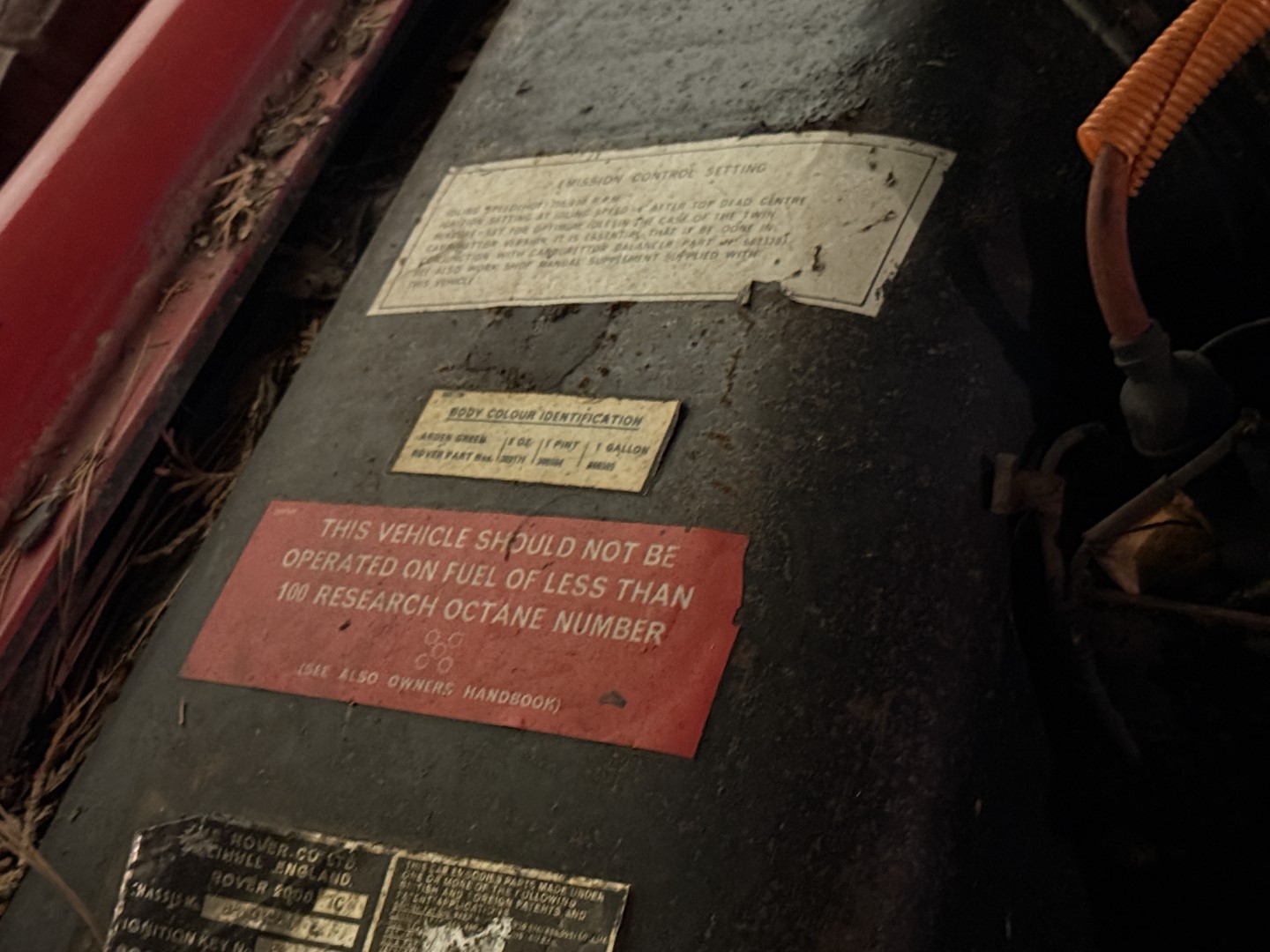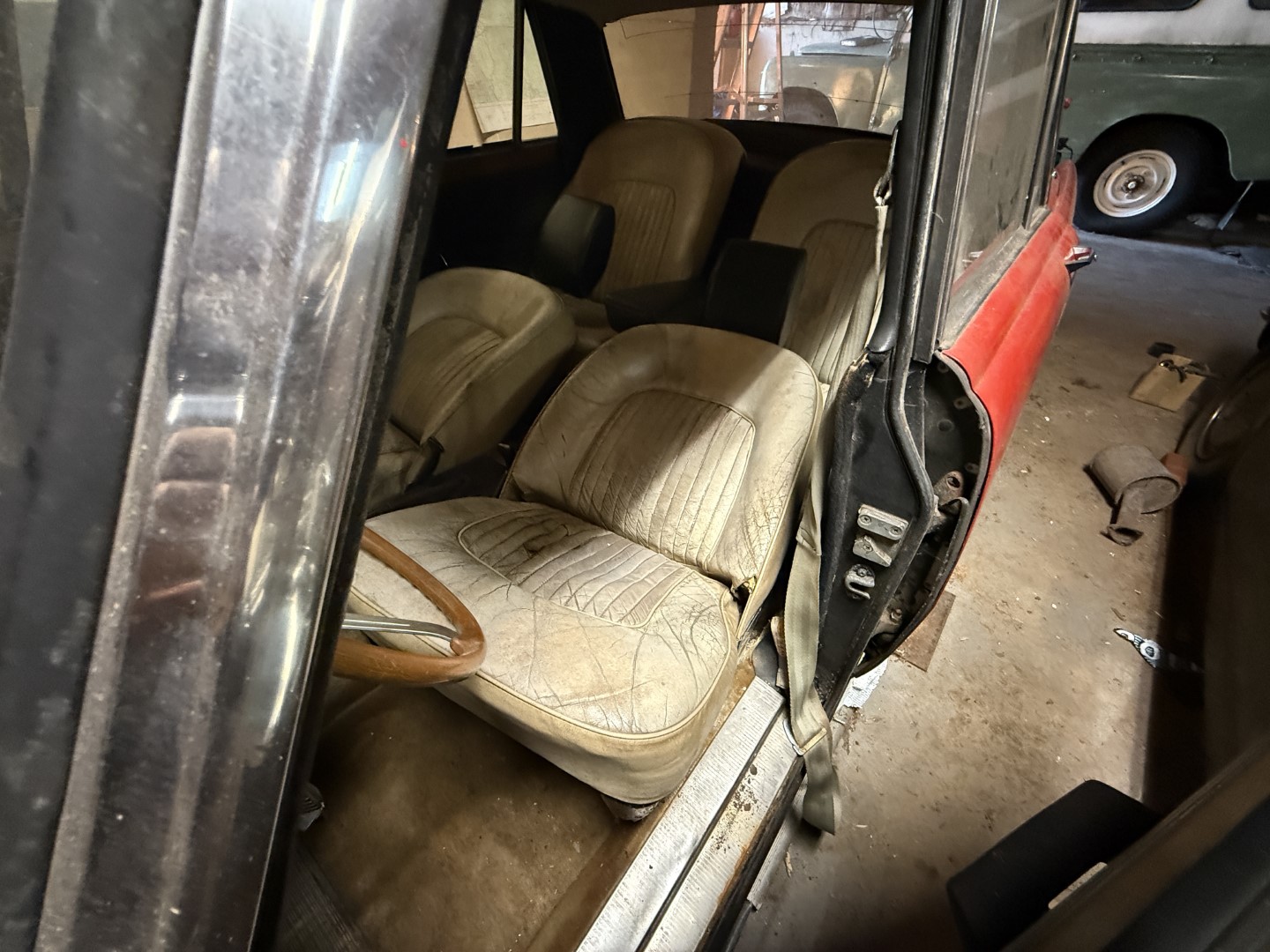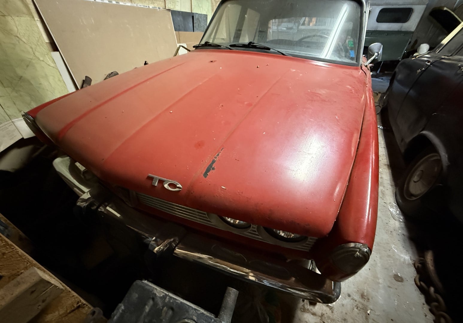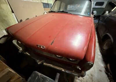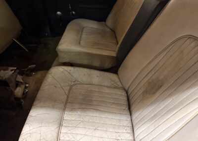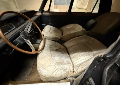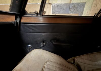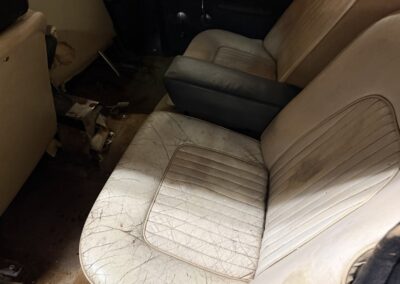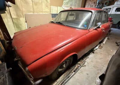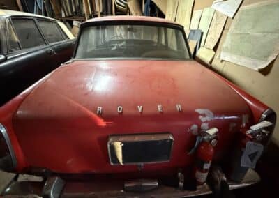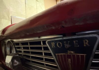This Rover TC 2000 is finished in red with white leather seating, sand-coloured carpet and black interior panel, being offered at NO RESERVE. The Exterior displays factory chrome bumpers, bright window trim, and “ROVER” block lettering across the side hinged trunk lid. Characteristic P6-series details include quad headlights, vertical tail lamps, polished door handles and side brightwork, while a TC emblem adorns the front of the hood. The exterior shows paint wear and chips on several panels, illustrated in our gallery and the car rides on 14-inch wheels.