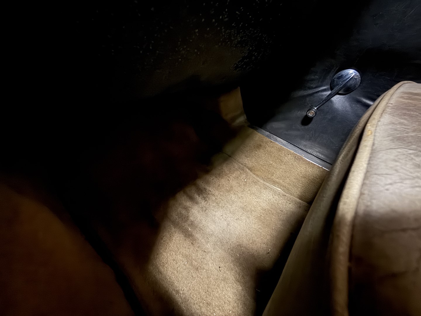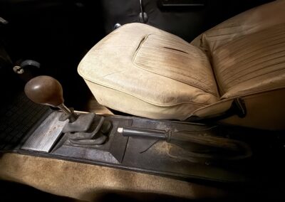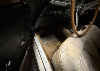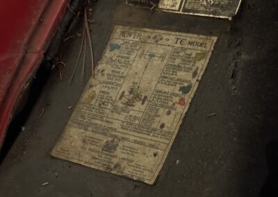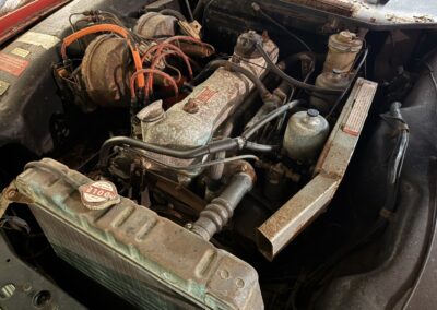 Power is provided by a 2 litre single overhead cam inline-four with twin SU carburetors, factory rated at 104 horsepower; in fact, the TC name is a reference to twin carbs. A four-speed manual transmission with full synchromesh delivers power to the rear wheels, while braking is handled by servo-assisted discs at all four corners. The car has been stored for many years and is offered as non-running, with the odometer currently showing 10,419 miles – TMU, true mileage unknown.