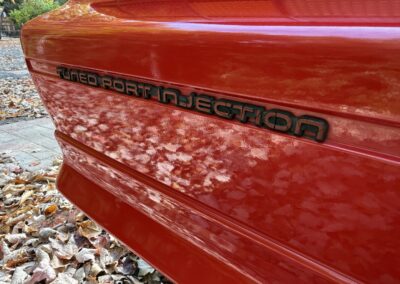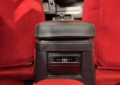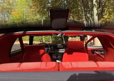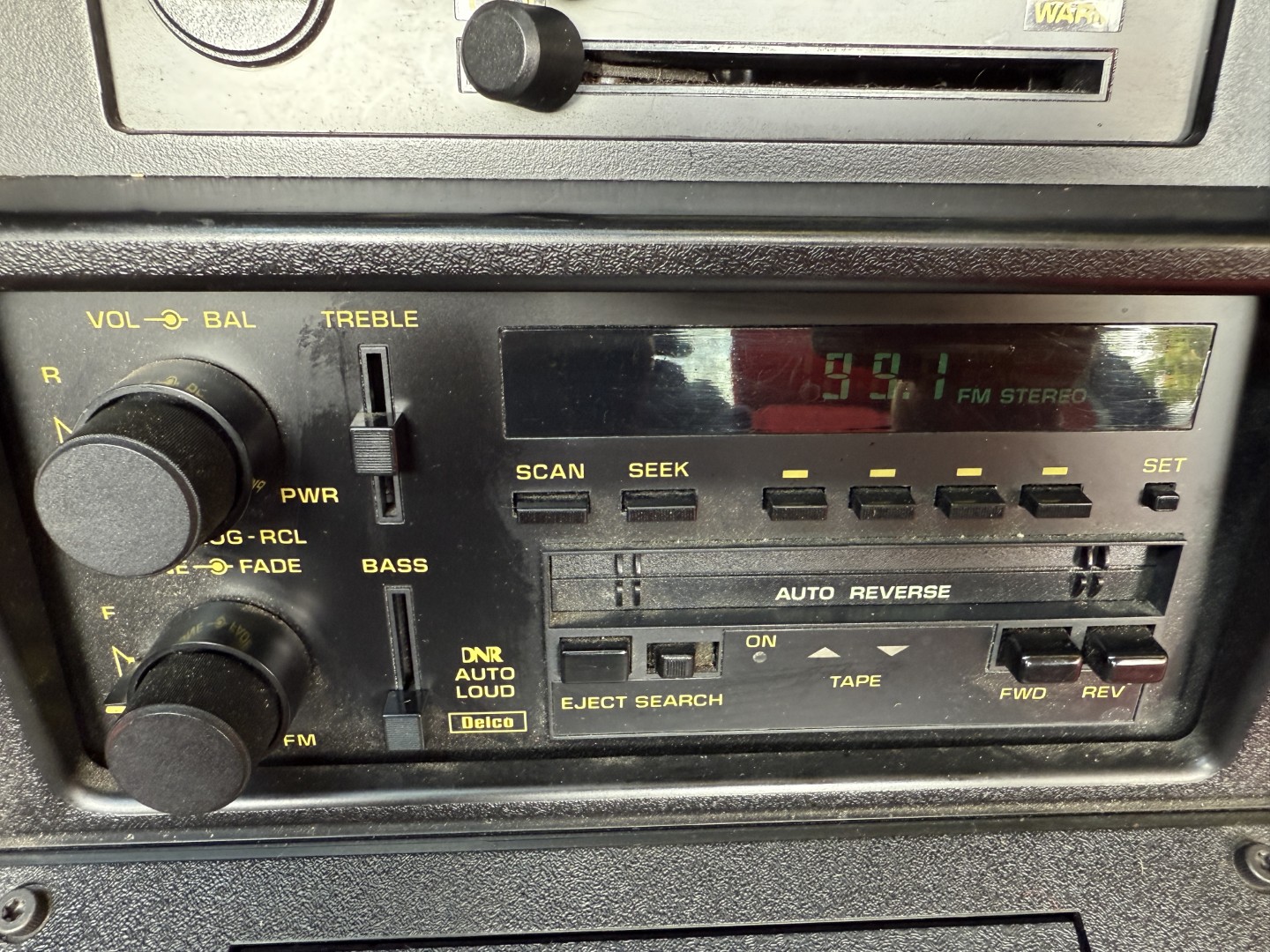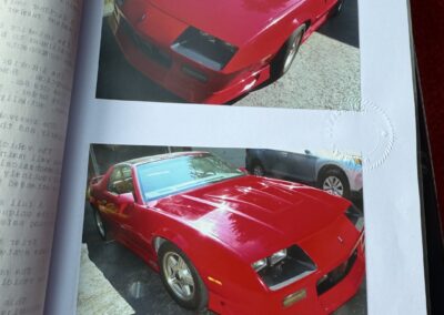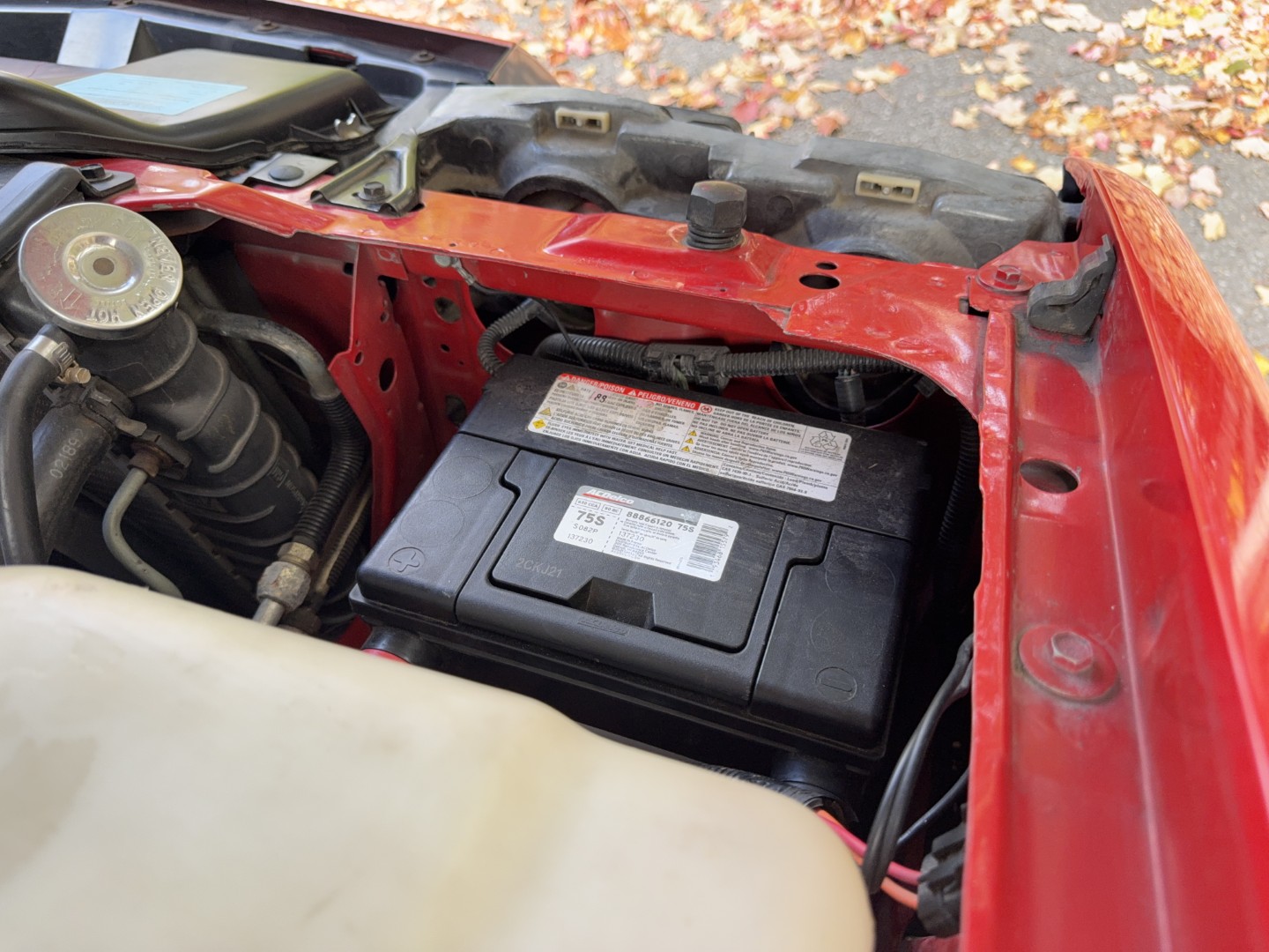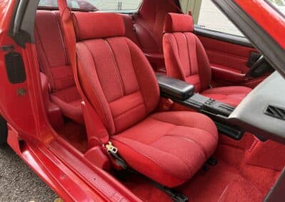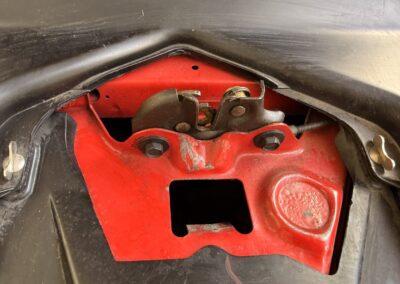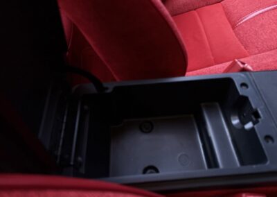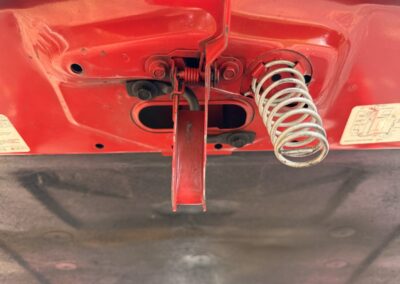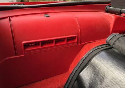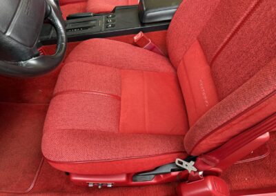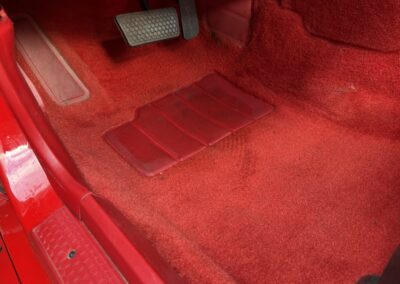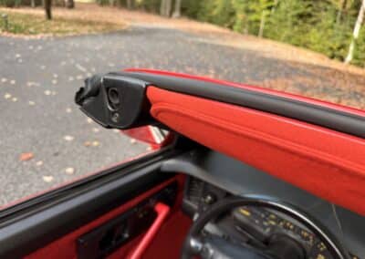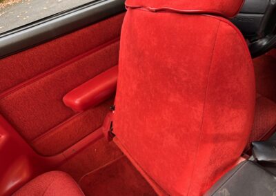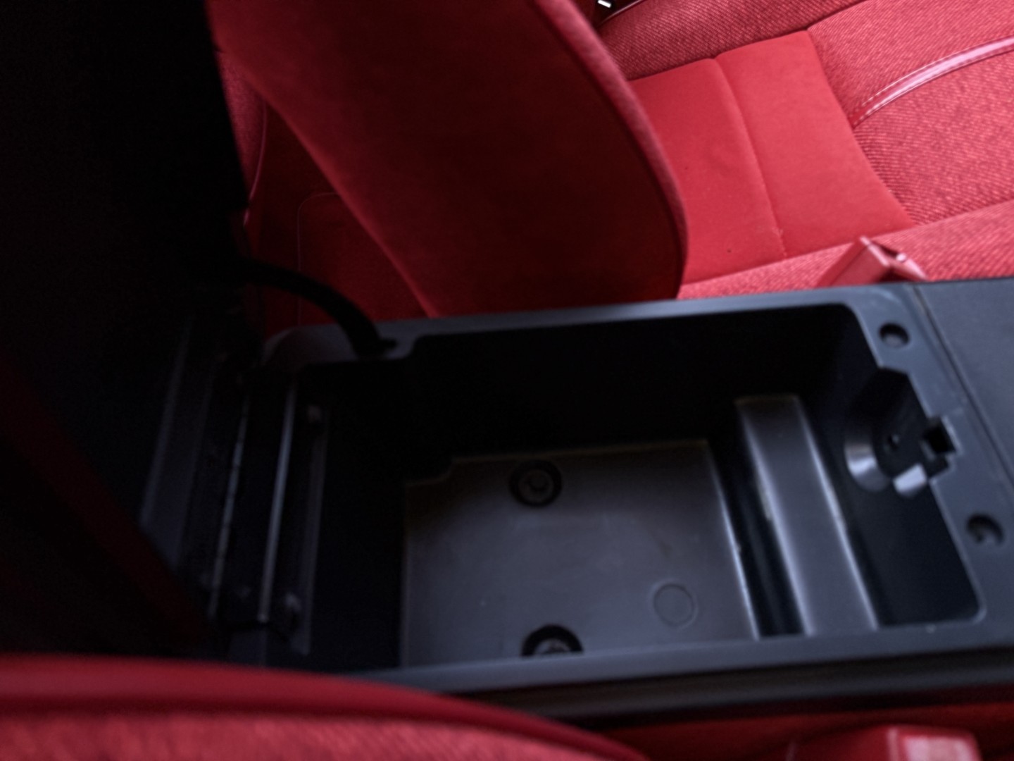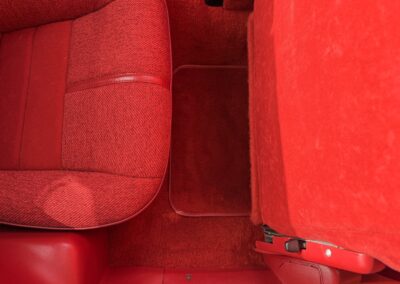 The four seats feature CAMARO-embroidered buckets up front, power-adjustable for the driver, and are upholstered in Red Custom cloth (GM Code 73C) and are matched by the door cards, floor mats with GM emblems and carpeting. Features include a Z28 25th Anniversary badging on the dashboard – the first Camaro was a 1967 model, cruise control, air conditioning, a power hatch release with motorized latch, factory ETR AM/FM/cassette with seek/scan for cassette tracks, with power windows, locks, and mirrors. We note cracking in the dash above instrumentation. There is a generous storage compartment under the arm rest while the owner had the rear-view mirror re-adhered at the time of its Ontario safety check appointment (since the Gallery photos were taken).