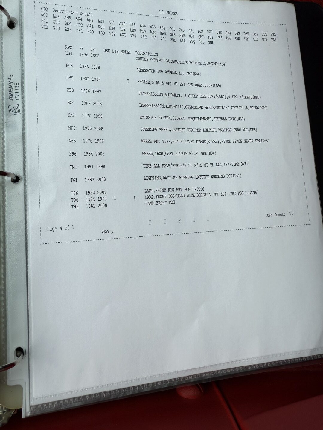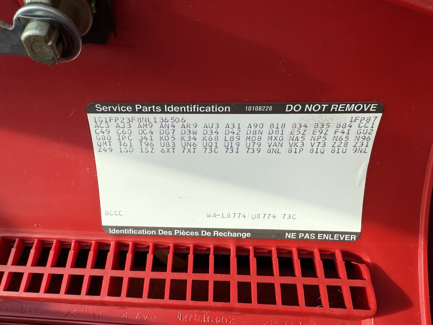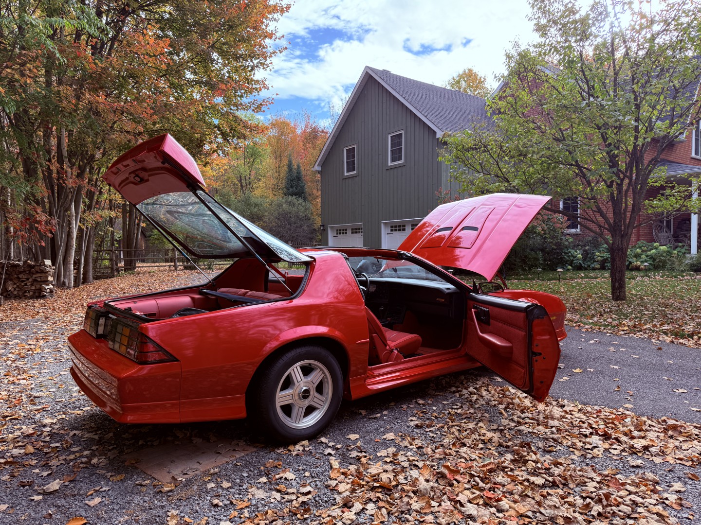 Lot - 319Category - DomesticSeller - Allie (Private Seller)Seller location - Greely ON K4P(view map)VIN - 1G1FP23F8NL136506Odometer - 25,100 kmEngine Info - V8 5.0L 205 HP Tuned Port InjectionTransmission Info - 4-speed Automatic with Automatic OverdriveExterior Colour - Bright Red (GM code 81)Interior Colour - Red Custom (GM Code 73C)Other features - Super Low KM's, T-Tops, Stock Unit, Fully Loaded Including A/C blowing coldHagerty,CA Valuation, #2 - $33,900 +10% for T-topsModel page (click here)Carfax Report (click here)Join Our Mailing List