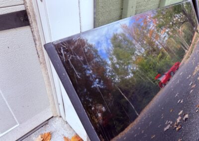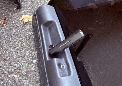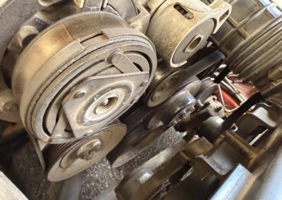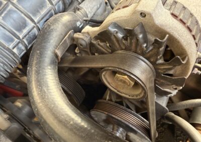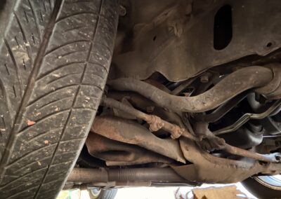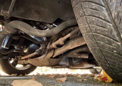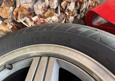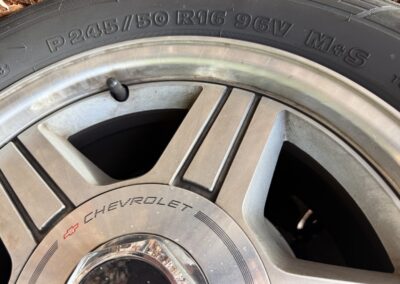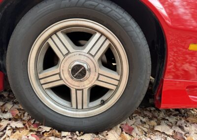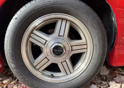 Aluminum 16” wheels are stock and a square set-up. Since photos were taken, the owner decided to replace the tires and the car will be outfitted with a set of Kumho Solus TA51a sized 245/55 installed the week of October 20, 2025. It is expected that the tires will have rolled under 100 km by the time the new owner collects the car. We note some patina on the finish of the driver’s side rear wheel. Braking is by power-assisted discs underneath all of the five-spoke alloys. A recent appraisal report is included in our gallery.