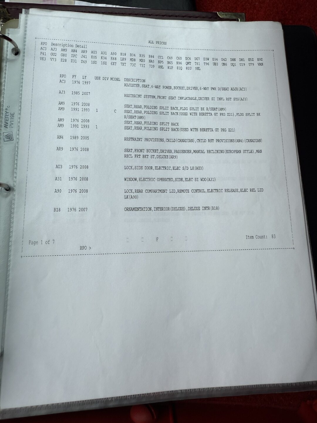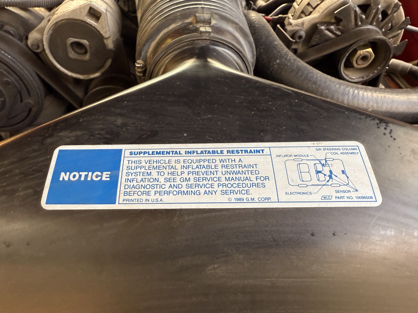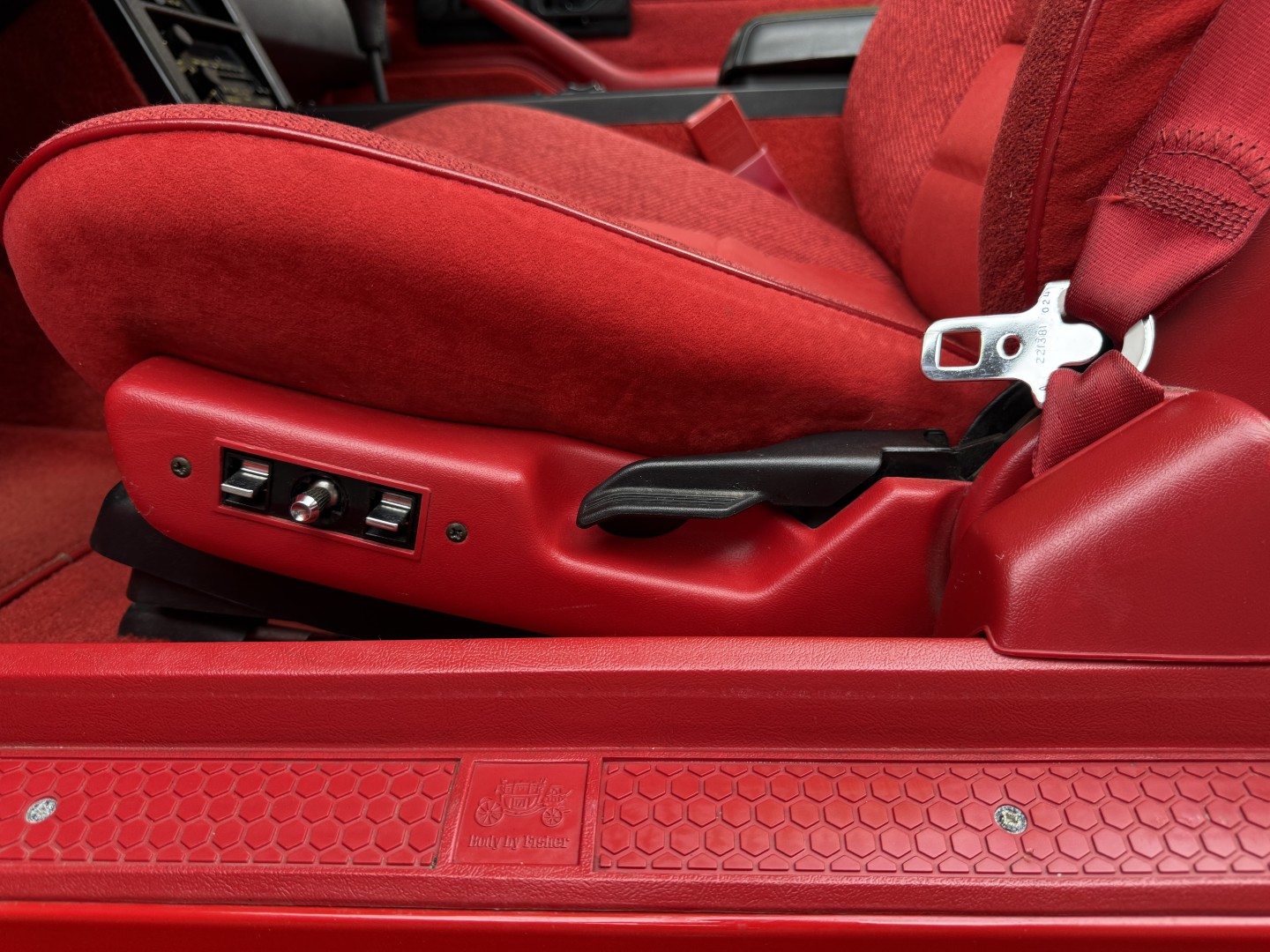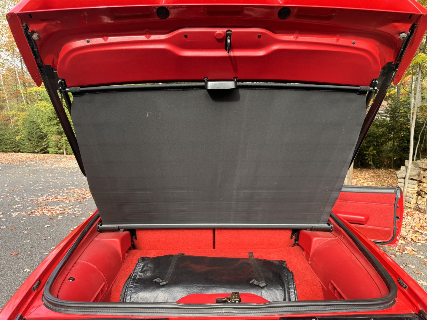 The 5.0 litre LB9 V8 was factory rated at 205 horsepower and 285 lb.-ft. of torque, achieved at 4200 and 3200 RPM, respectively. Power from the 305 goes to the rear wheels through a four-speed automatic transmission with automatic overdrive. Supplementing the factory documentation in our gallery are several service invoices accumulated during the low km’s driven under current ownership. The oxygen sensor and thermostat were replaced in 2019. Please note that the hood stays have been replaced since the photos were taken and now properly keep the hood in the upright position, this was remedied when the car was Ontario safety-checked. In the hatch, there is a motorized latch, fitted T-Top stowage covers, a lockable glove box-shaped storage area above the driver’s side wheel well and a retractable cargo cover.