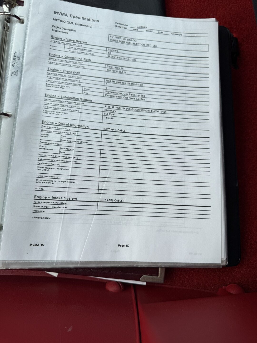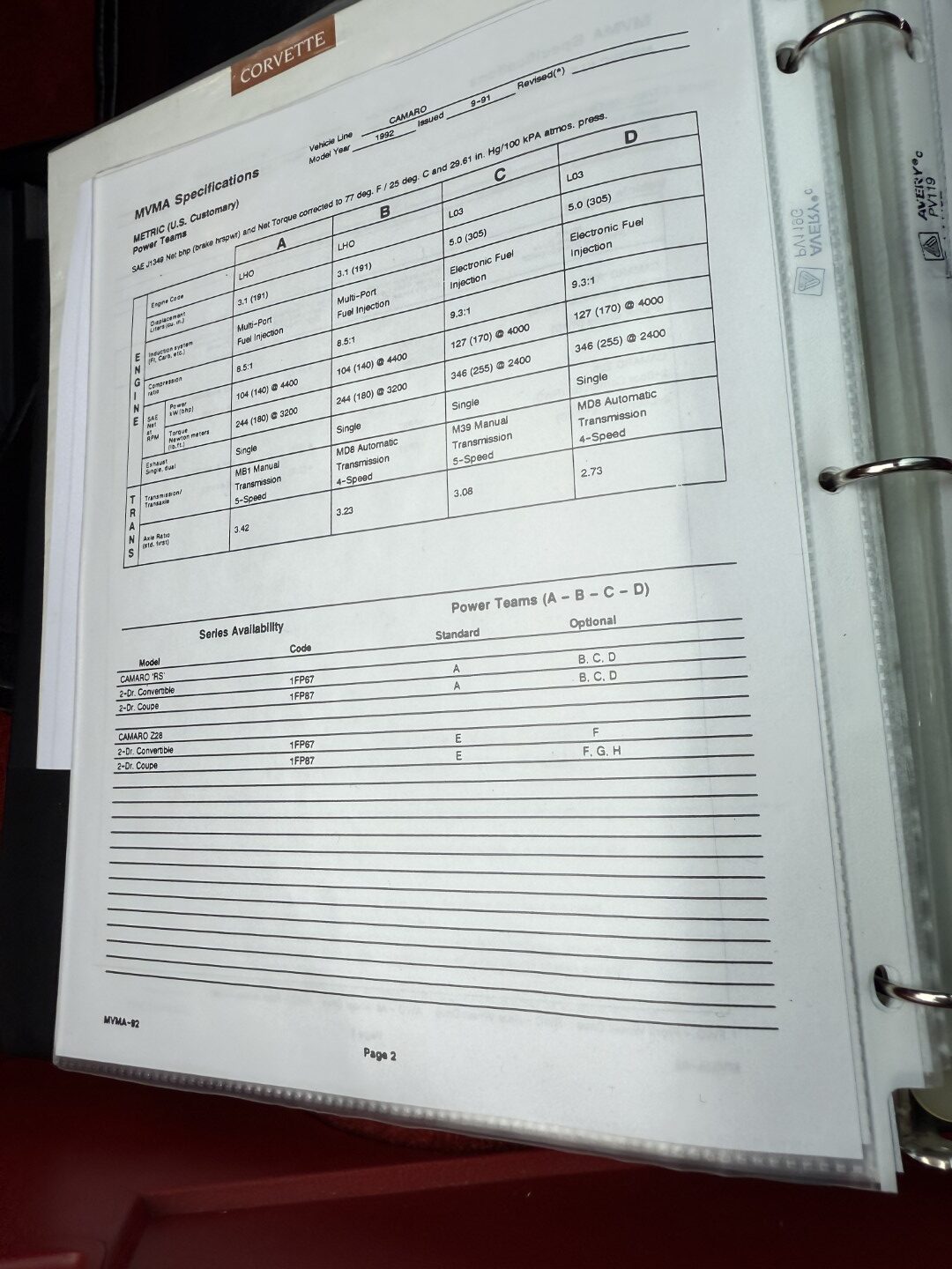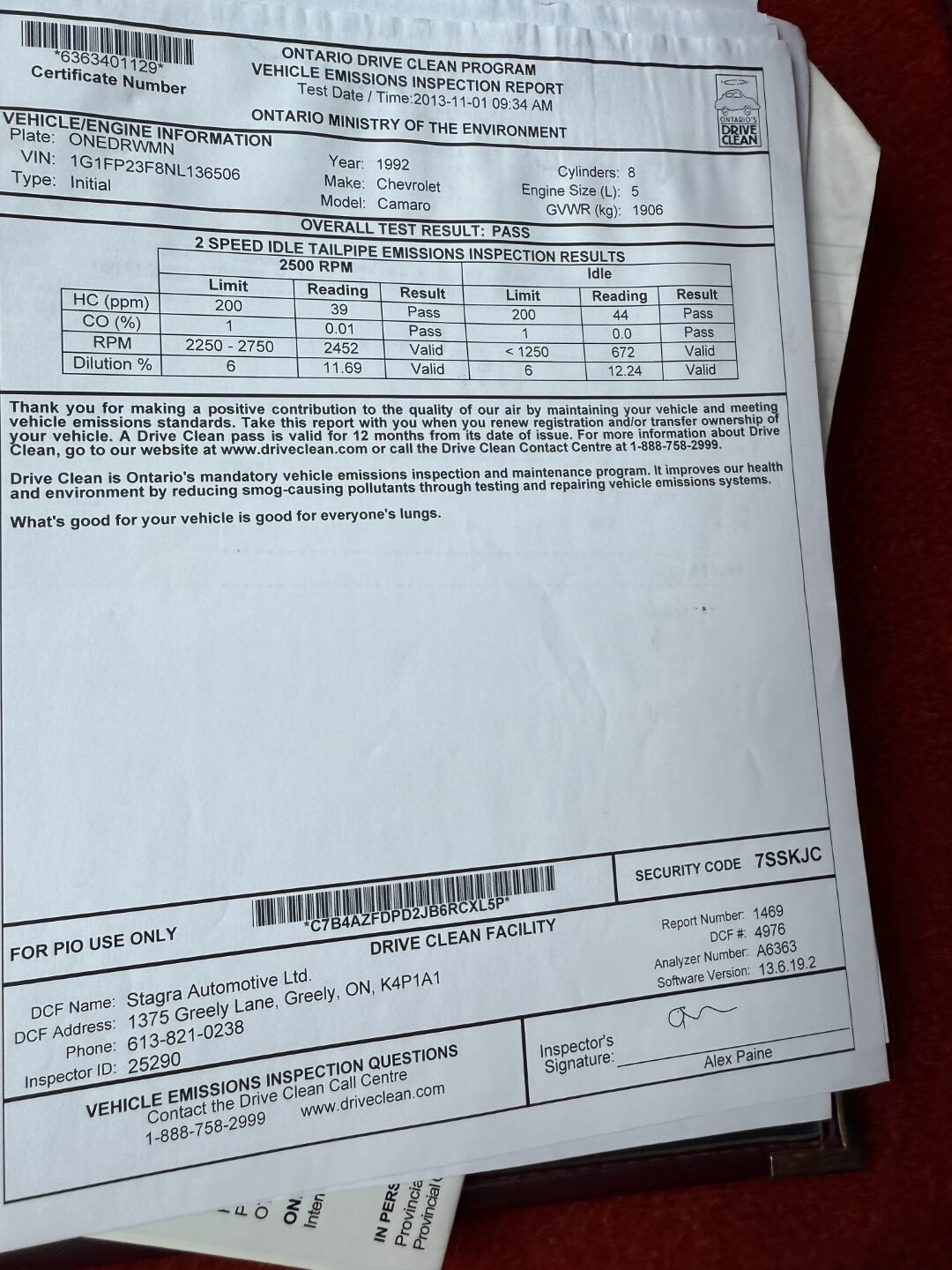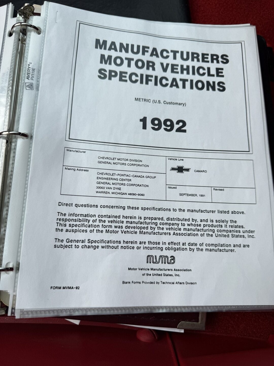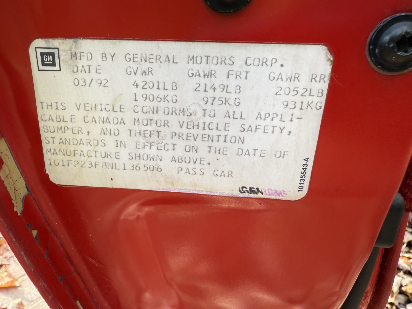 CCC Vital Info - **SOLD by CCC AUCTION** Sub-26K km 1992 Chevrolet Camaro Z28 25th Anniversary