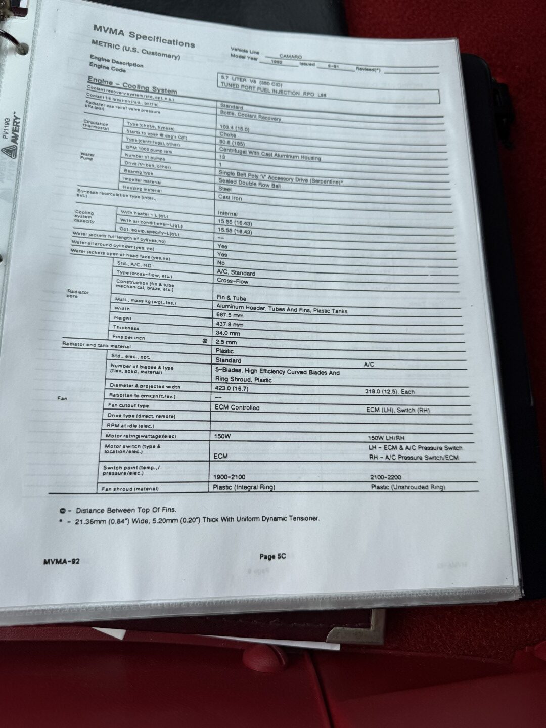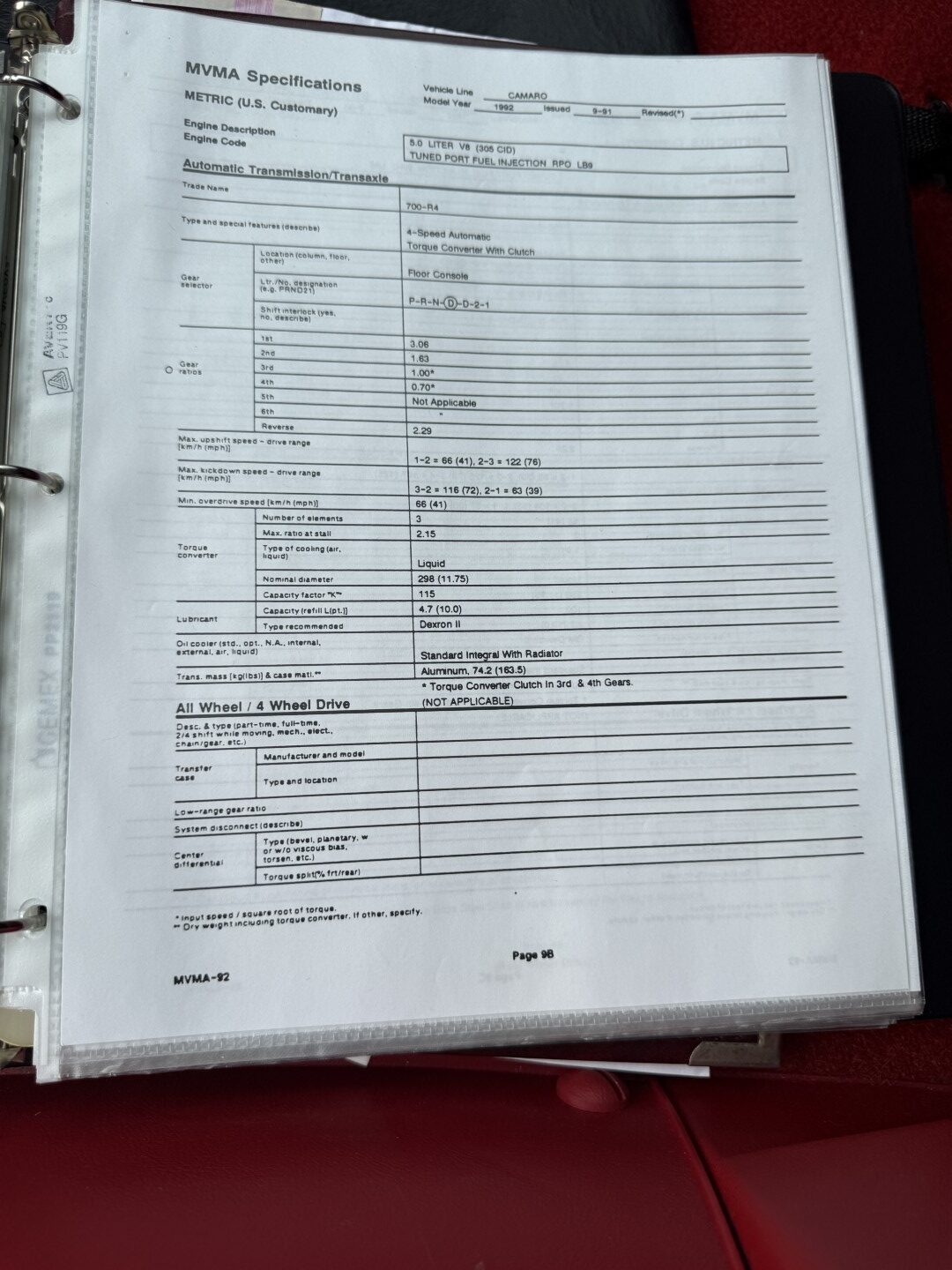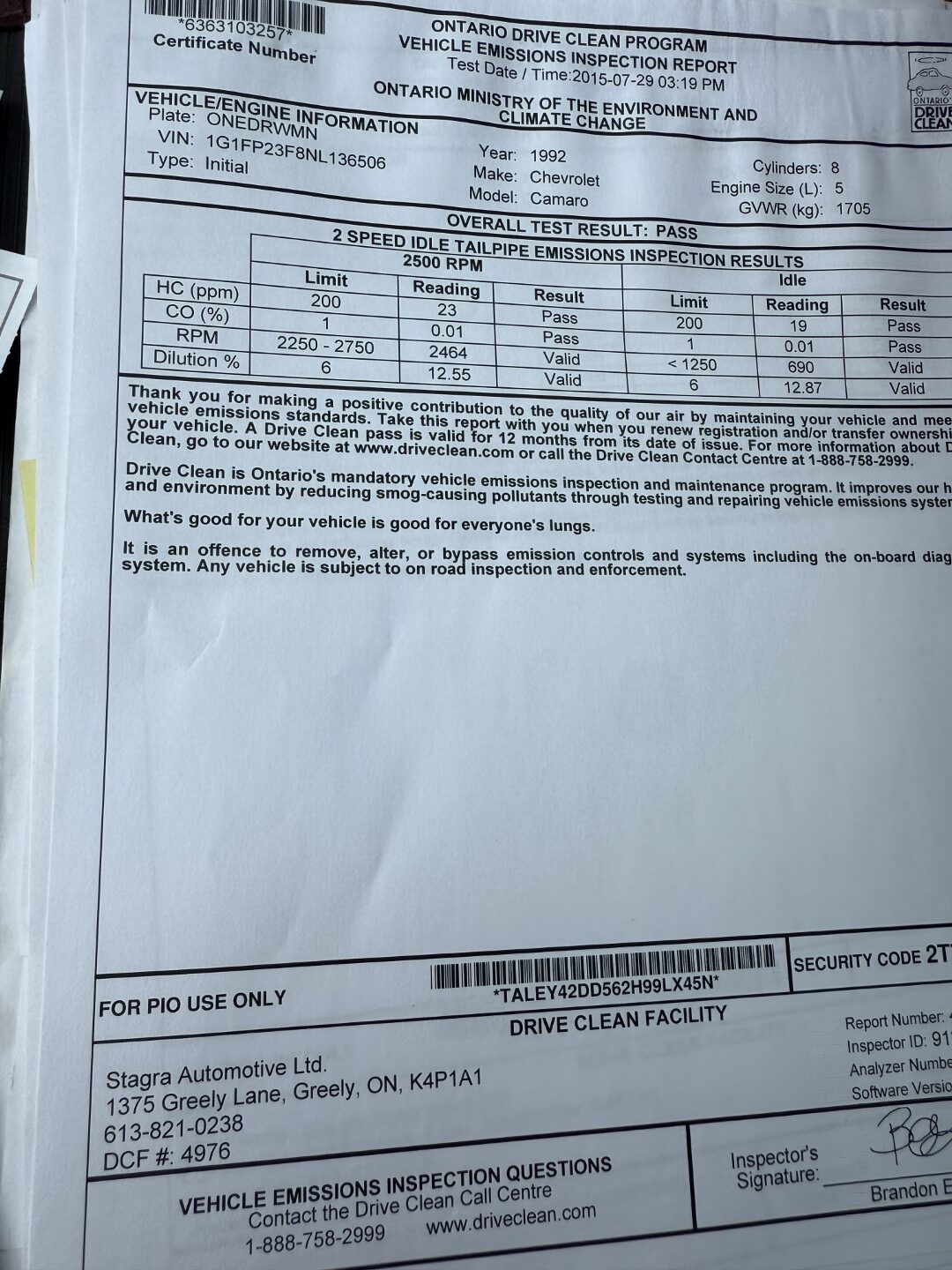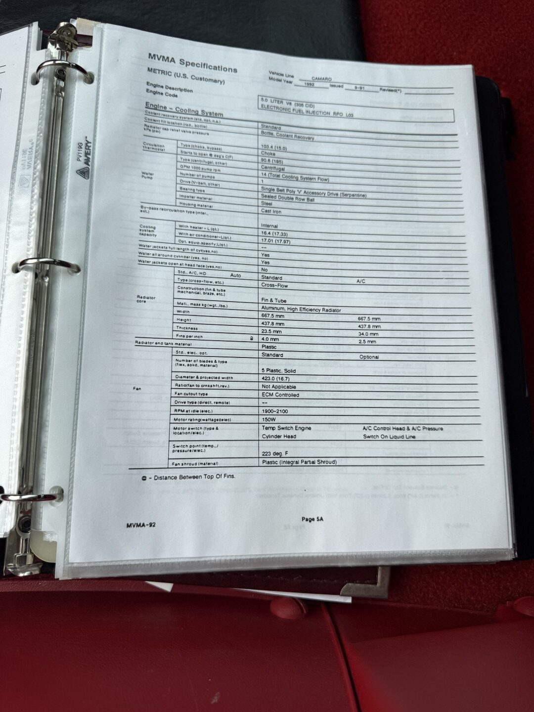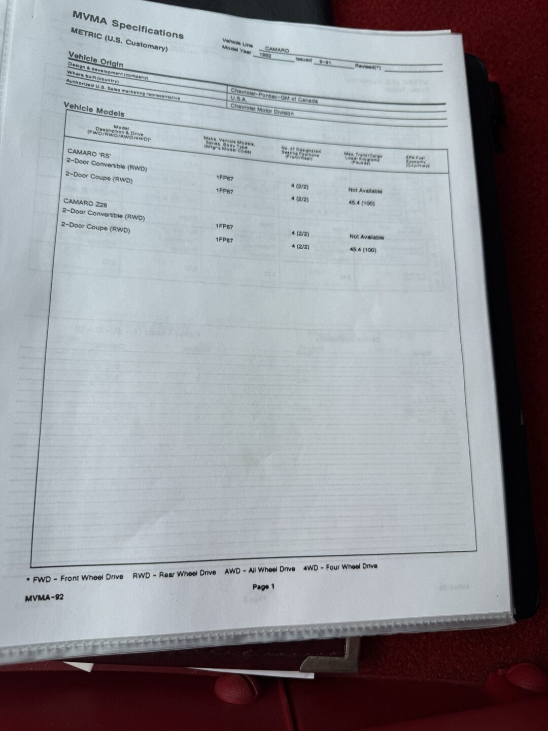 CCC Vital Info - **SOLD by CCC AUCTION** Sub-26K km 1992 Chevrolet Camaro Z28 25th Anniversary