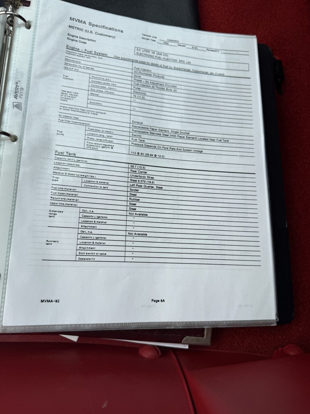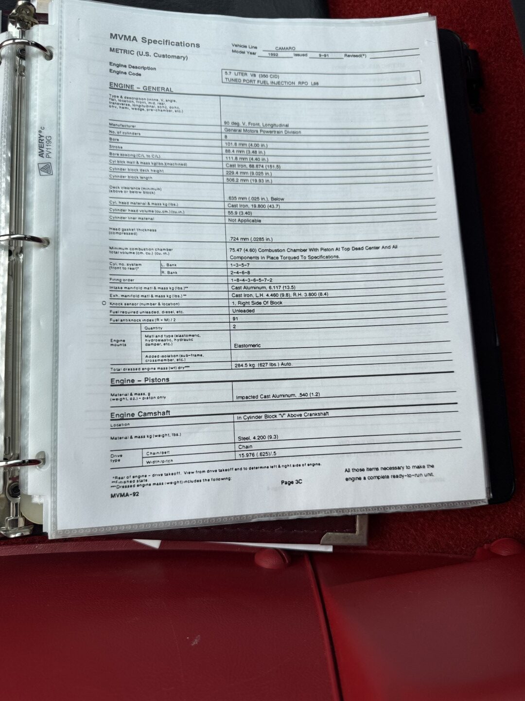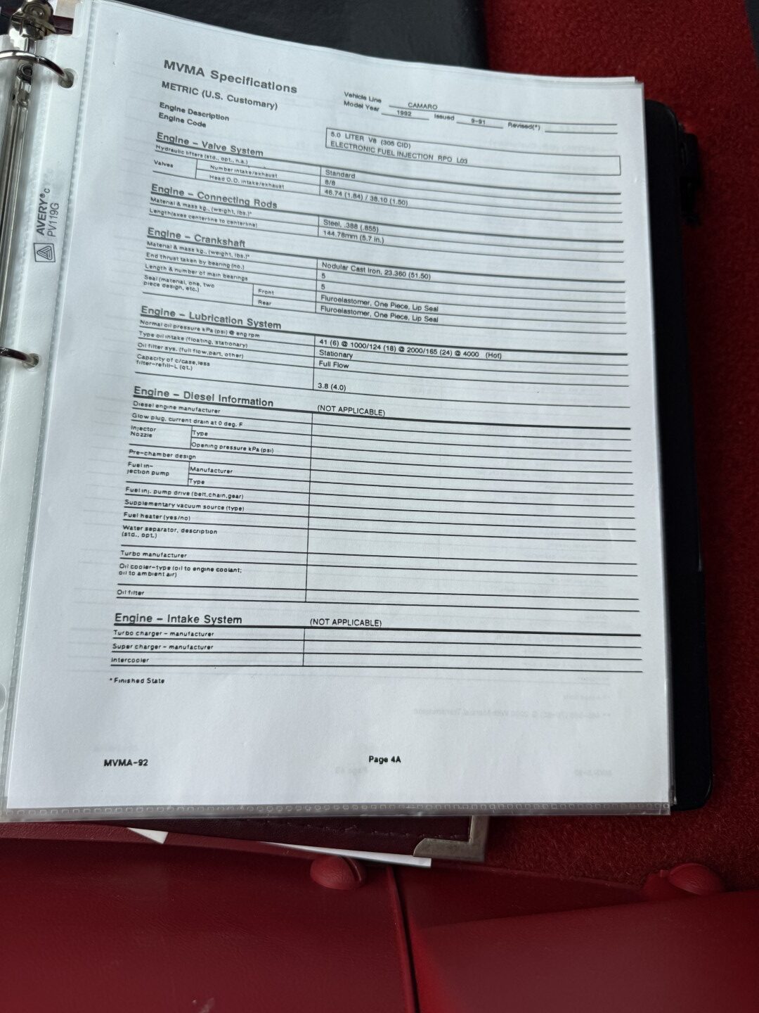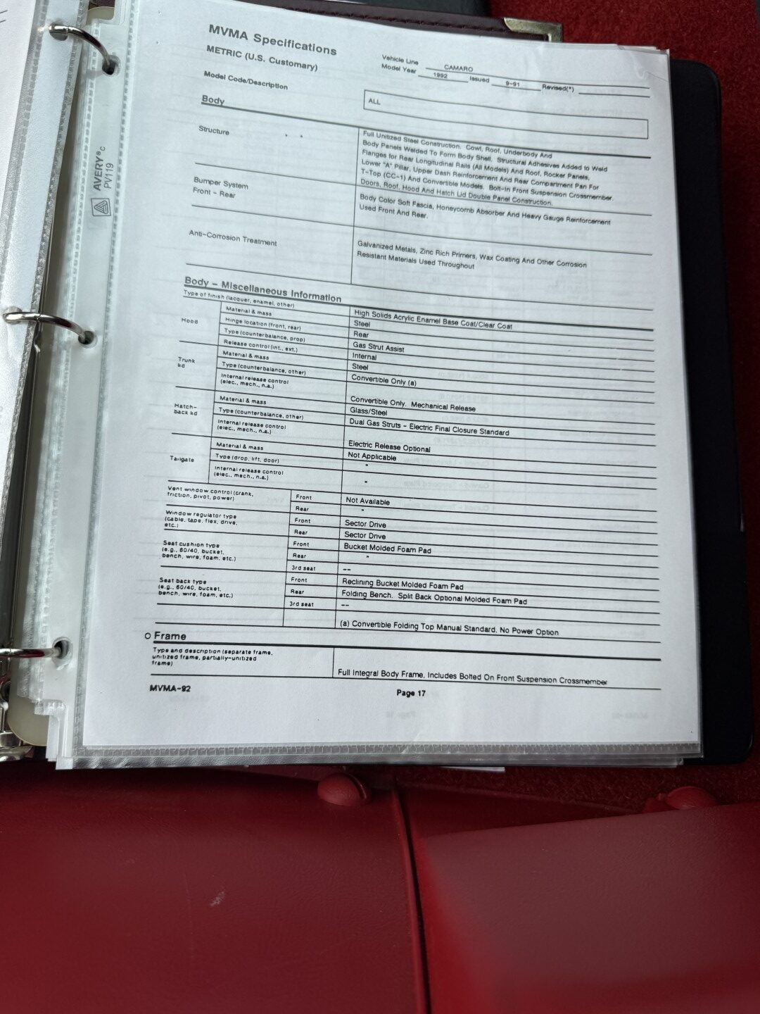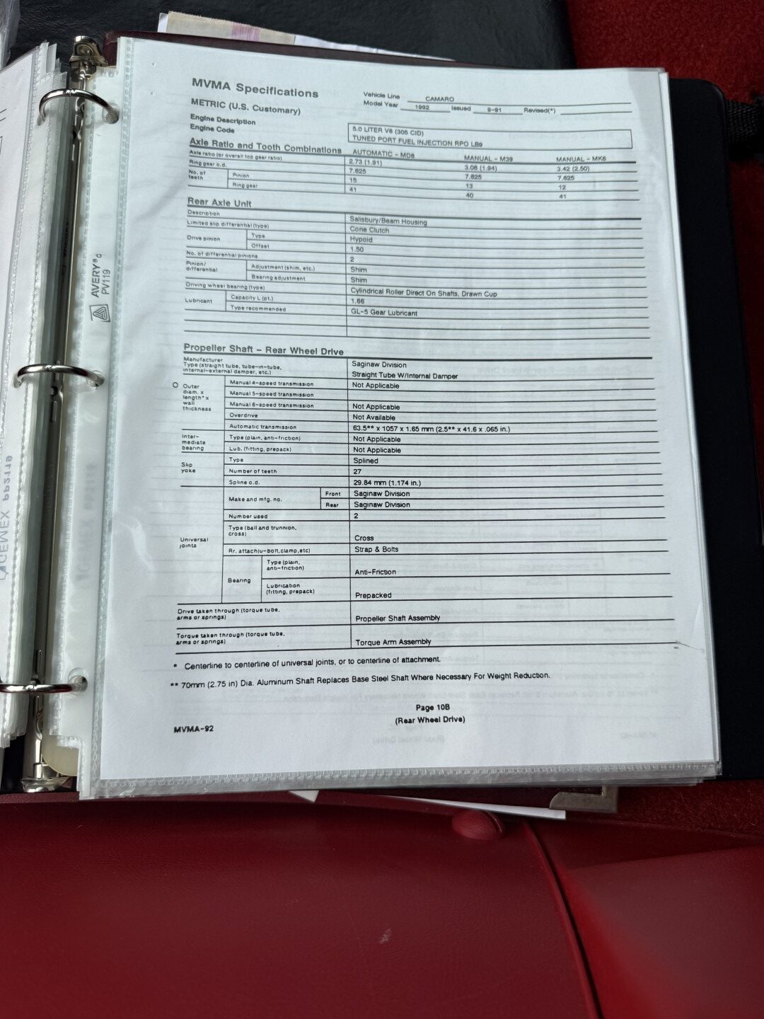 CCC Vital Info - **SOLD by CCC AUCTION** Sub-26K km 1992 Chevrolet Camaro Z28 25th Anniversary
