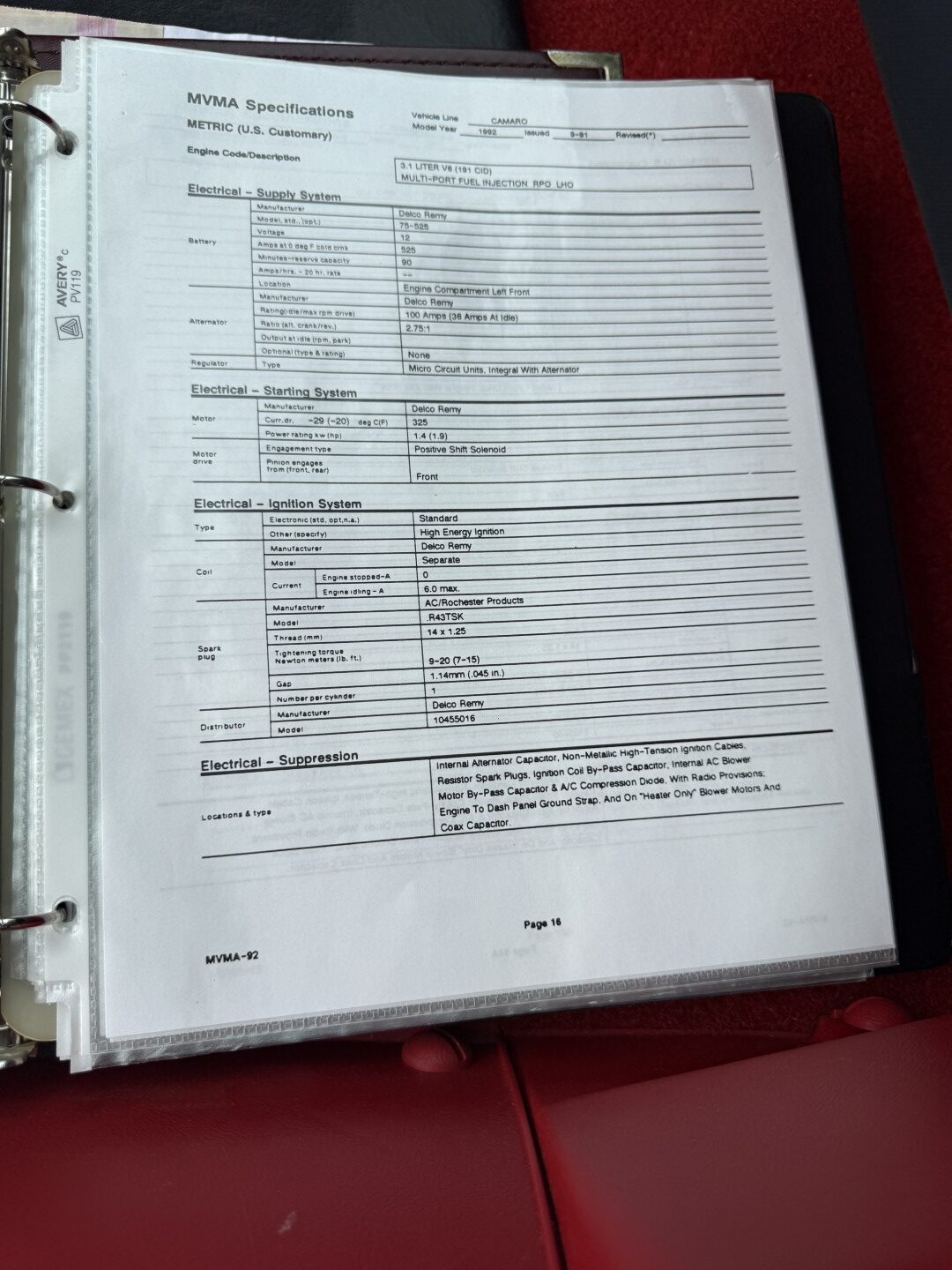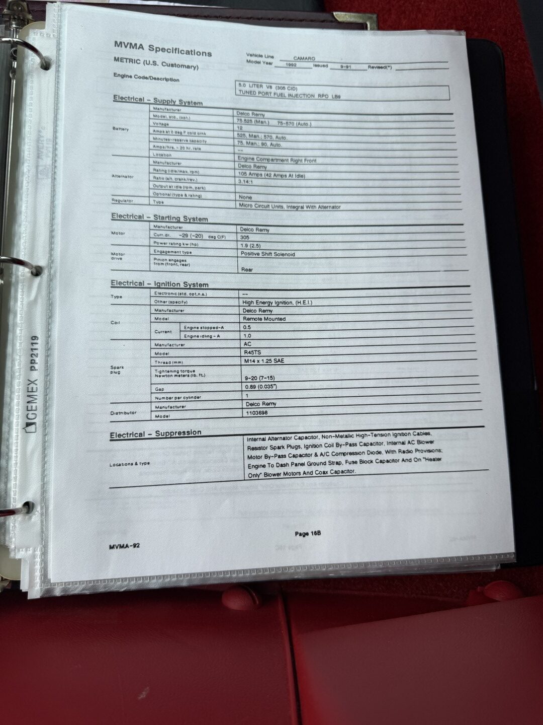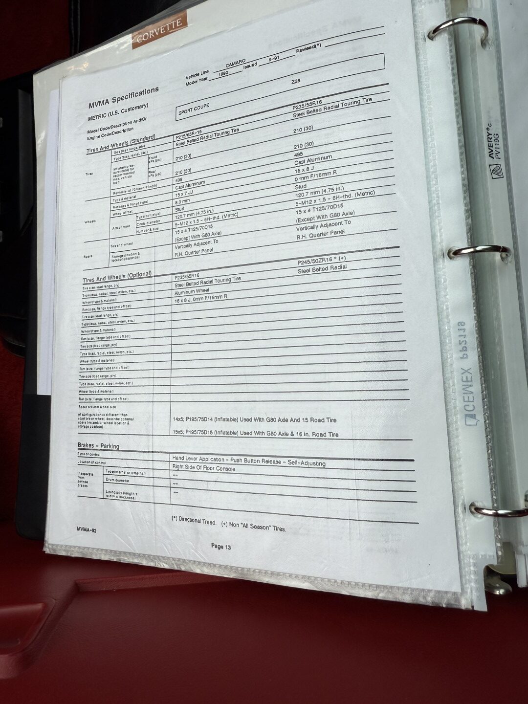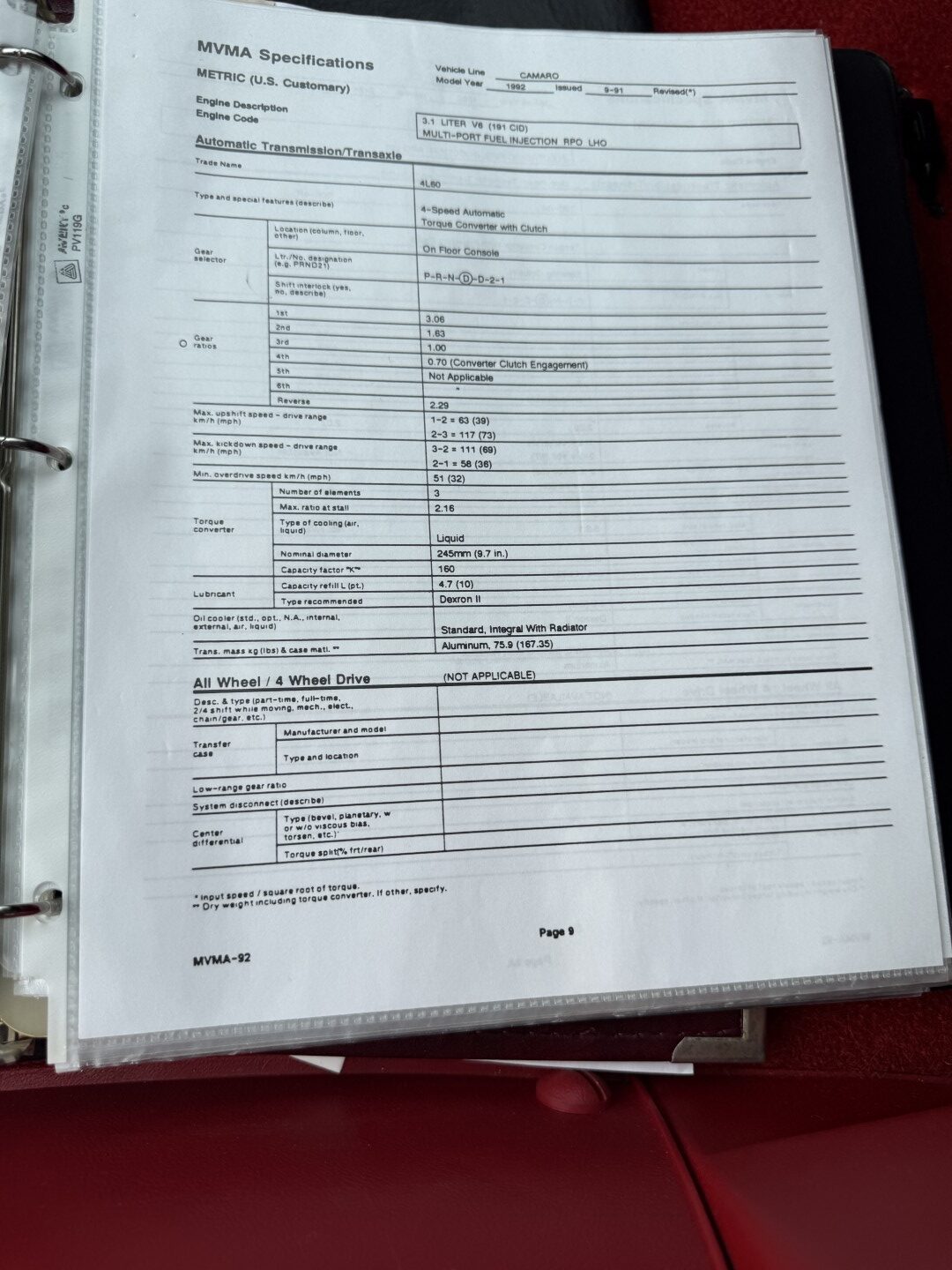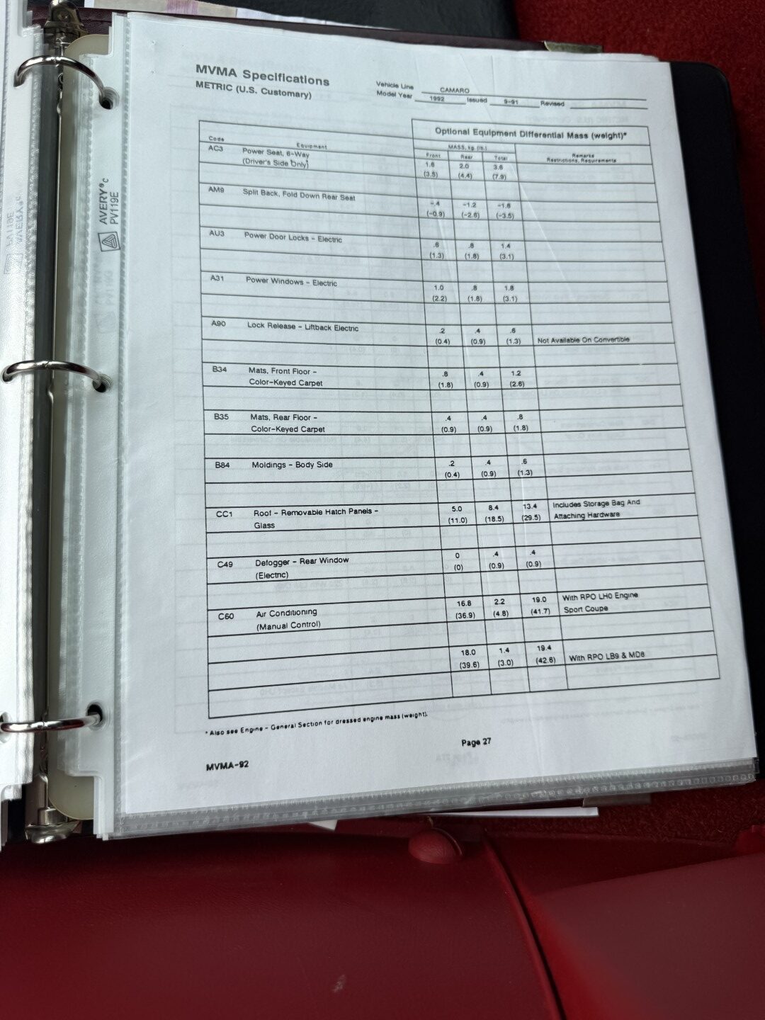 CCC Vital Info - **SOLD by CCC AUCTION** Sub-26K km 1992 Chevrolet Camaro Z28 25th Anniversary