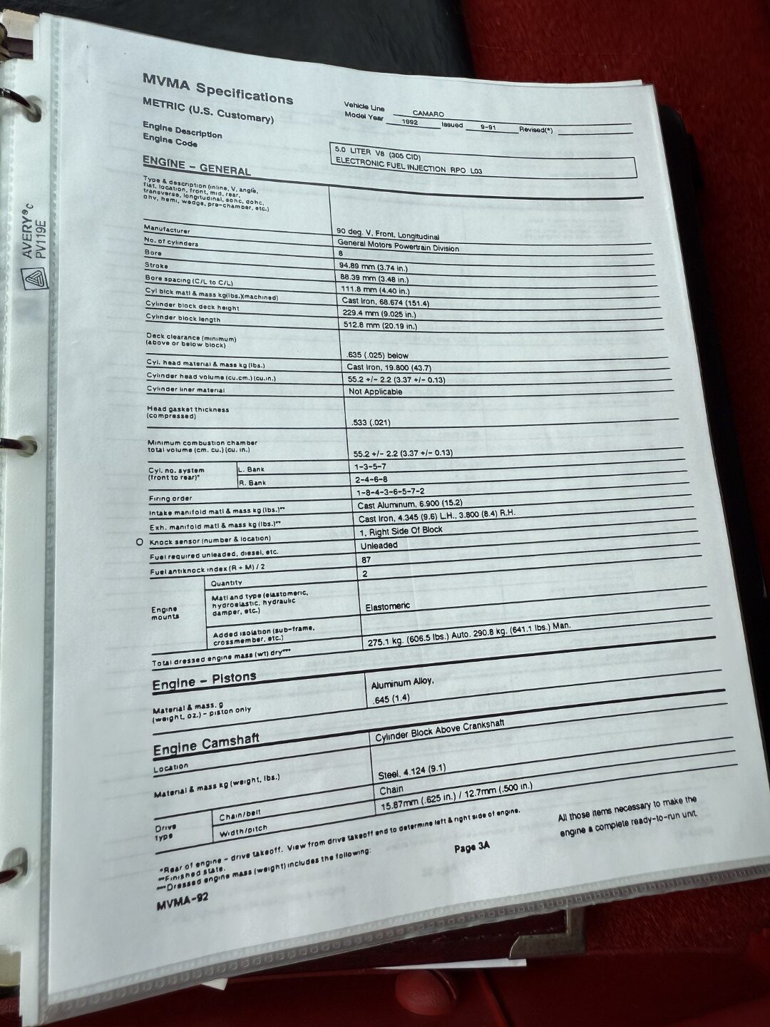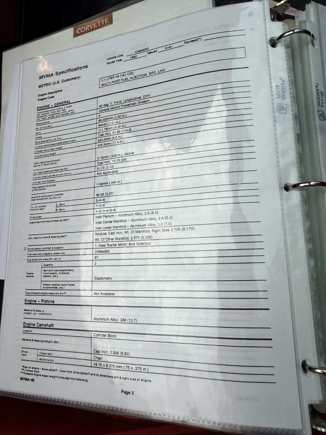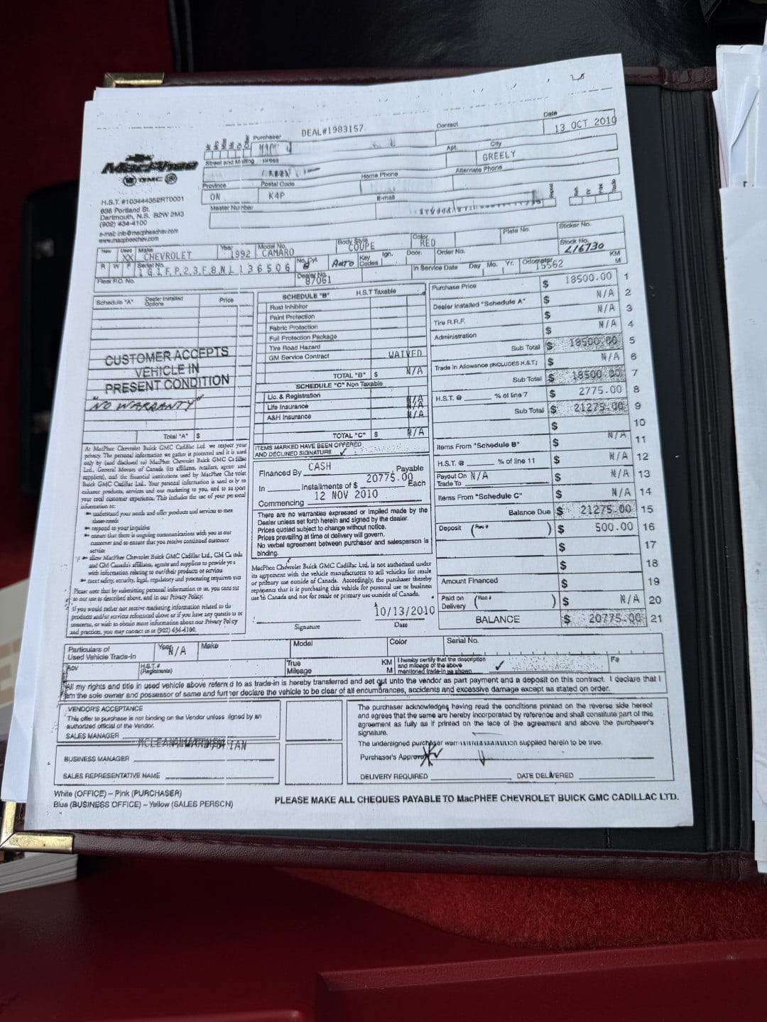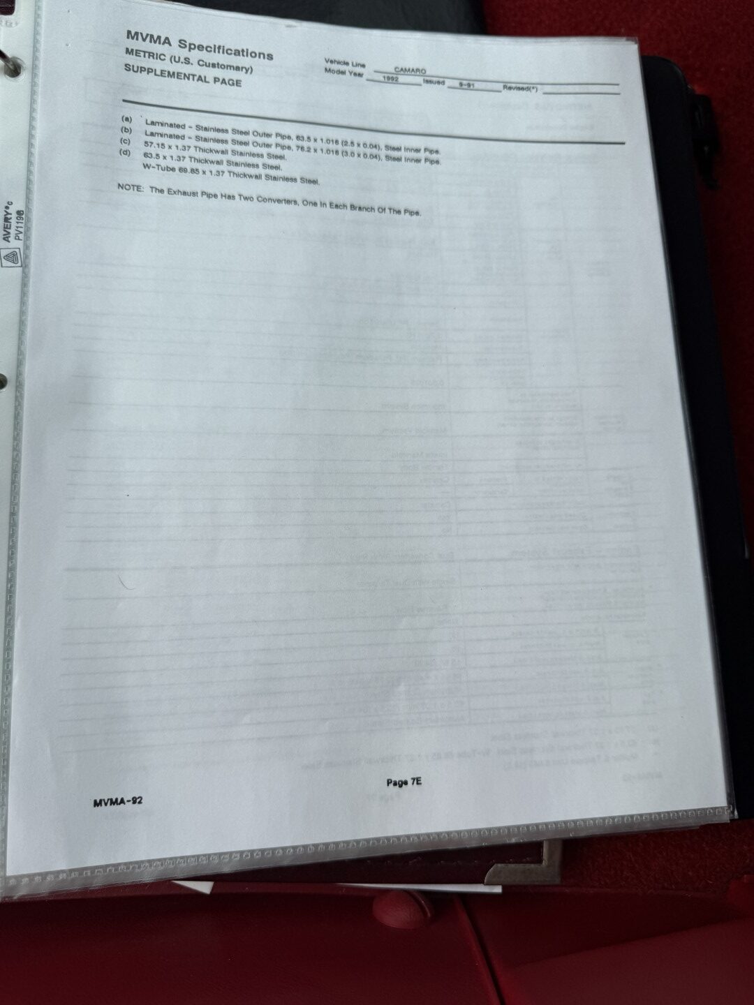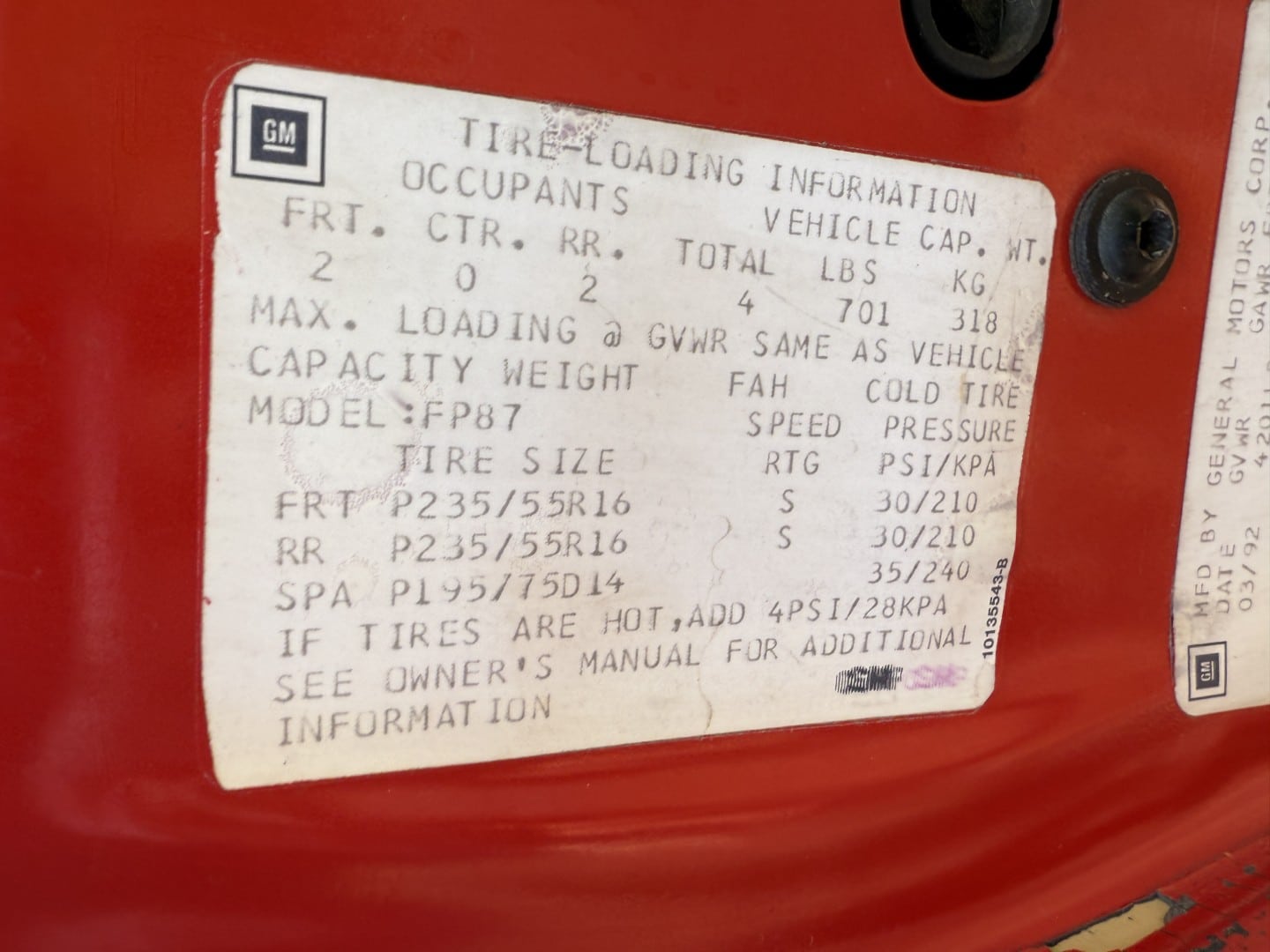 CCC Vital Info - **SOLD by CCC AUCTION** Sub-26K km 1992 Chevrolet Camaro Z28 25th Anniversary