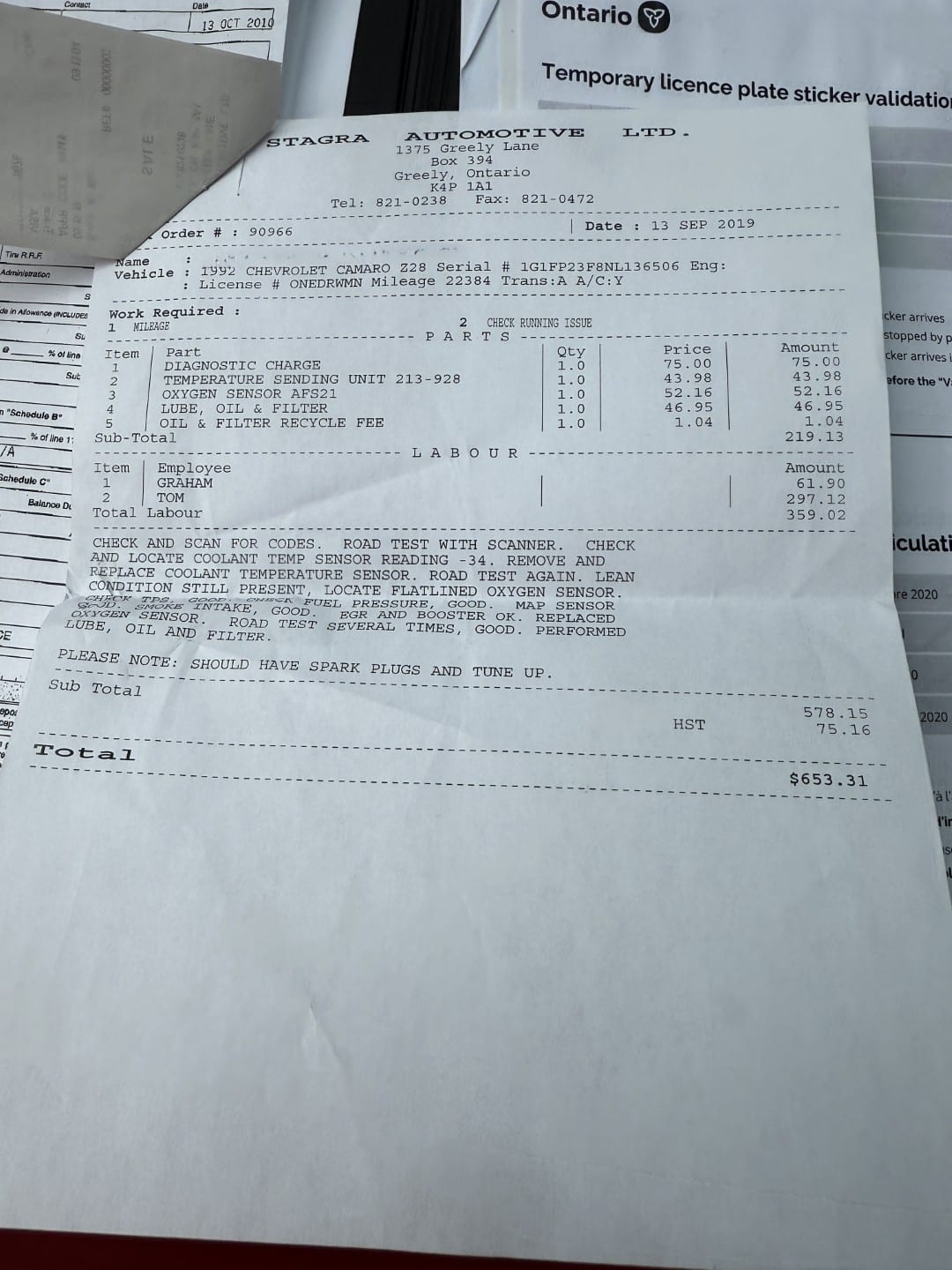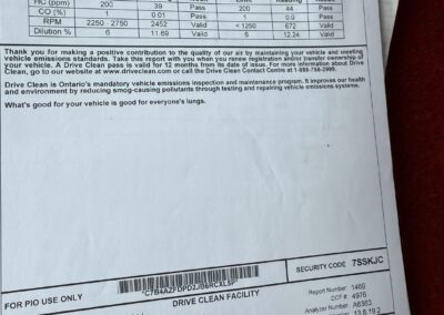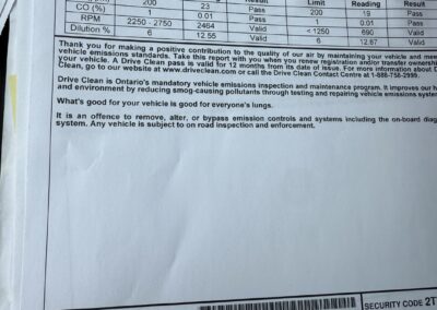 This car needs no work done, and will be sold with the Ontario Safety Standards Certificate.